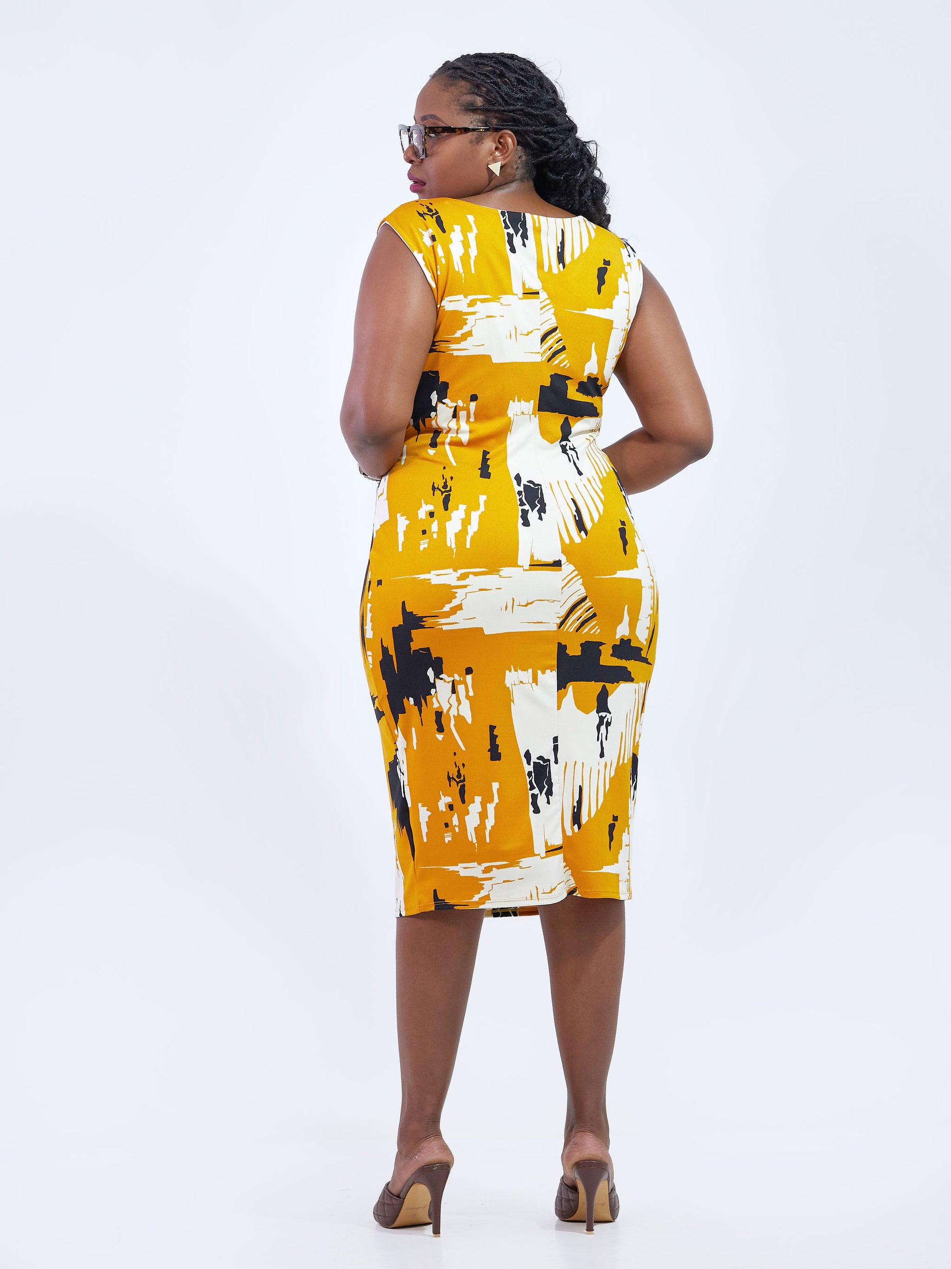 Vivo Basic Sleeveless Double Layered Bodycon - Mustard / Black Abstract