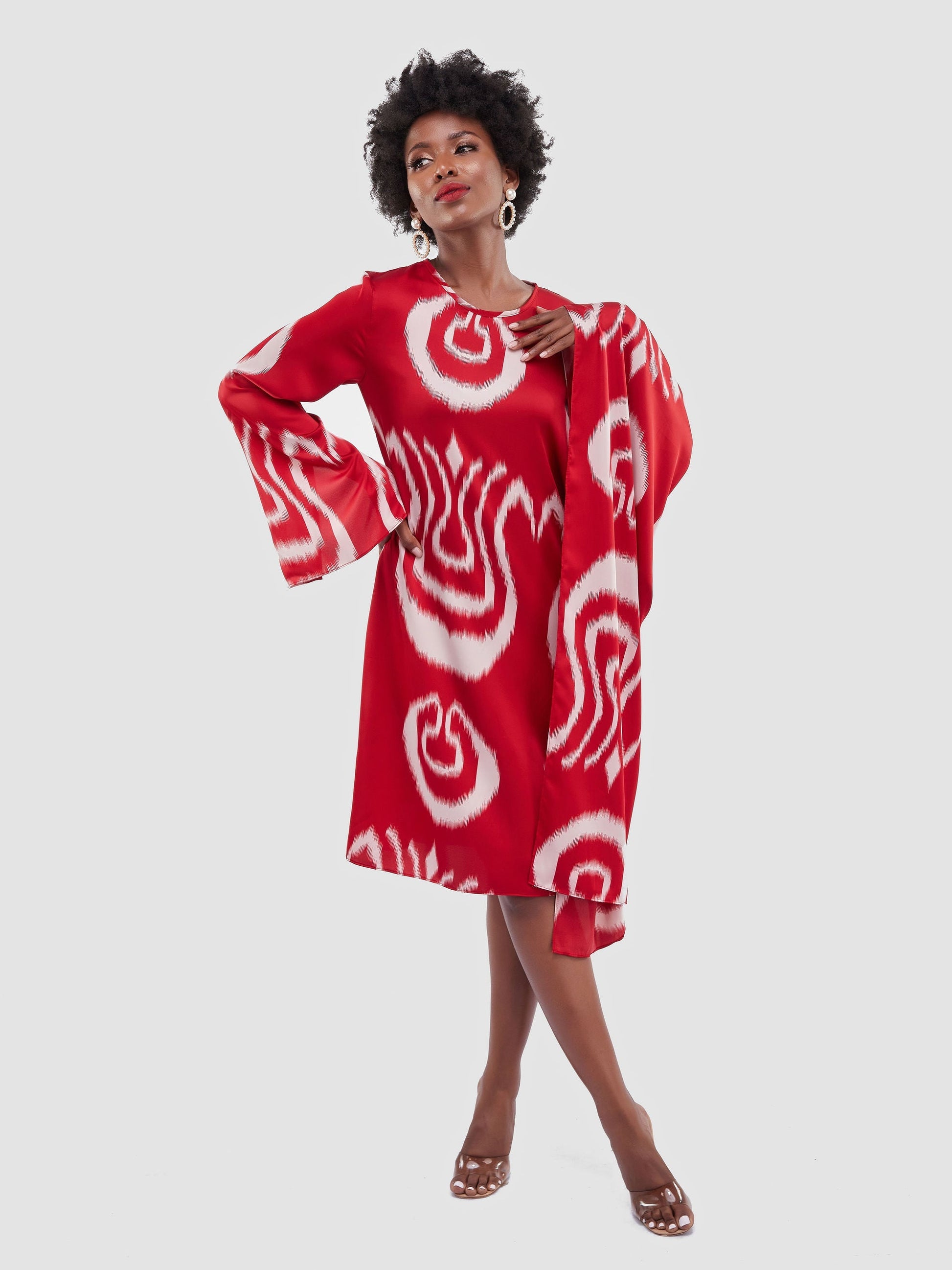 Vivo Jamila Side Drape Knee Length Dress - Red / White Print