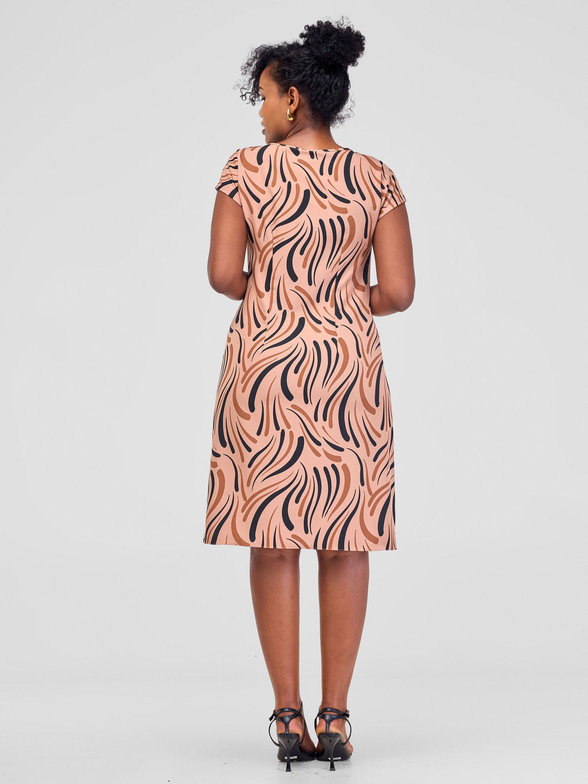 Vivo Laika Cap Sleeve Shift Dress - Chocolate Yala Print