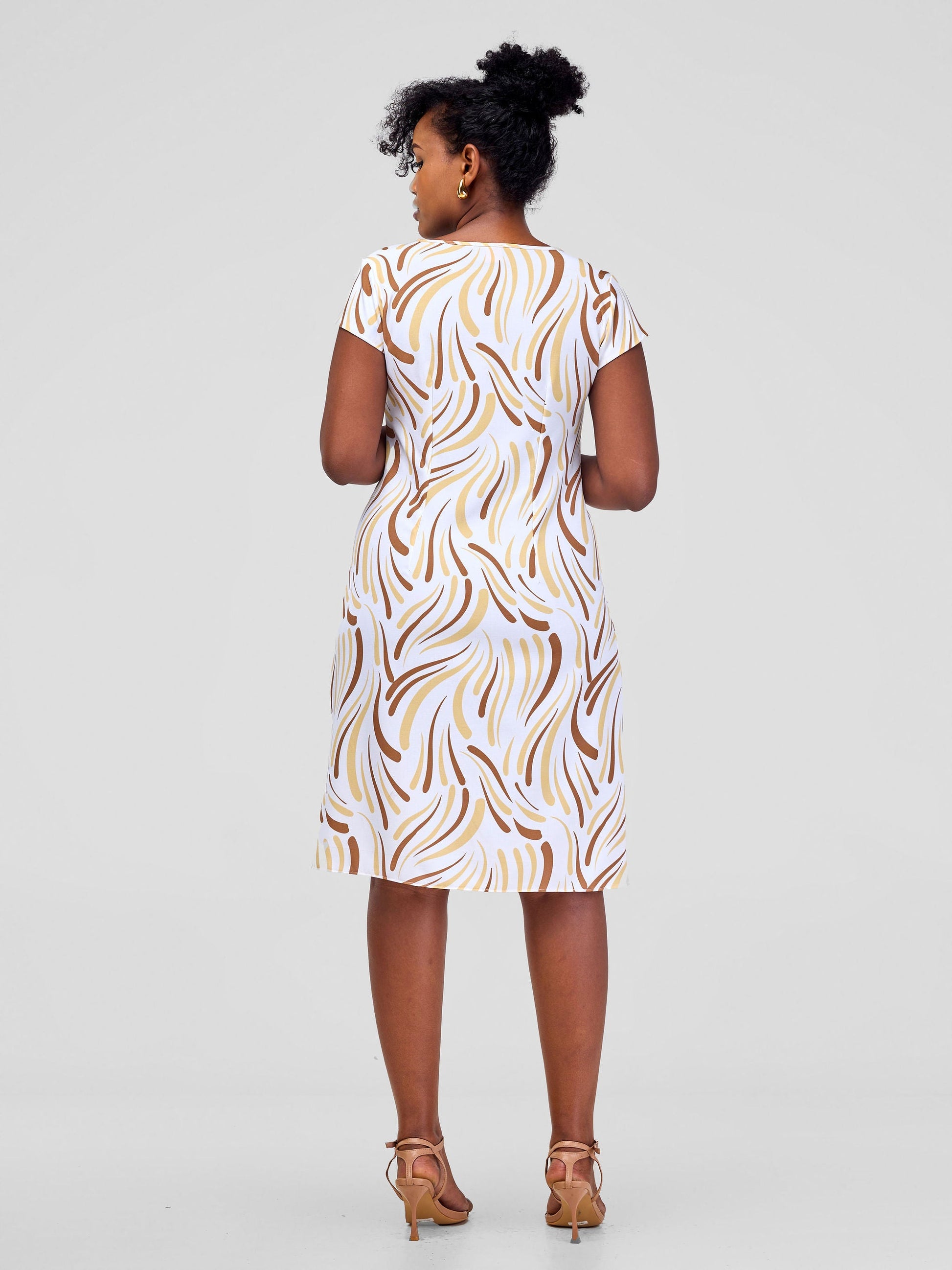 Vivo Laika Cap Sleeve Shift Dress - White Yala Print