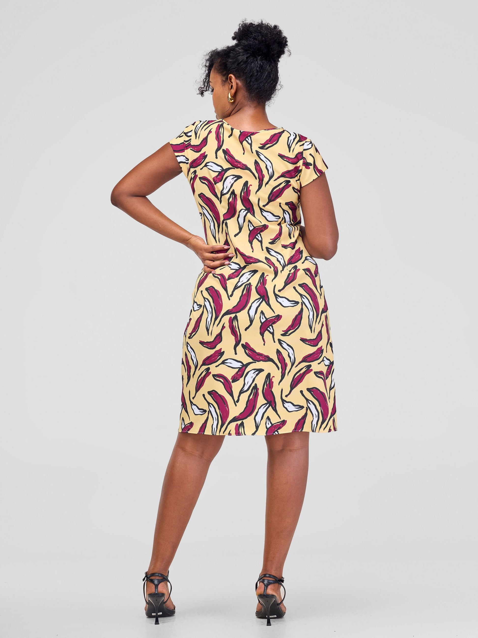Vivo Laika Cap Sleeve Shift Dress - Burgundy Molo Print
