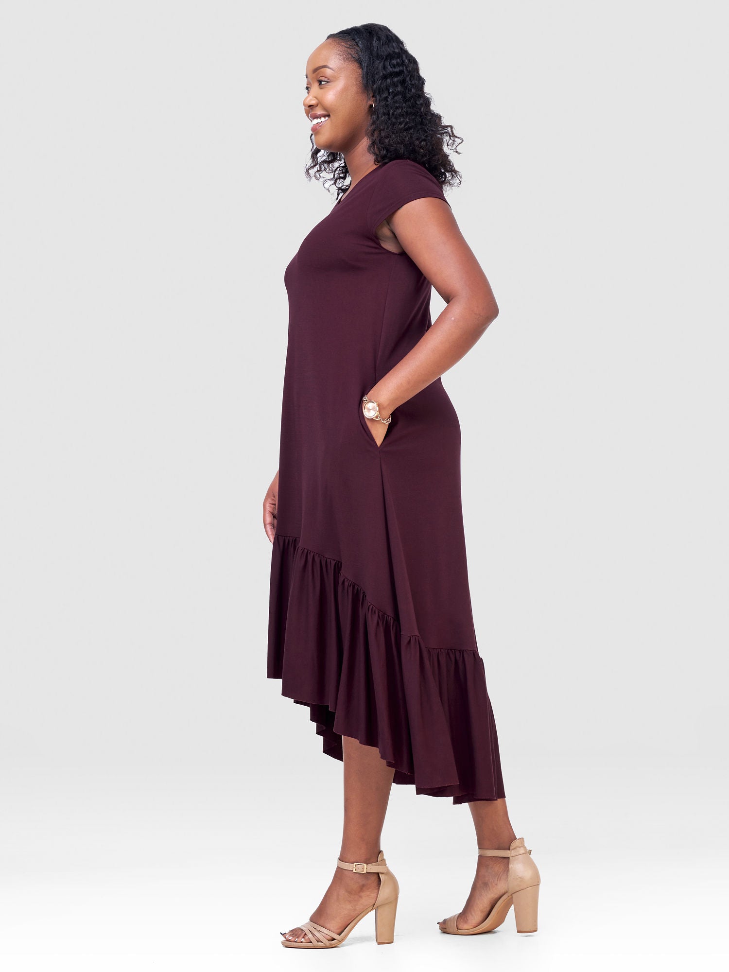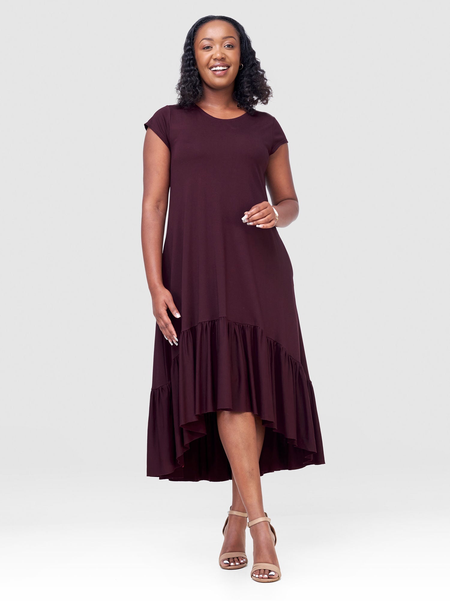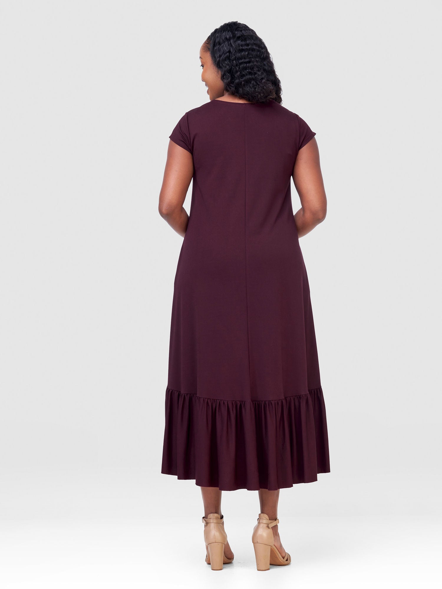 - Style: Round neck, Gathered Hem, Cap Sleeves,Midi Length