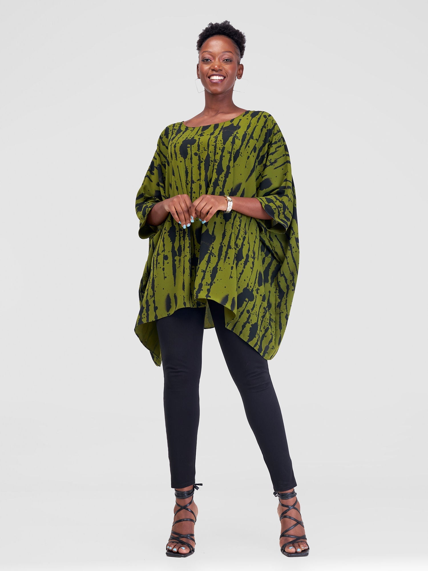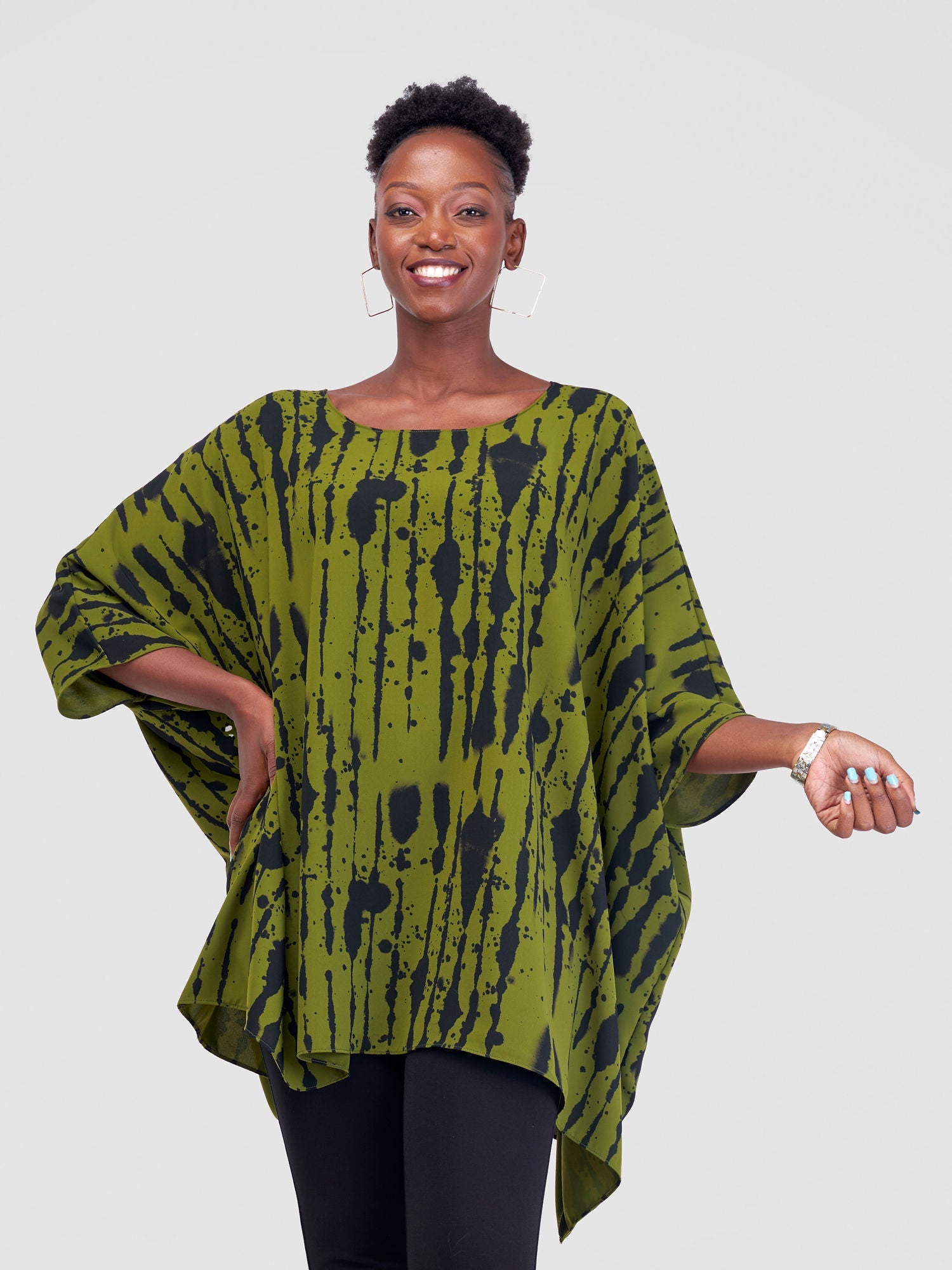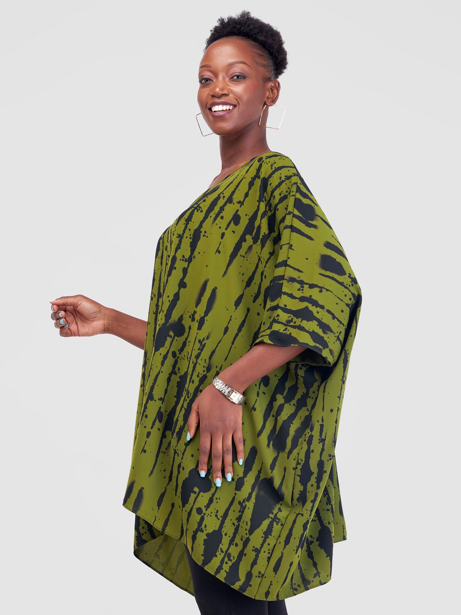 Vivo Liv Wide Crepe Top - Hunters / Black Print