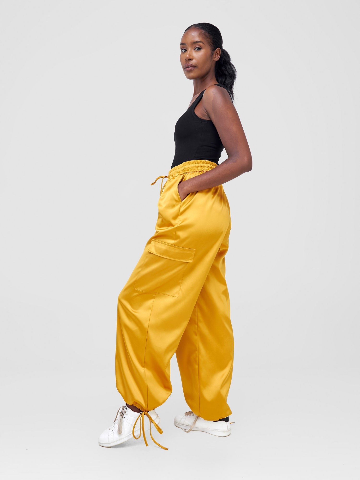 Made for those who dare to stand out, these pants are perfect for any occasion where you want to turn heads. With a sleek satin finish and trendy cargo pockets, these pants exude style and confidence. Pair them with a cropped graphic tee and chunky sneakers for a casual vibe, or dress them up with a fitted bodysuit and heels for a night out.