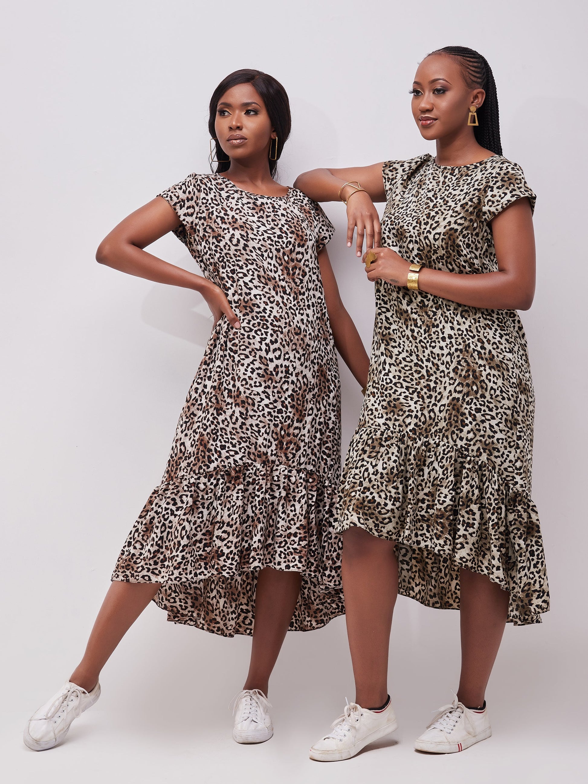 Safari Ayana Cap Sleeved High Low Tent Dress - Brown Cheetah Print