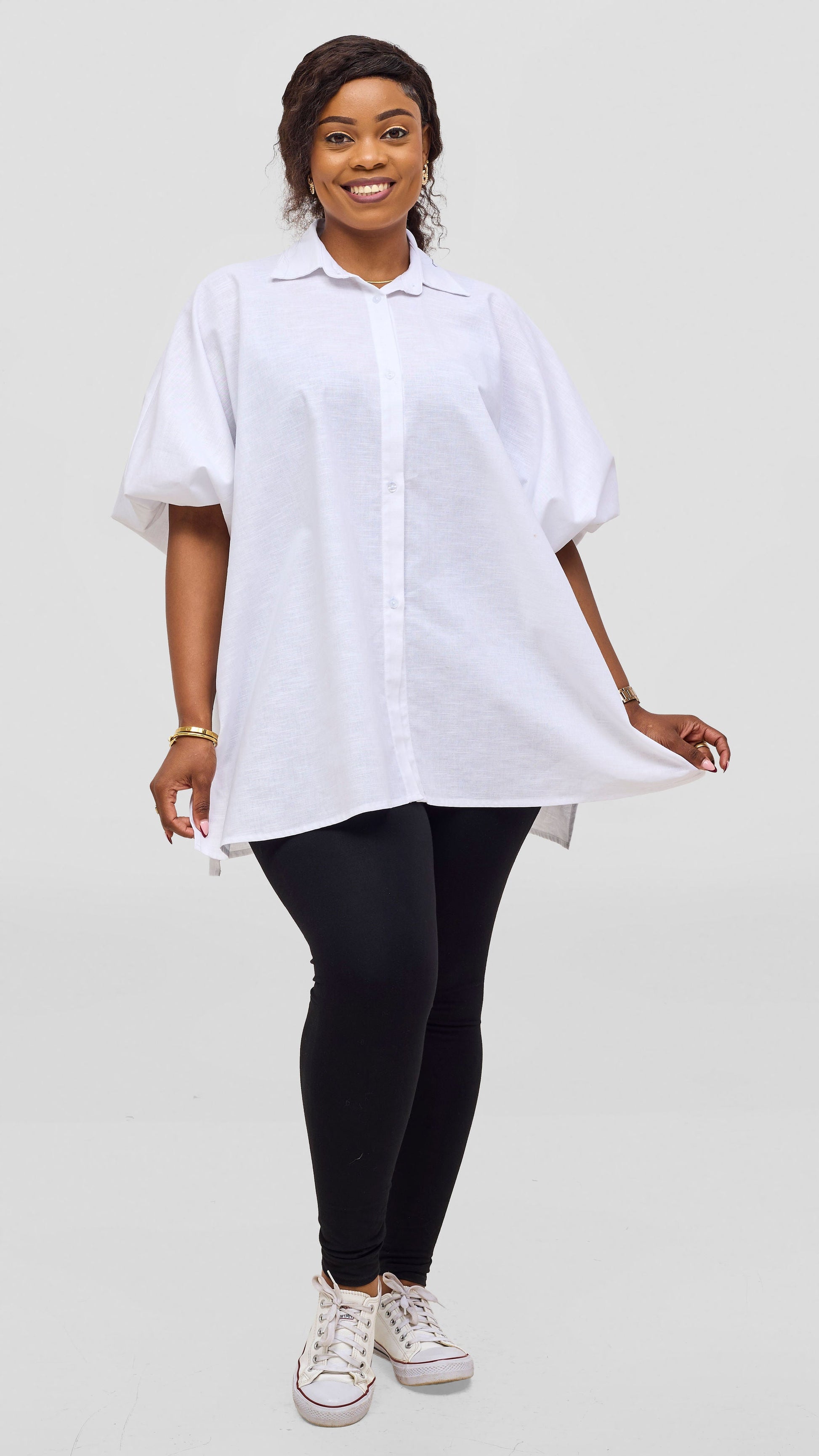 Safari by Vivo Zehra Extra Wide Linen Shirt - White