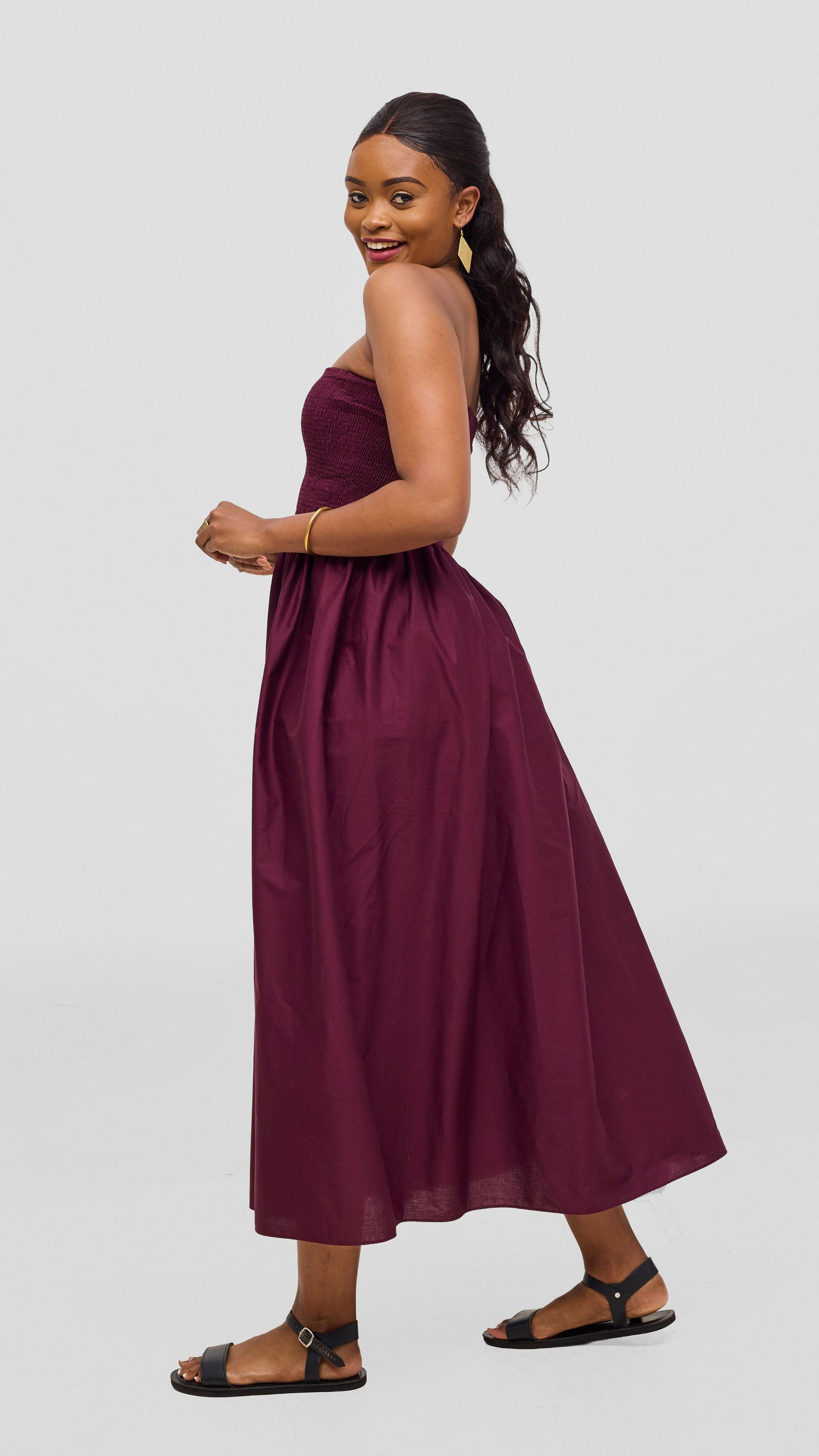 Safari by Vivo Zehra Shirred Midi Dress - Mulberry