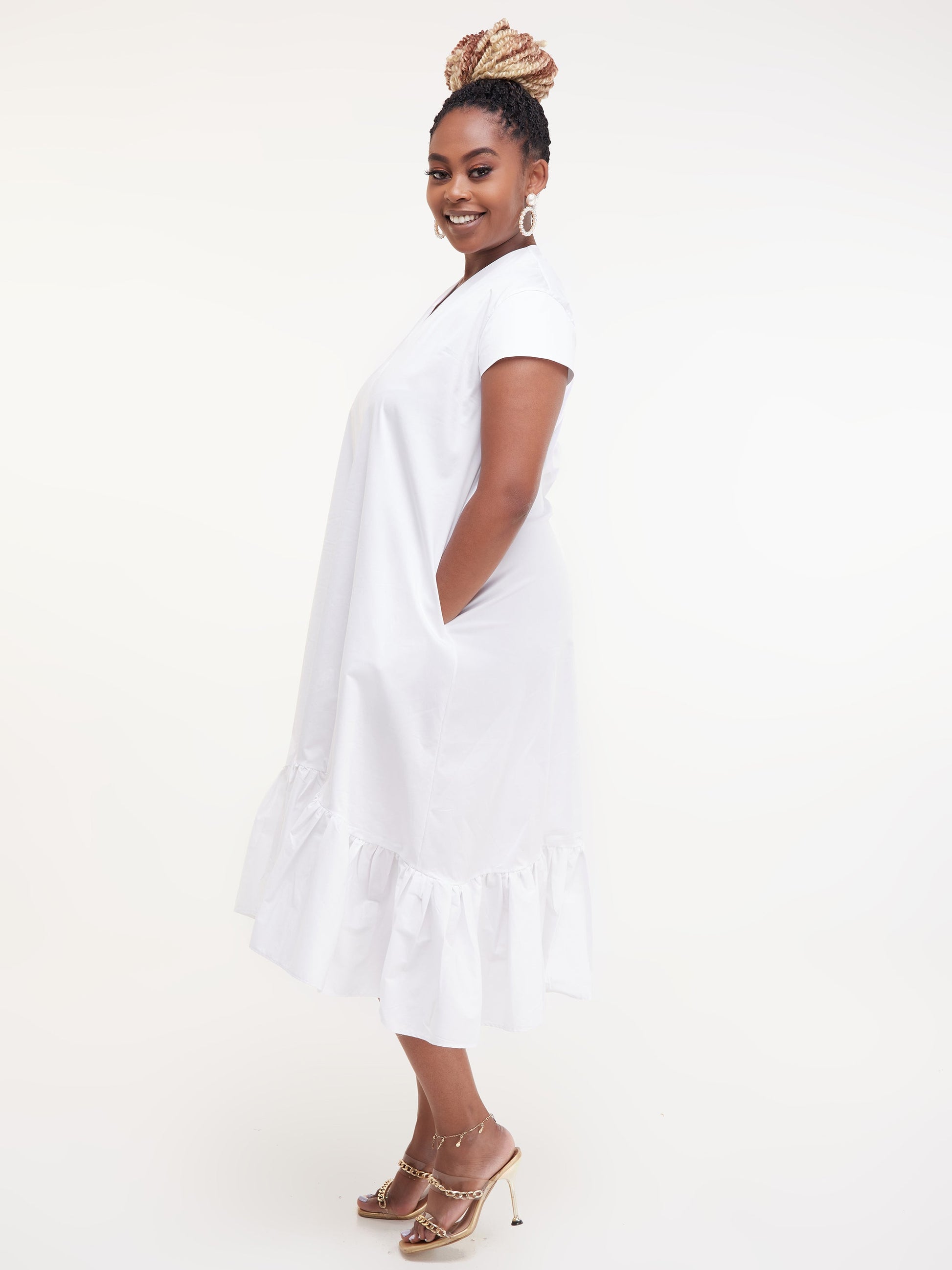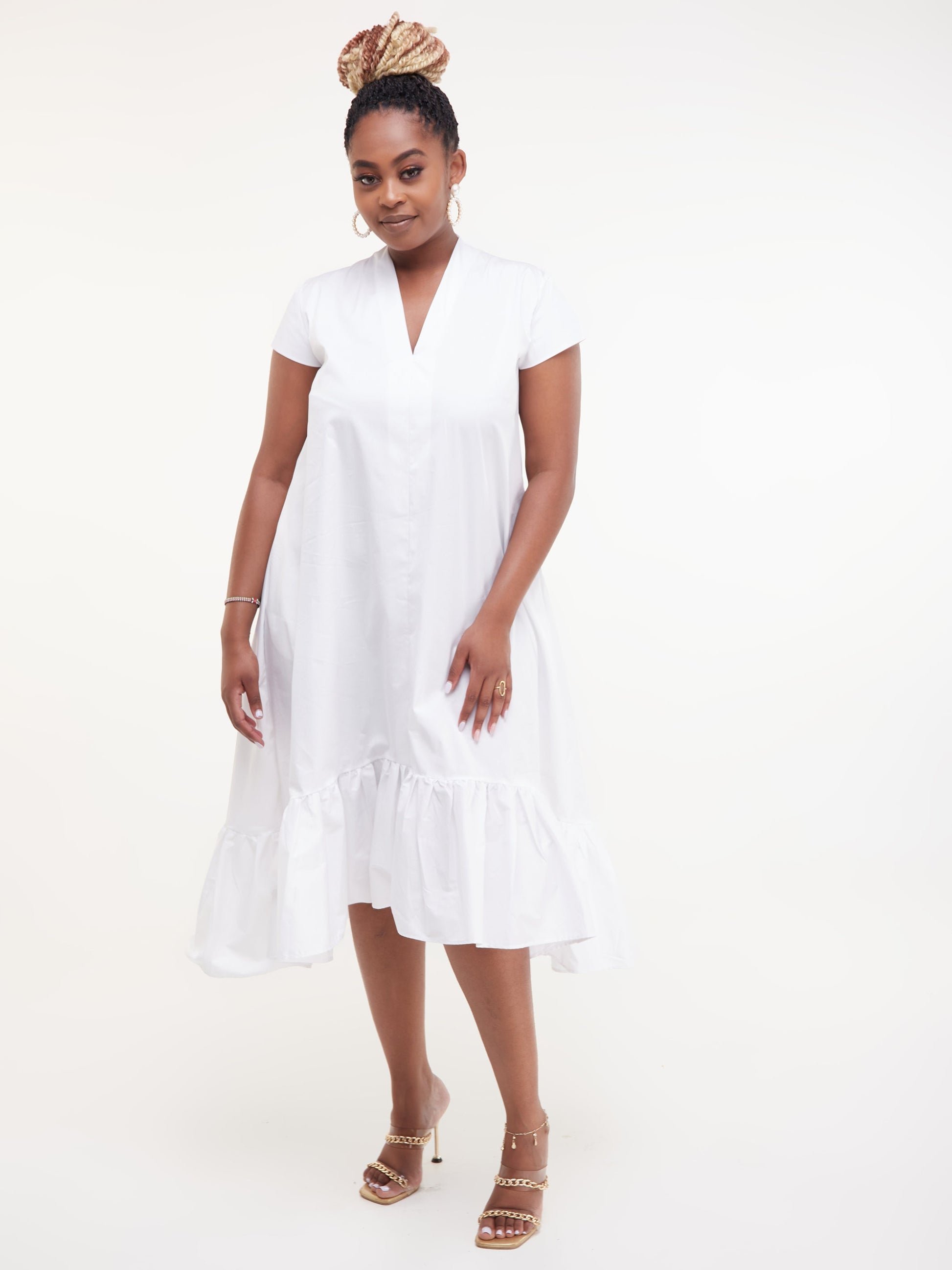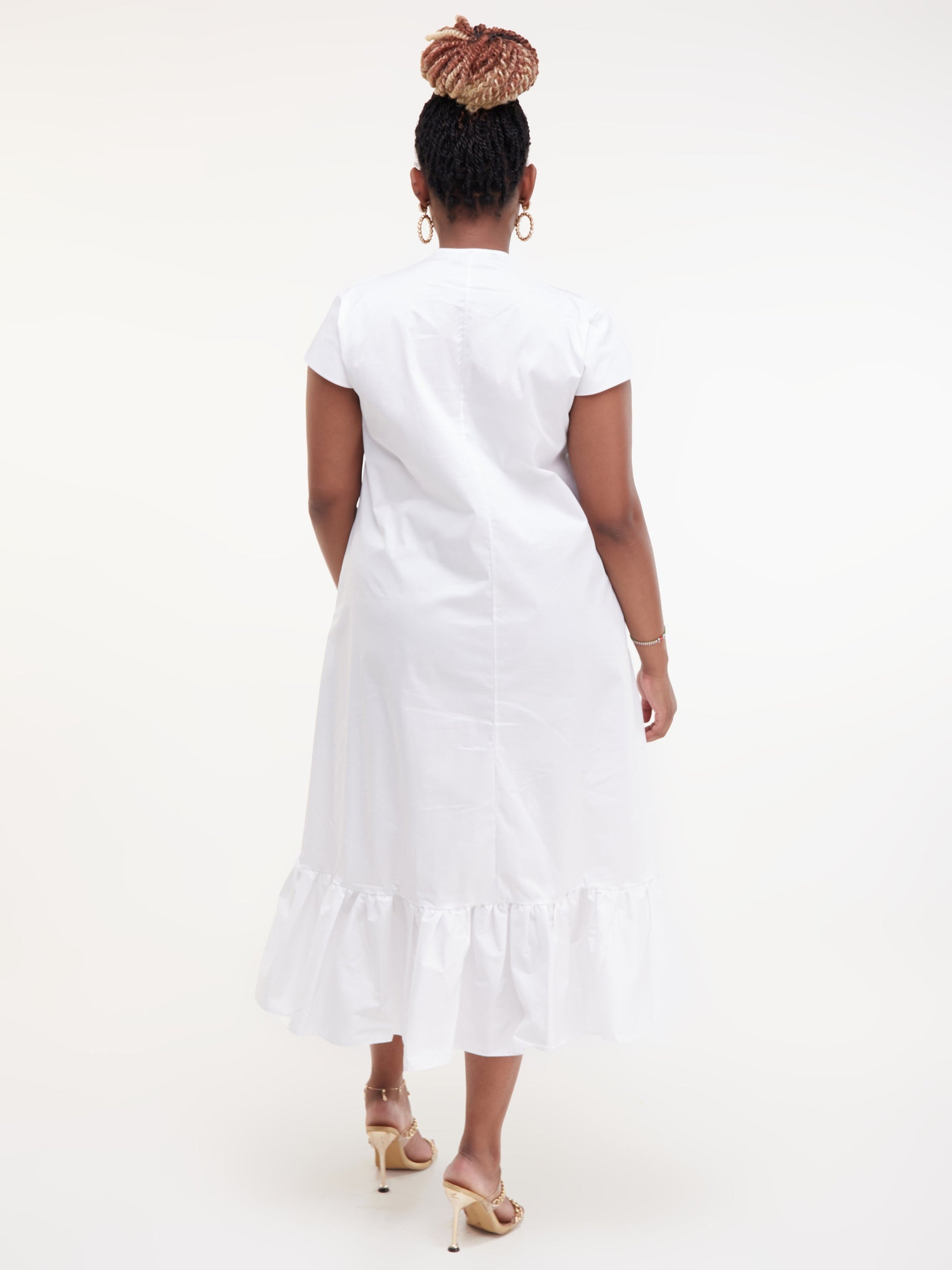 Safari Huru Cap Sleeved Hi - Low Dress - White