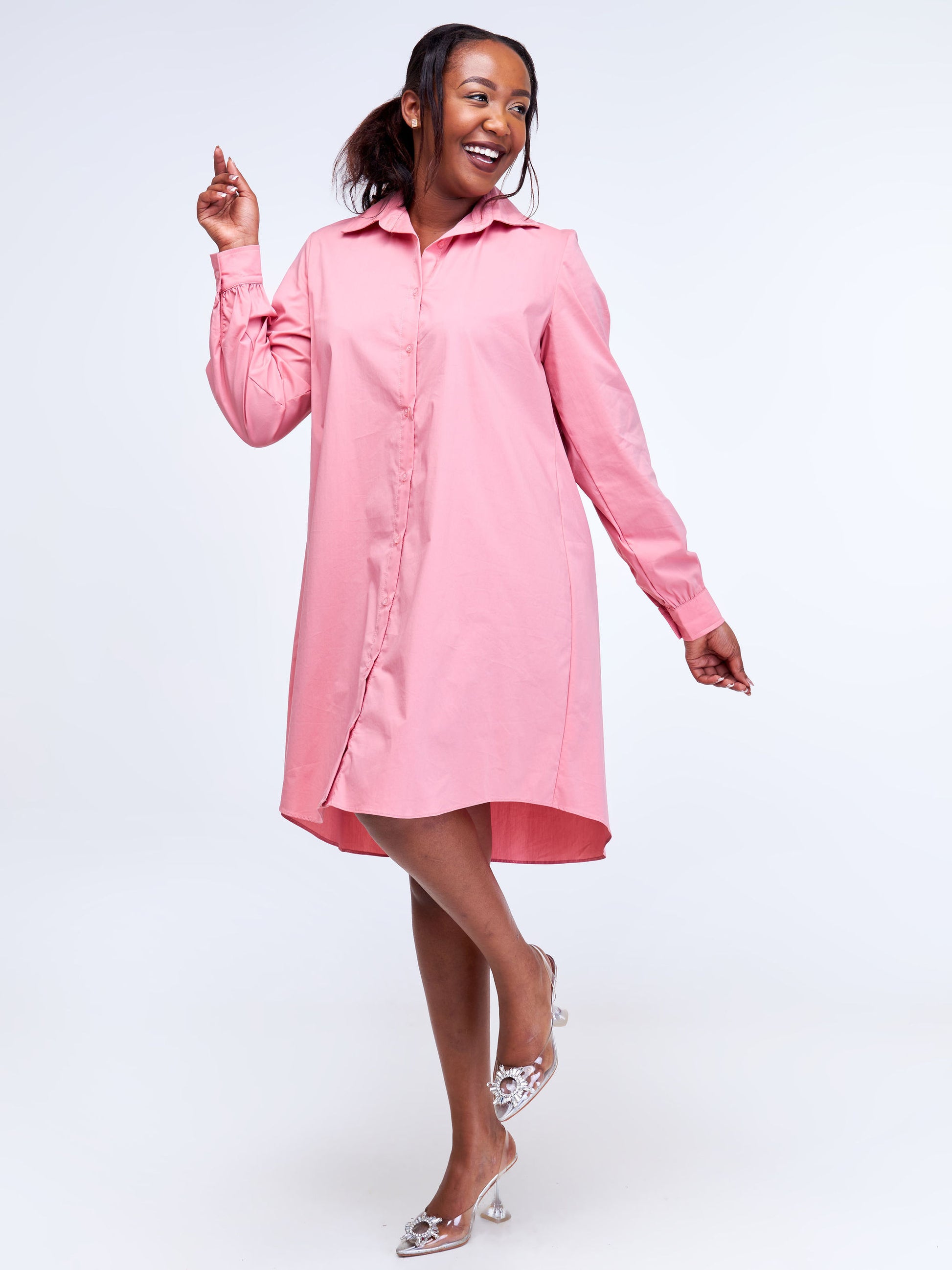 Safari Kaya Long Sleeve Shirt Dress - Peach