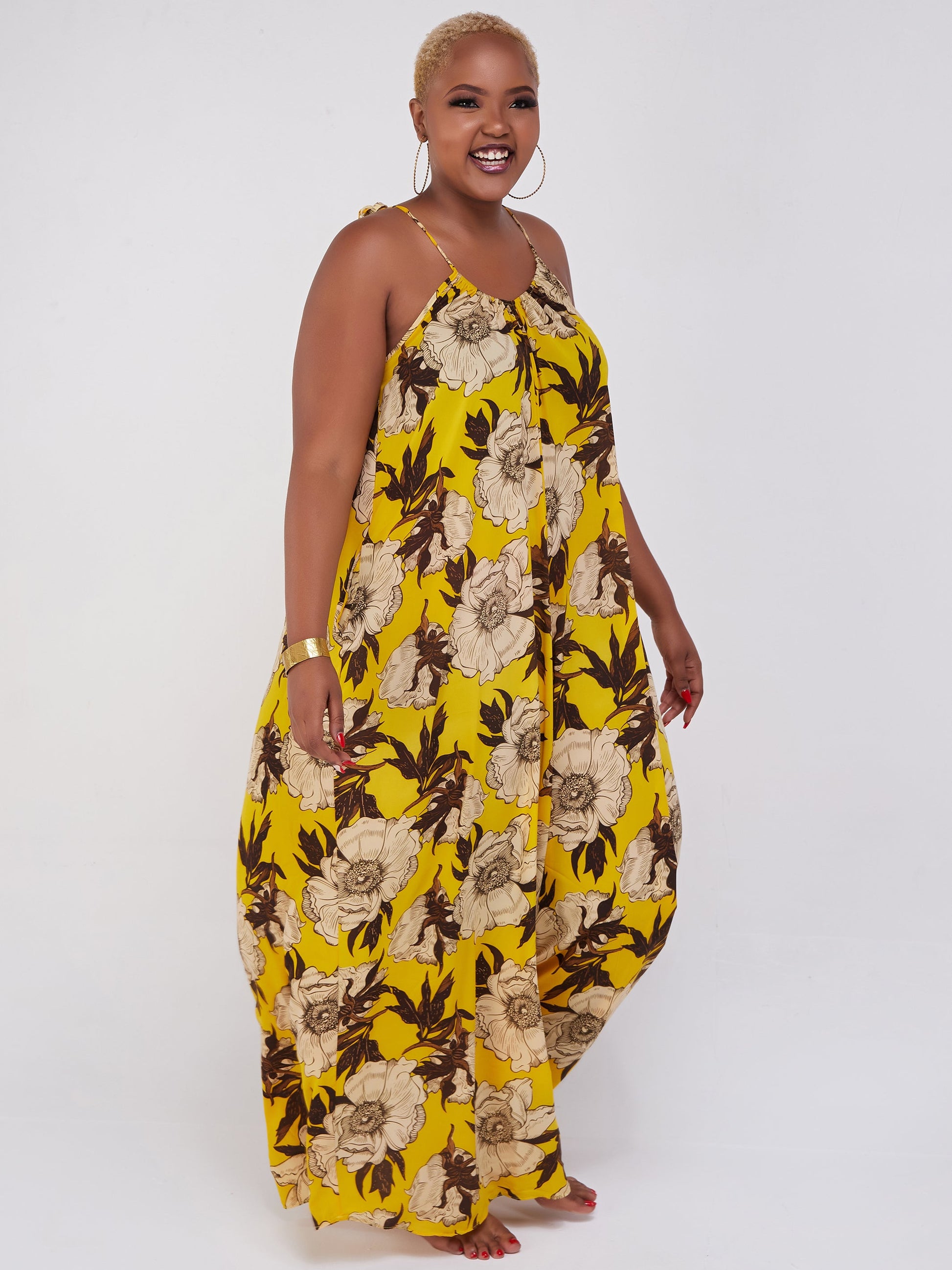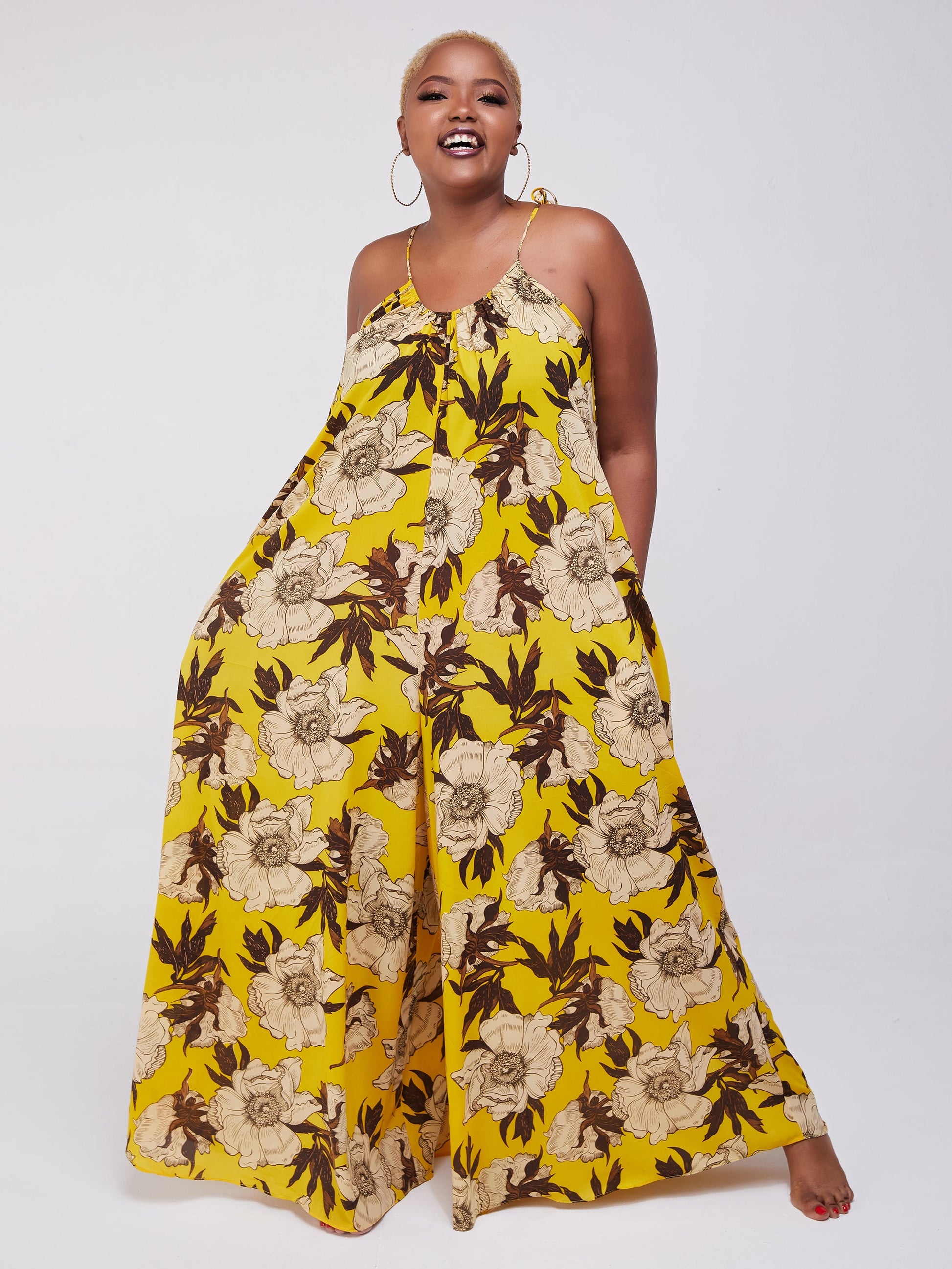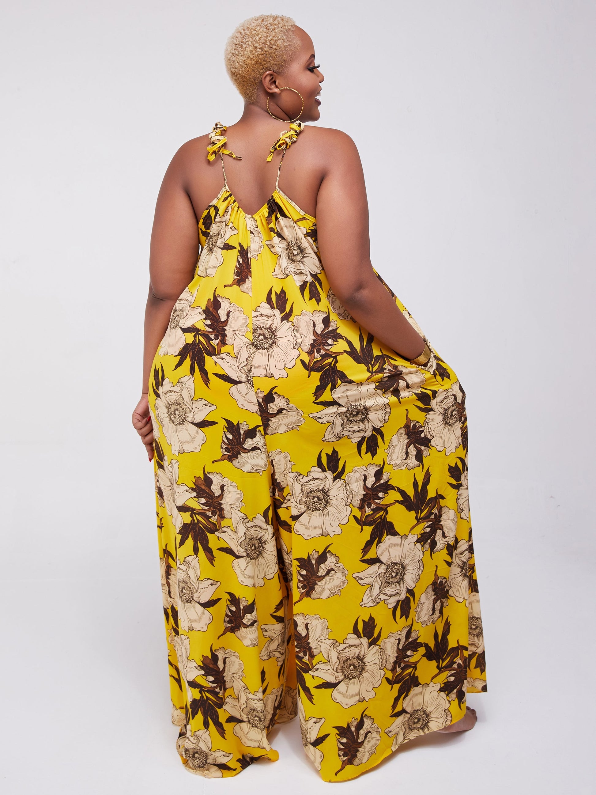 Safari Maisha Strappy Jumpsuit Cover-Up - Yellow Floral Print