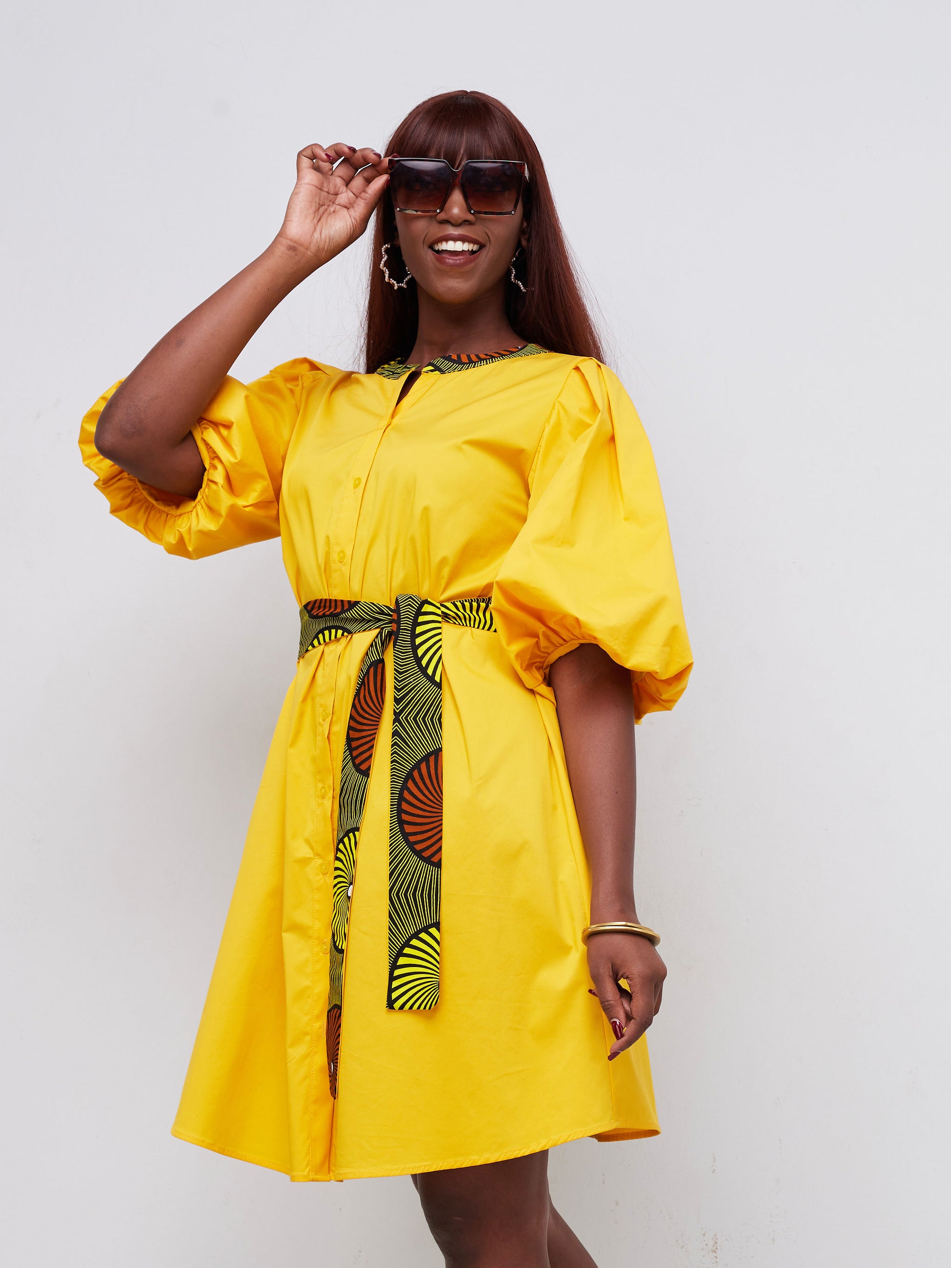 Safari Mali Bishop Sleeve Tent Dress - Mustard
