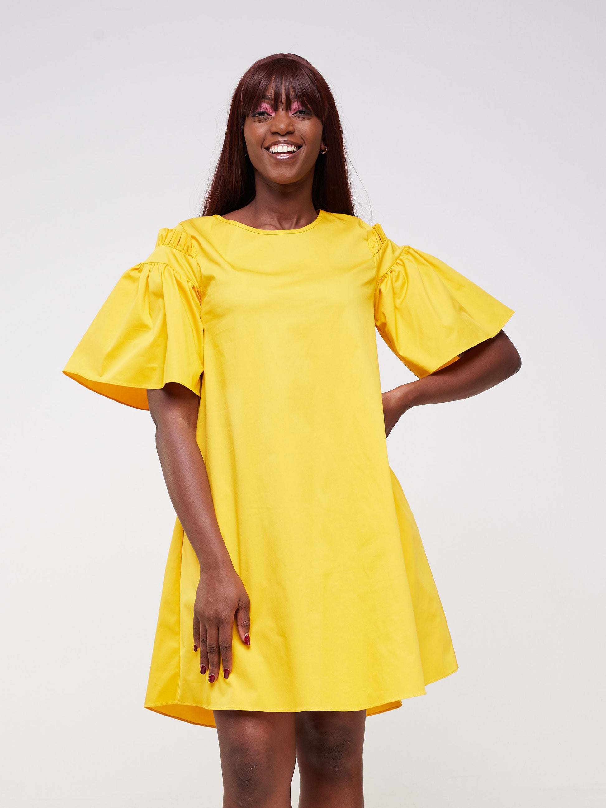 Safari Mali Gathered Flounce Sleeve Tent Dress - Mustard