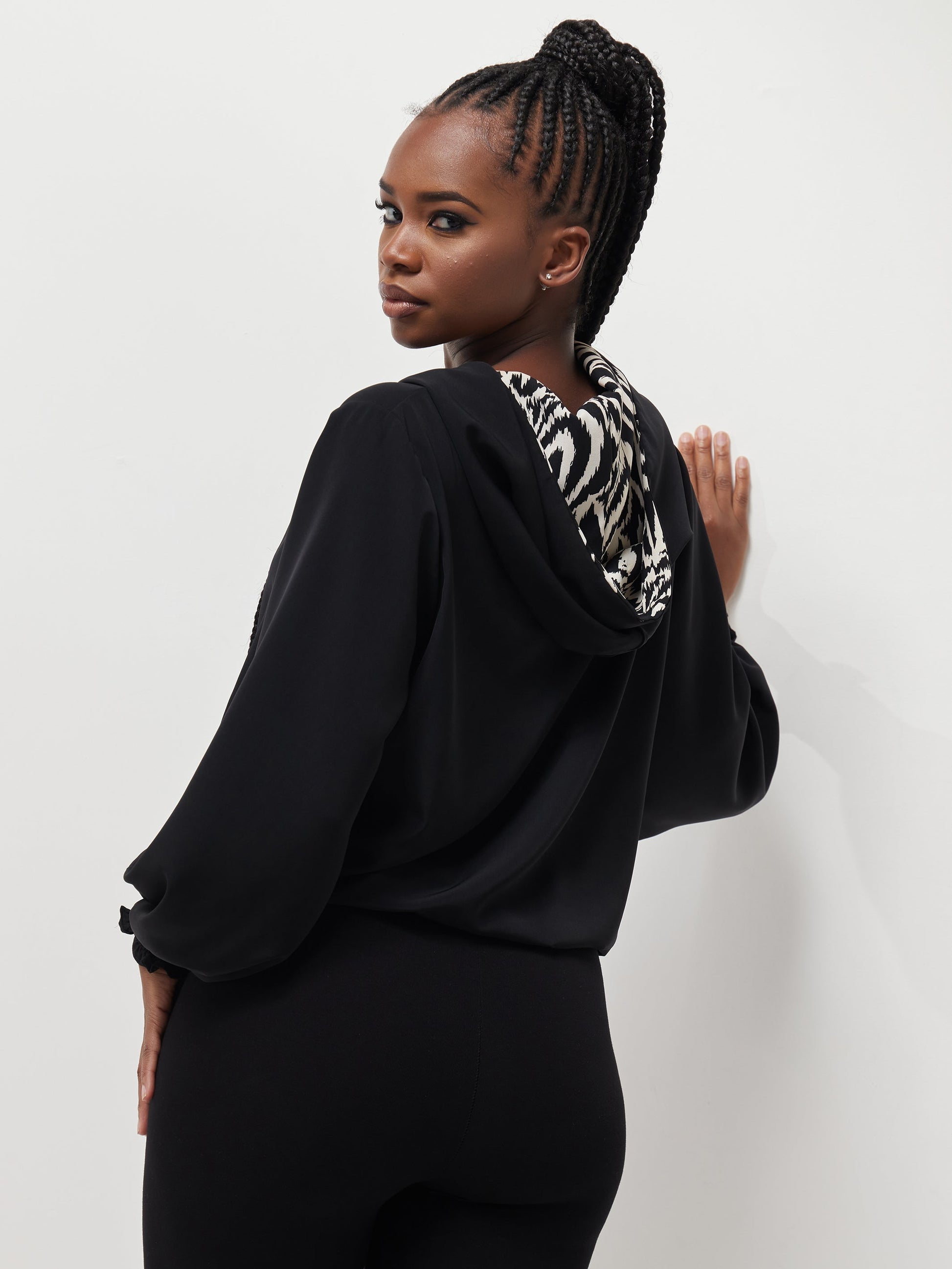 Safari Naima Crepe Drawstring Hoodie - Black / White Print