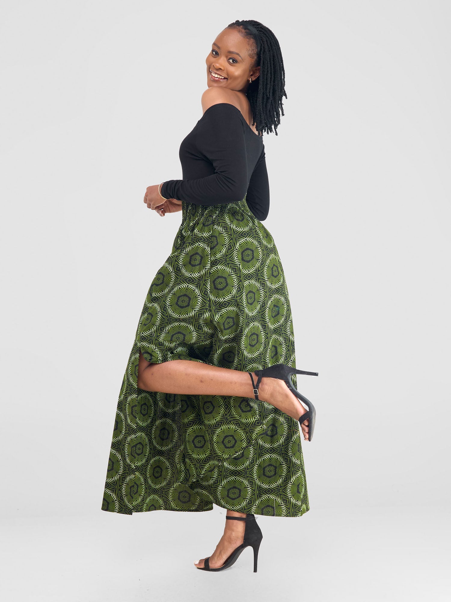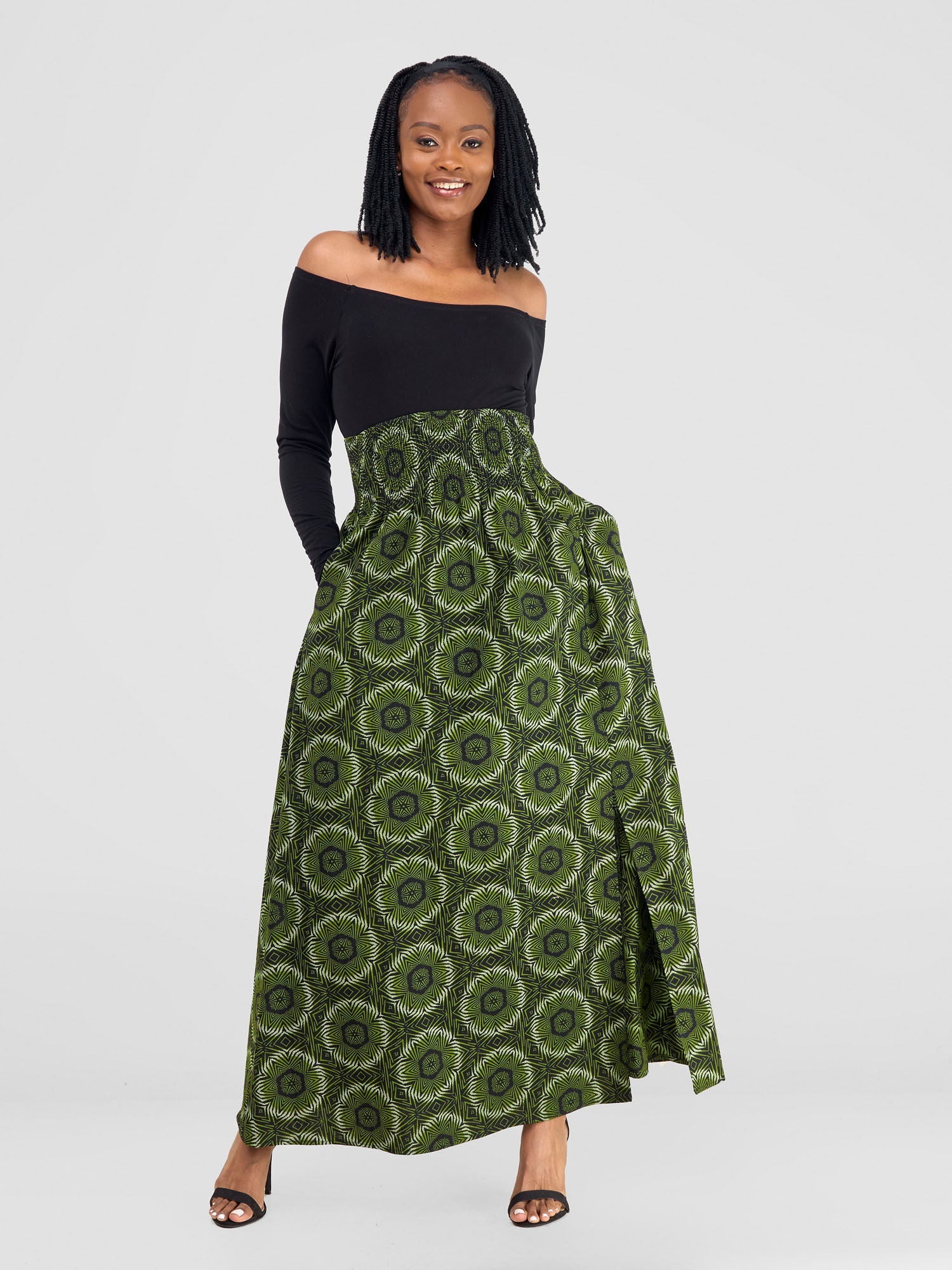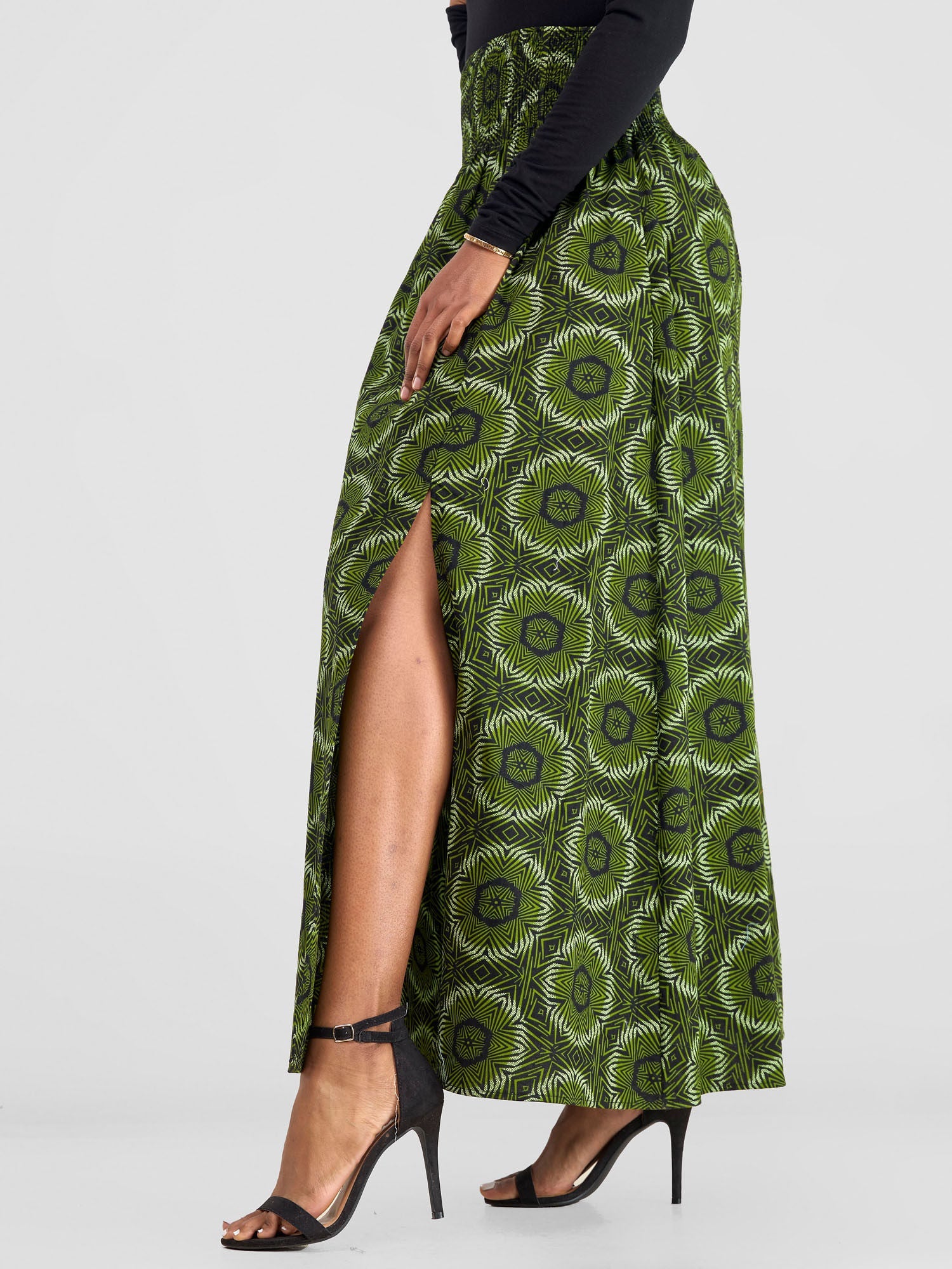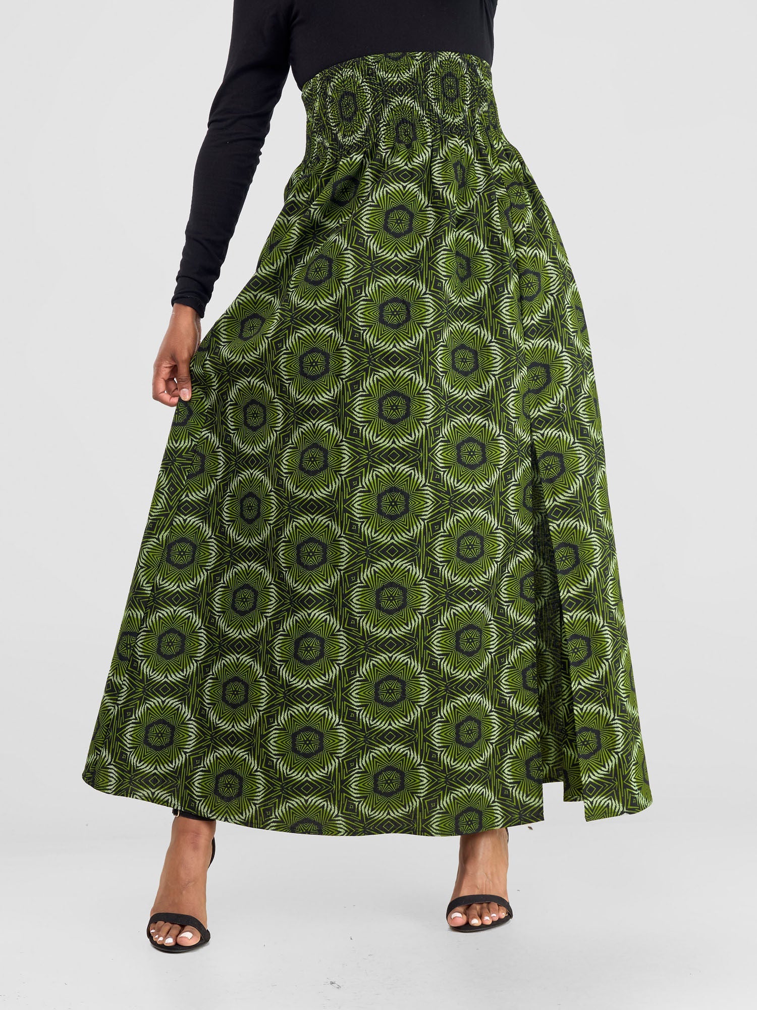 Safari Savannah Front Slit Midi Skirt - Ashai Print