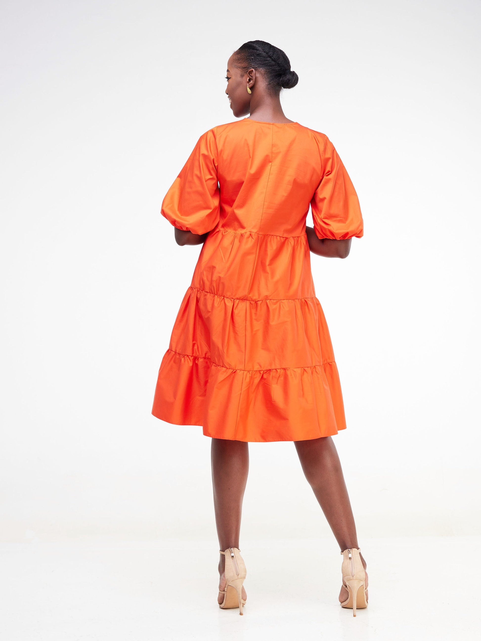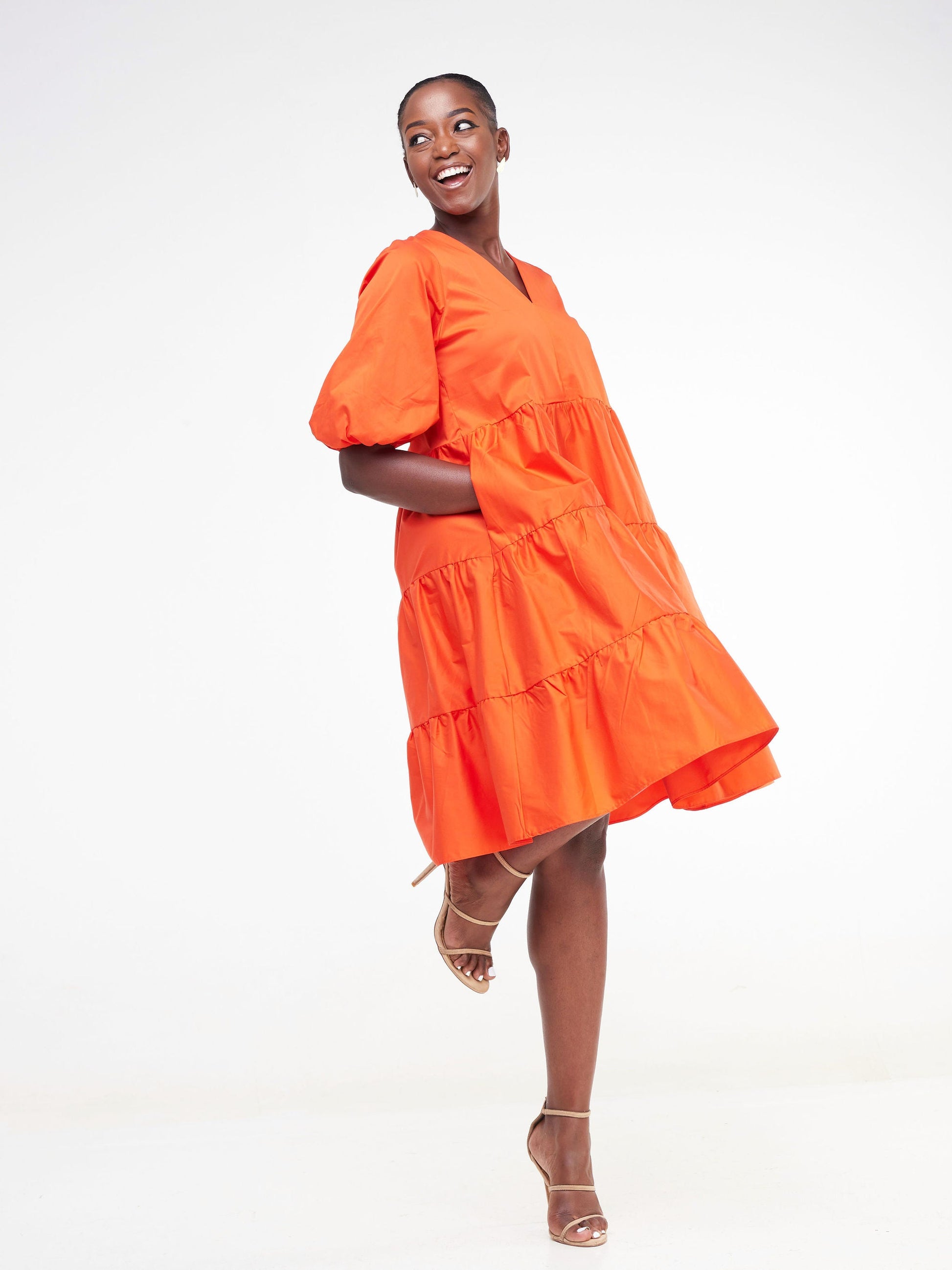 Safari Tawi Bishop Sleeve Tiered Dress - Orange