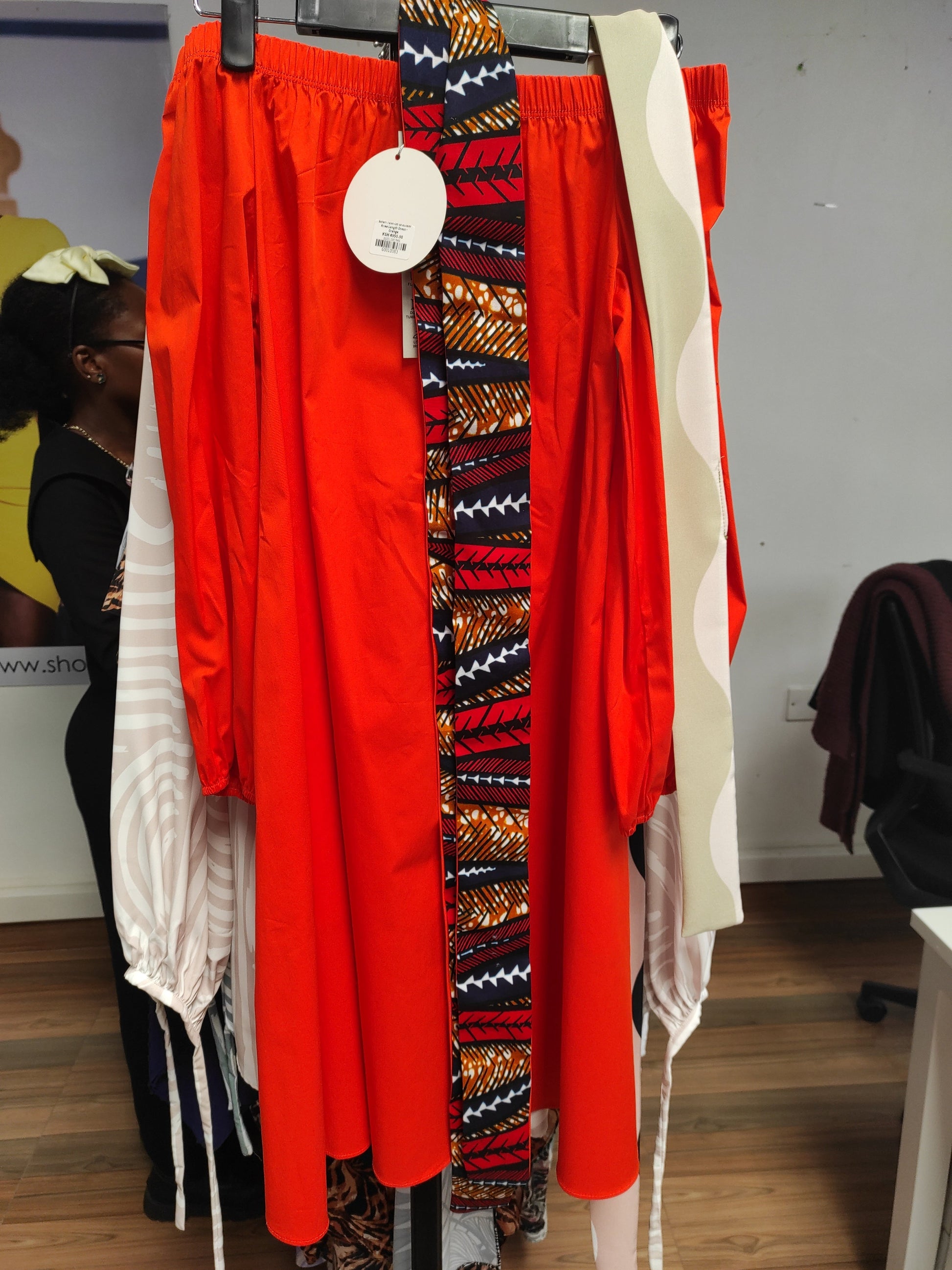 Safari Tawi Off Shoulder Knee Length Dress - Orange