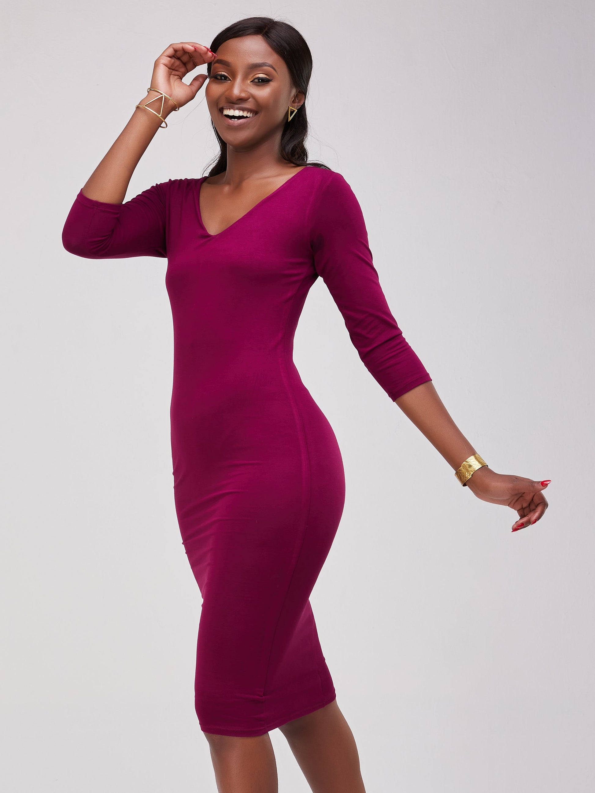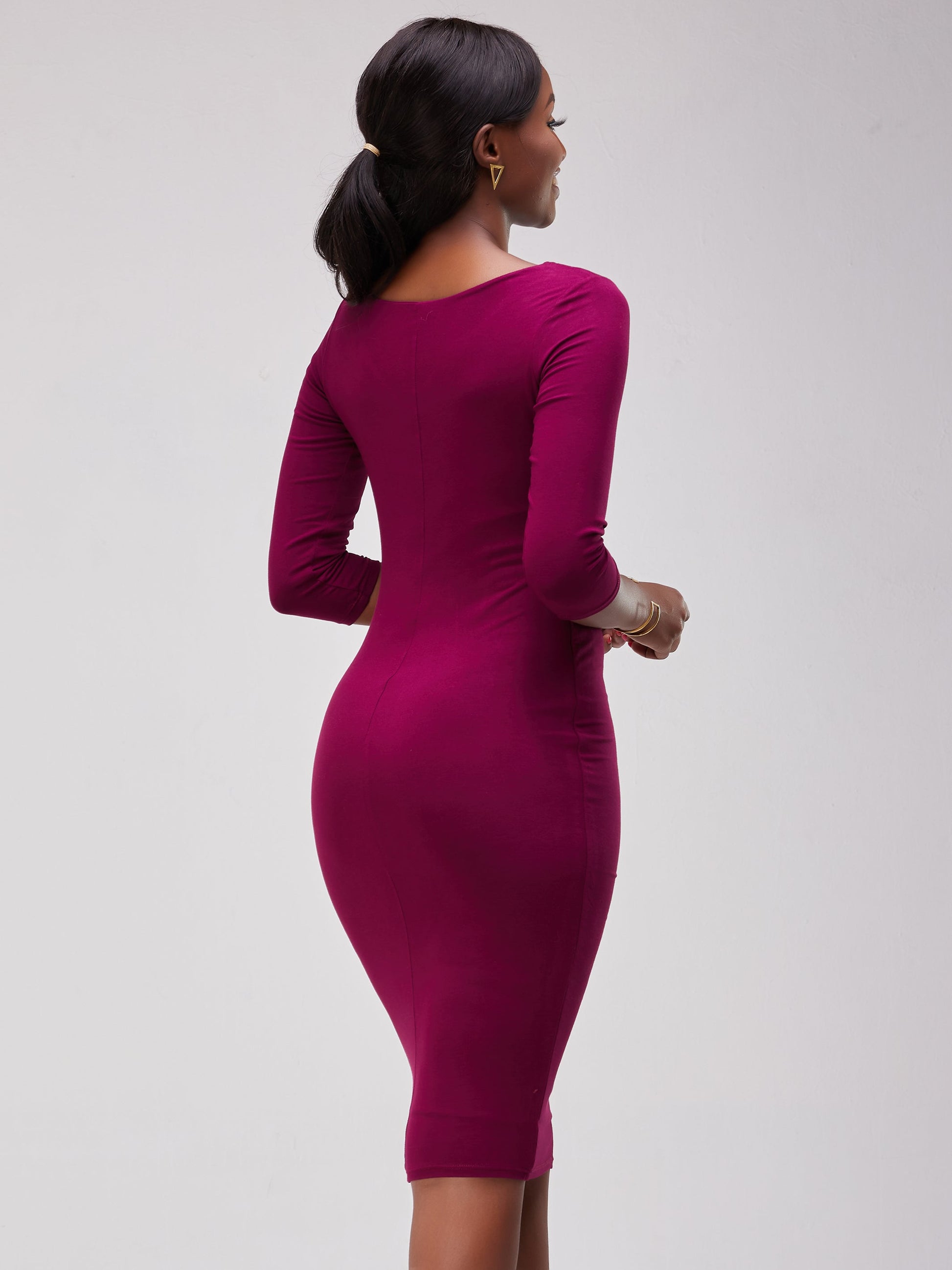 Vivo Basic 3/4 Sleeve Double Layered Bodycon Dress - Burgundy