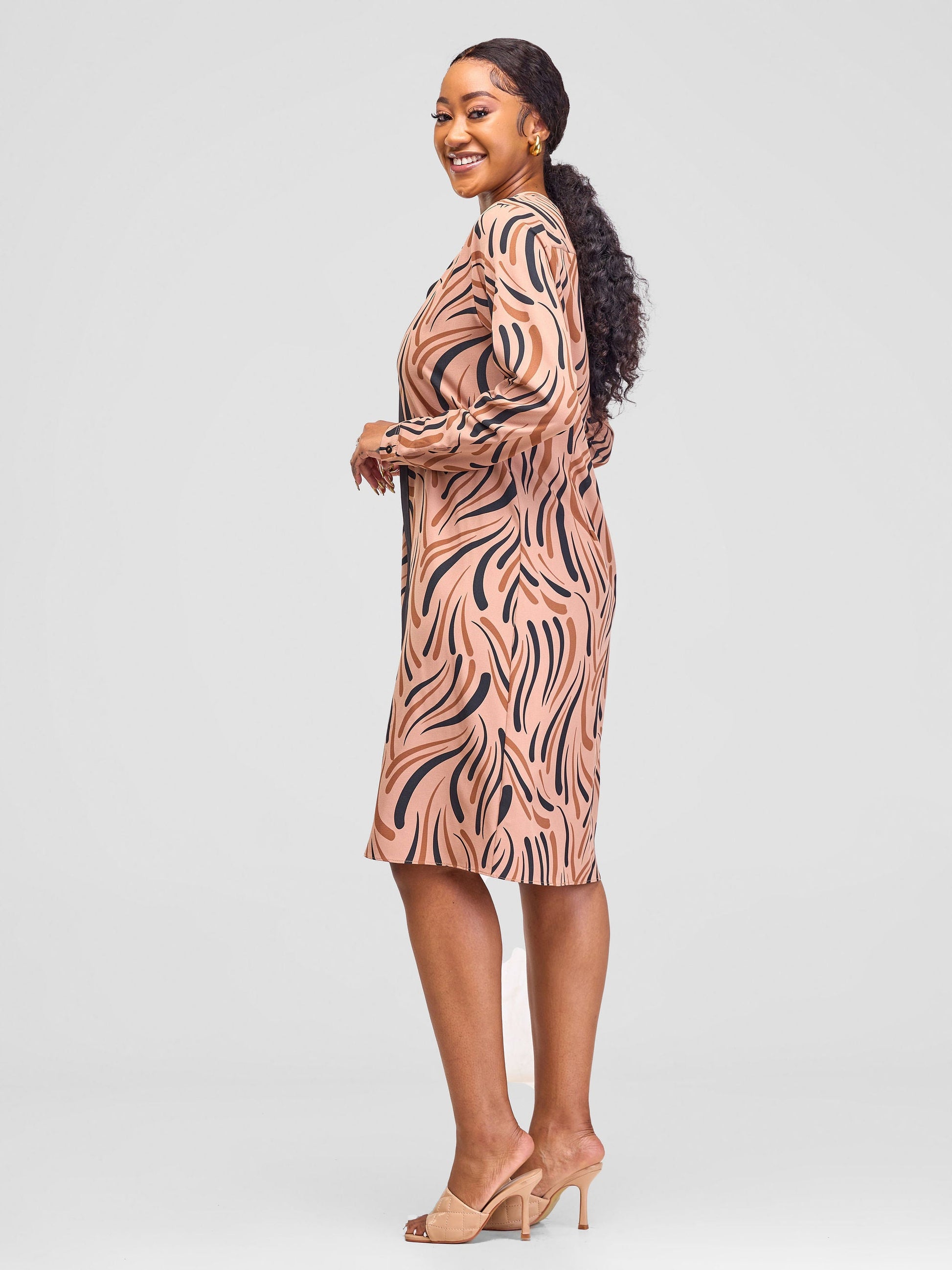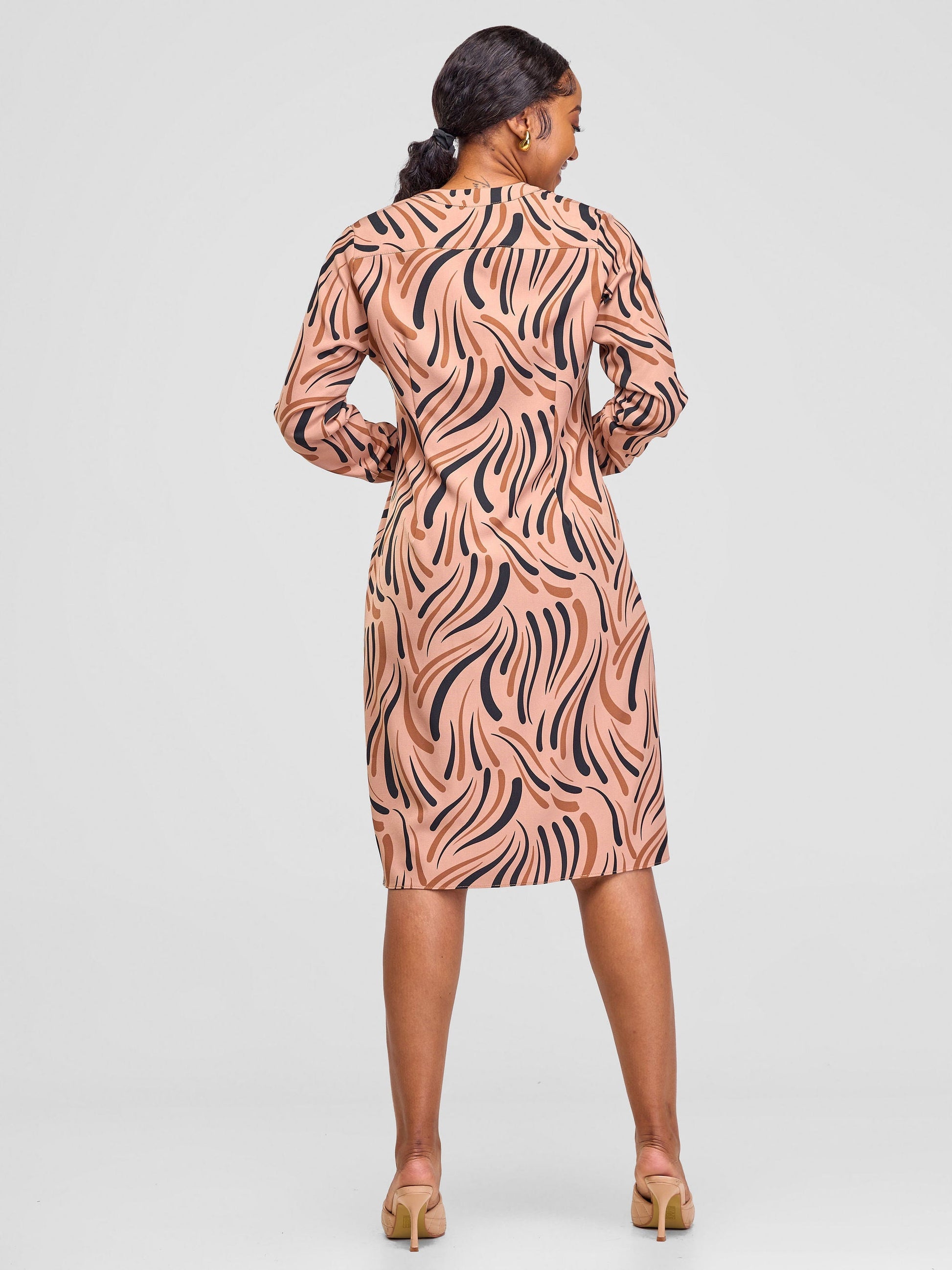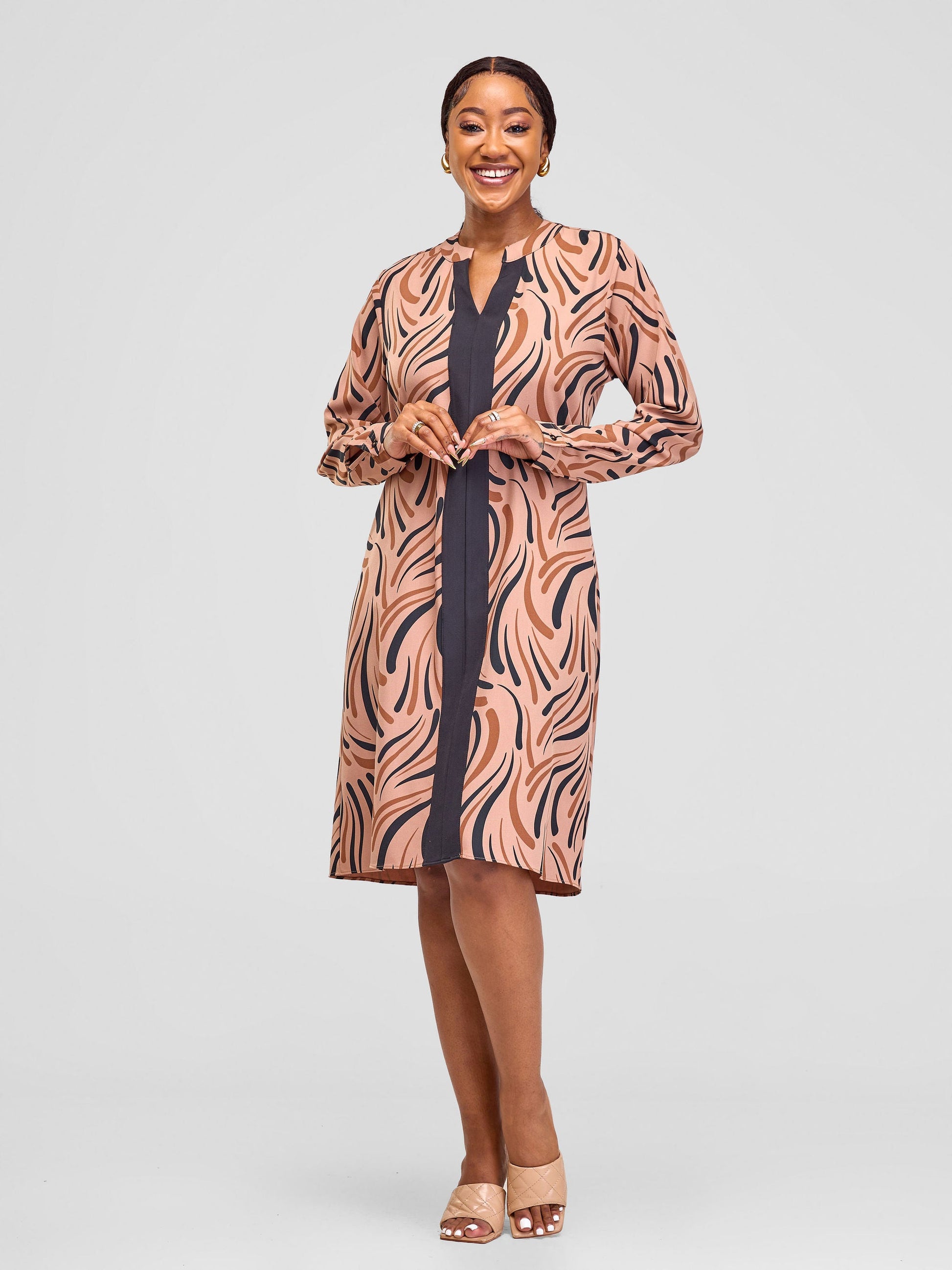 Vivo Ajani V-Neck Shift Dress - Tan Yala Print