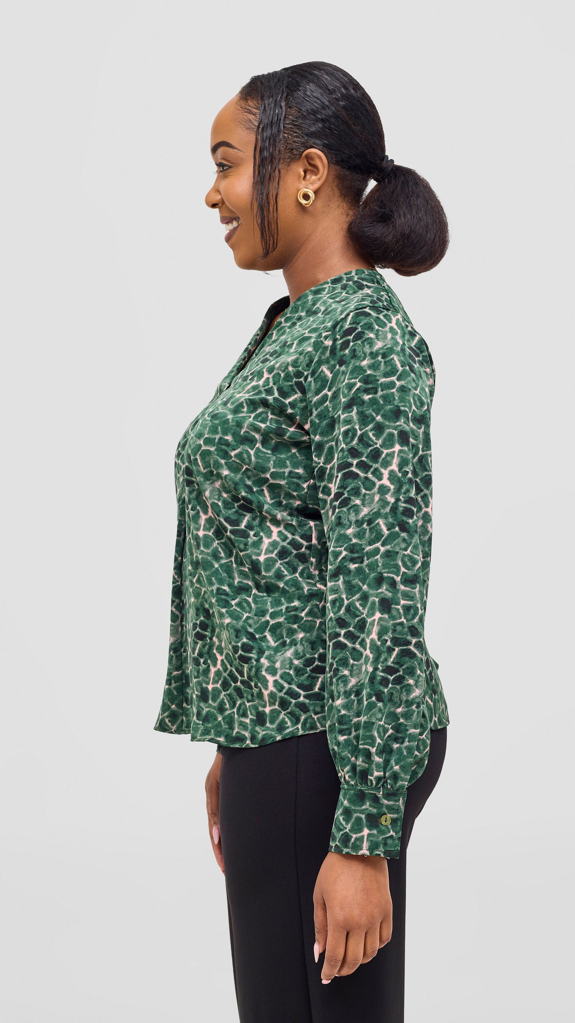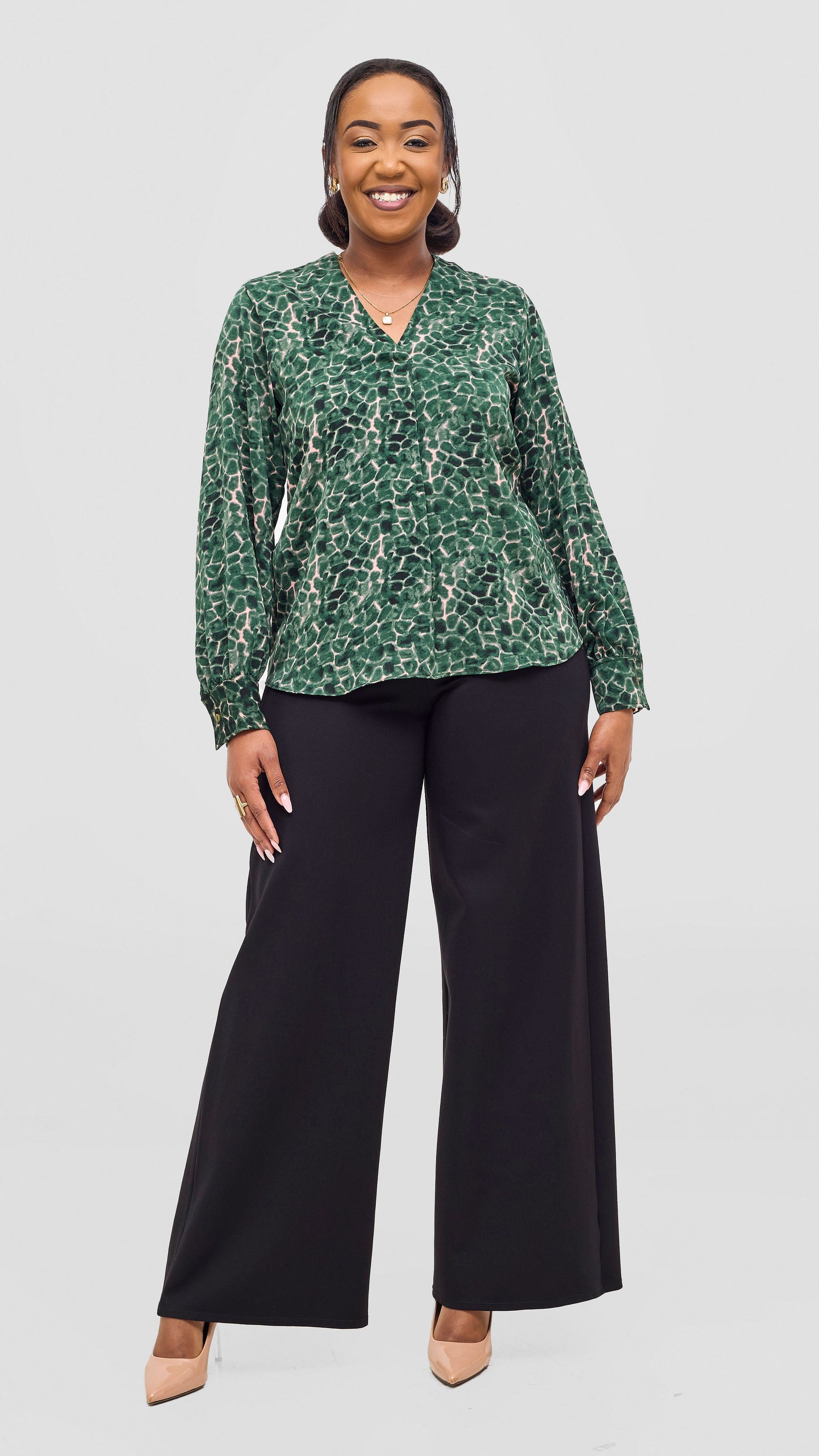 Vivo Ajani V-Neck Top - Green / Pink Print