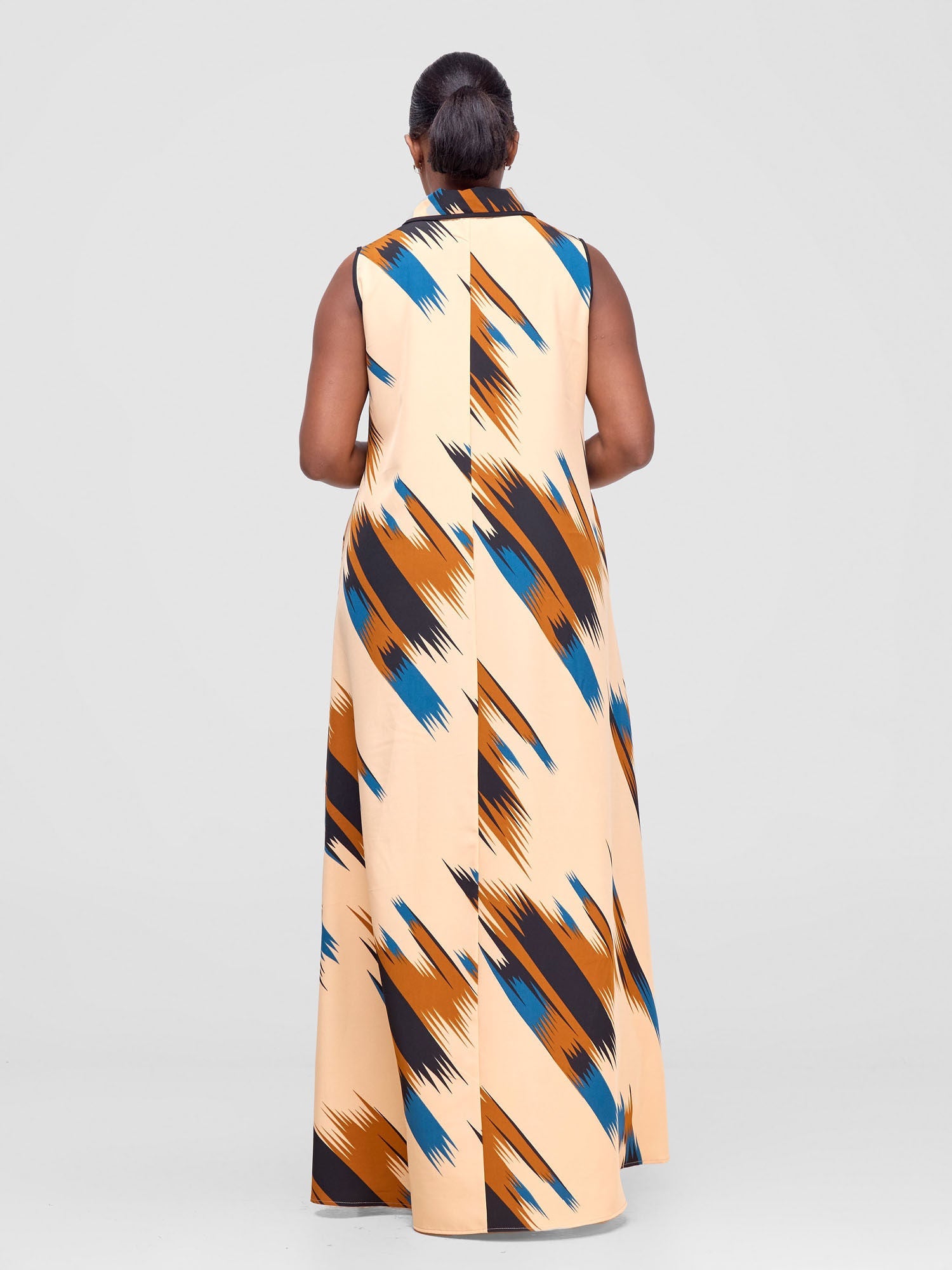 Vivo Shaa Sleeveless Maxi Dress - Cream / Teal Print