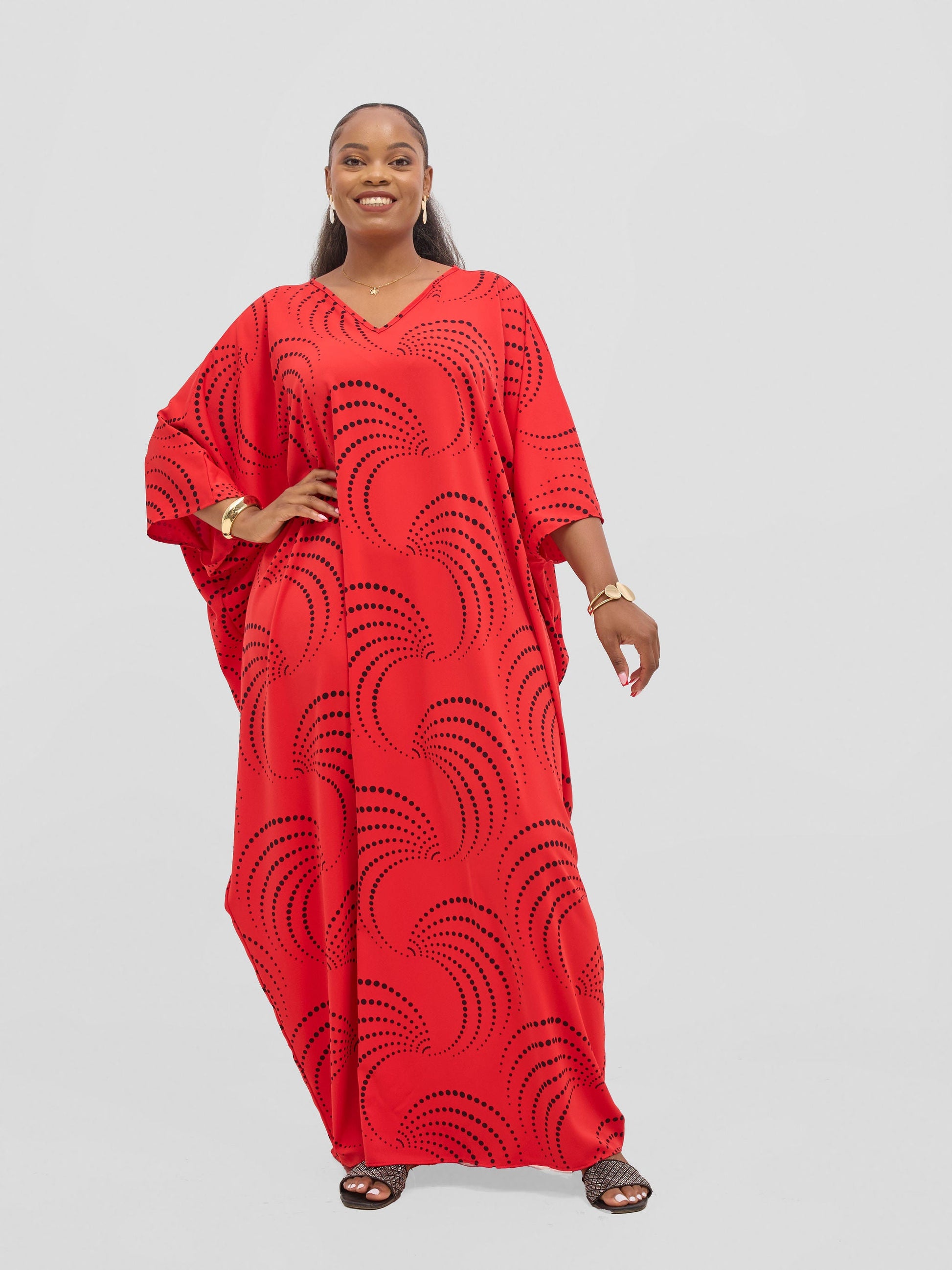 Vivo Ayla Maxi Kaftan Dress - Red / Black Sinka Print