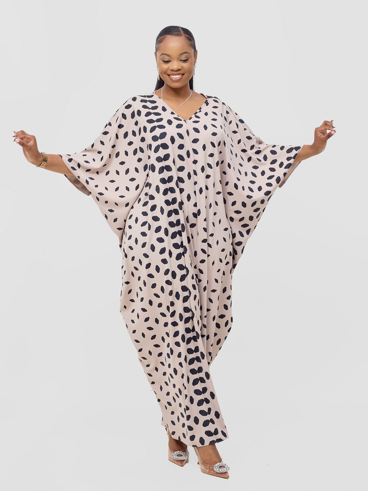 Vivo Ayla Maxi Kaftan Dress - Tan / Black Ila Print