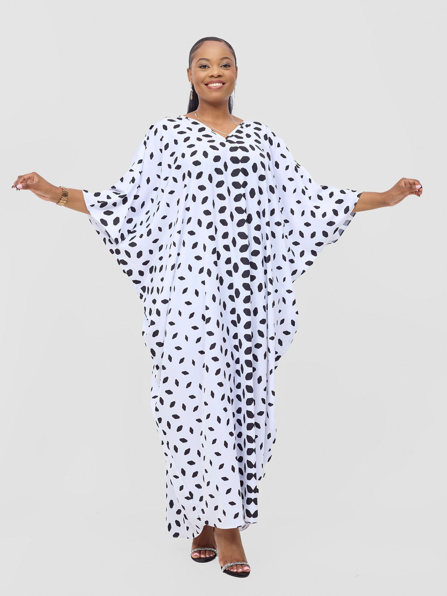 Vivo Ayla Maxi Kaftan Dress - White / Black Ila Print