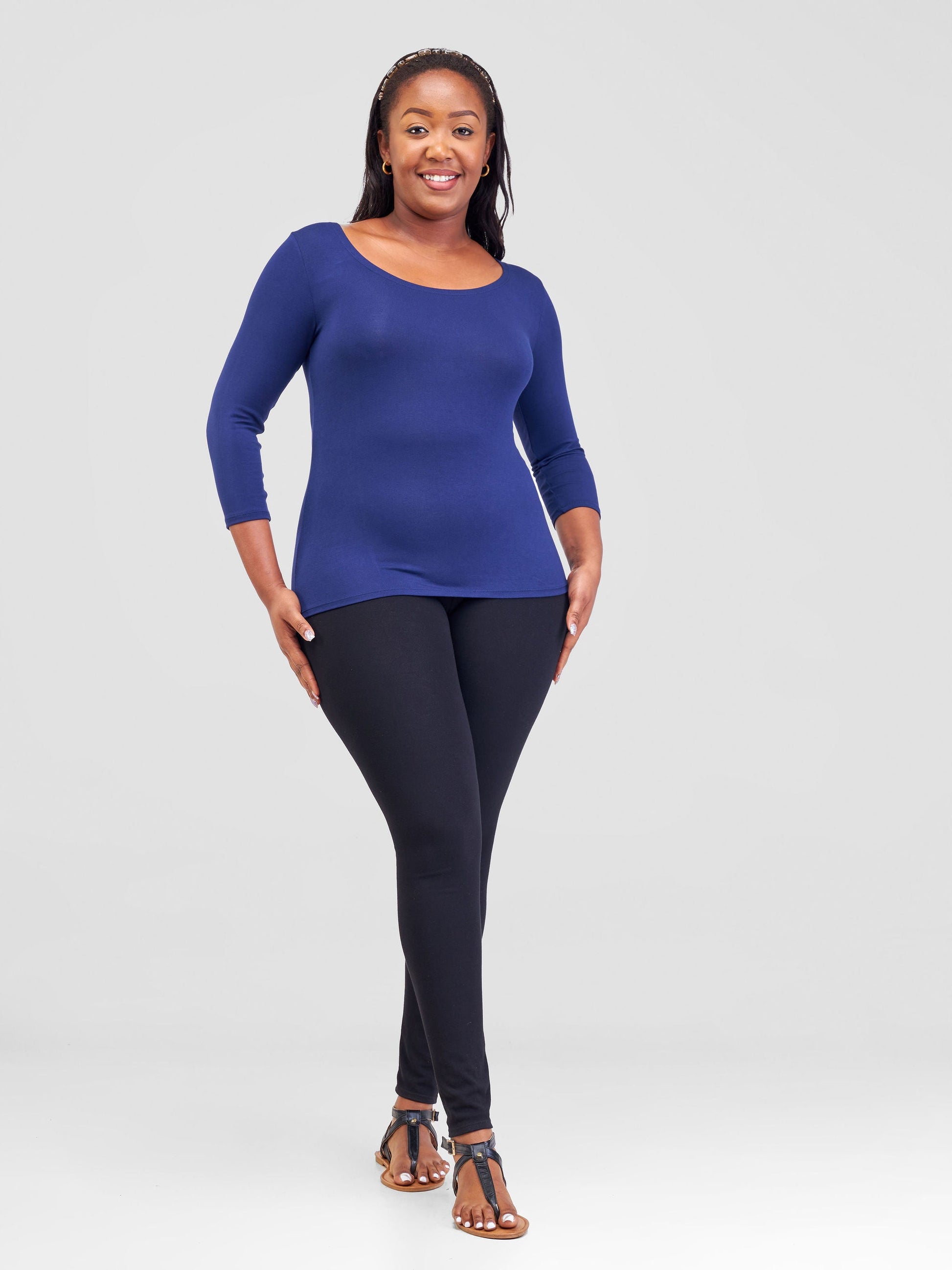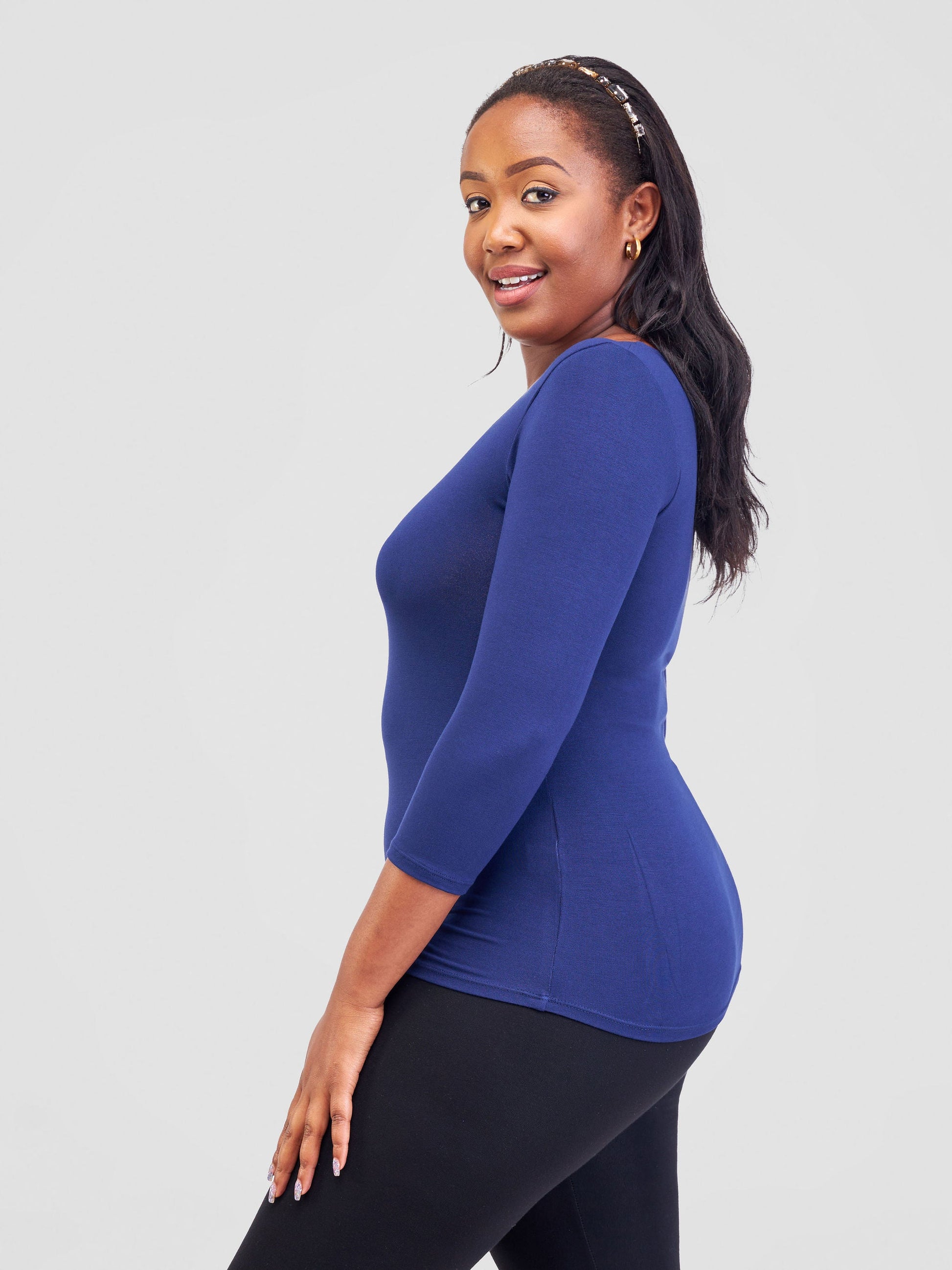 Vivo Basic 3/4 Sleeve Top - Navy Blue