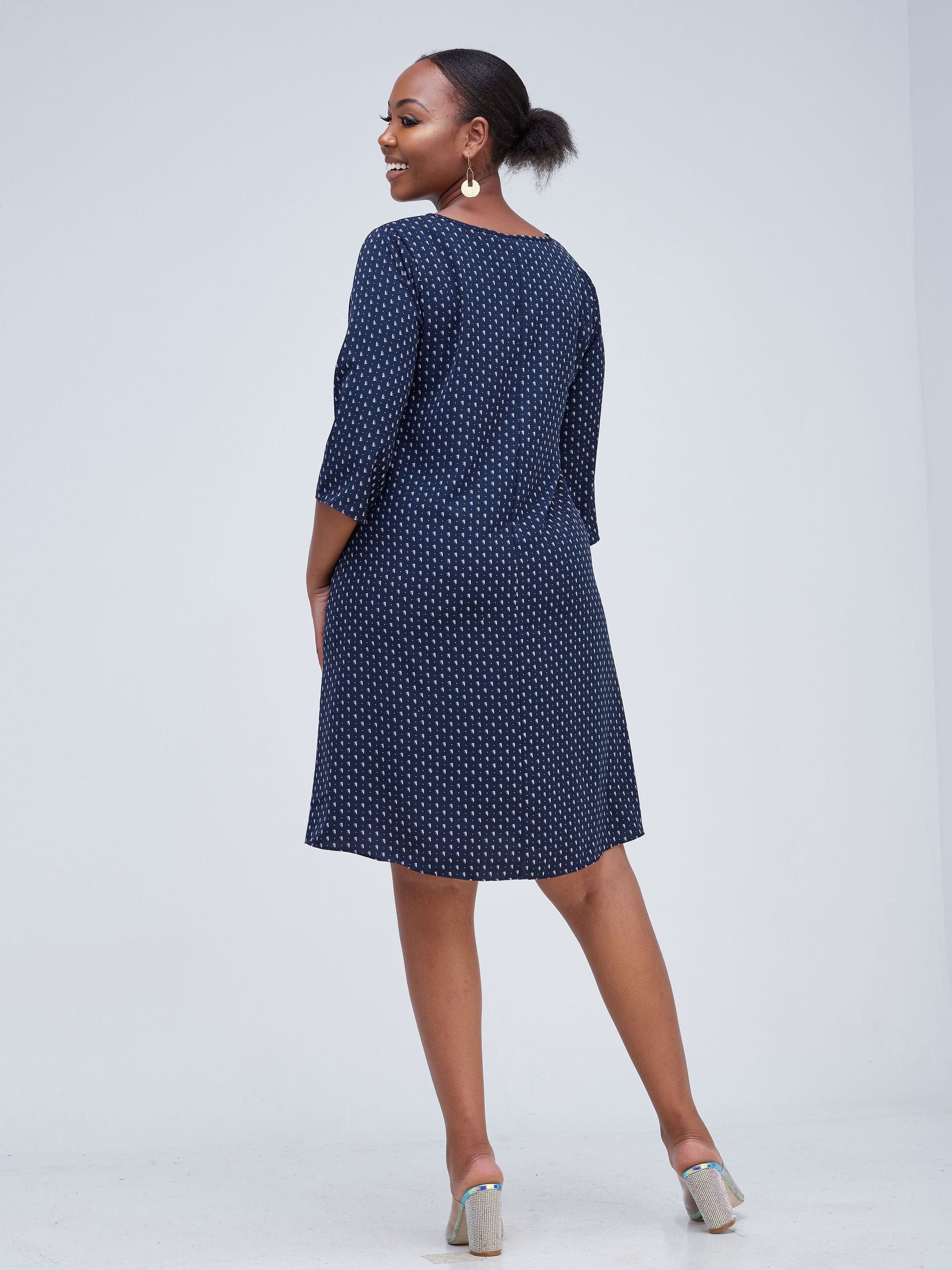 Vivo Basic Ayo Bishop Sleeve Dress - Navy Blue / White Print