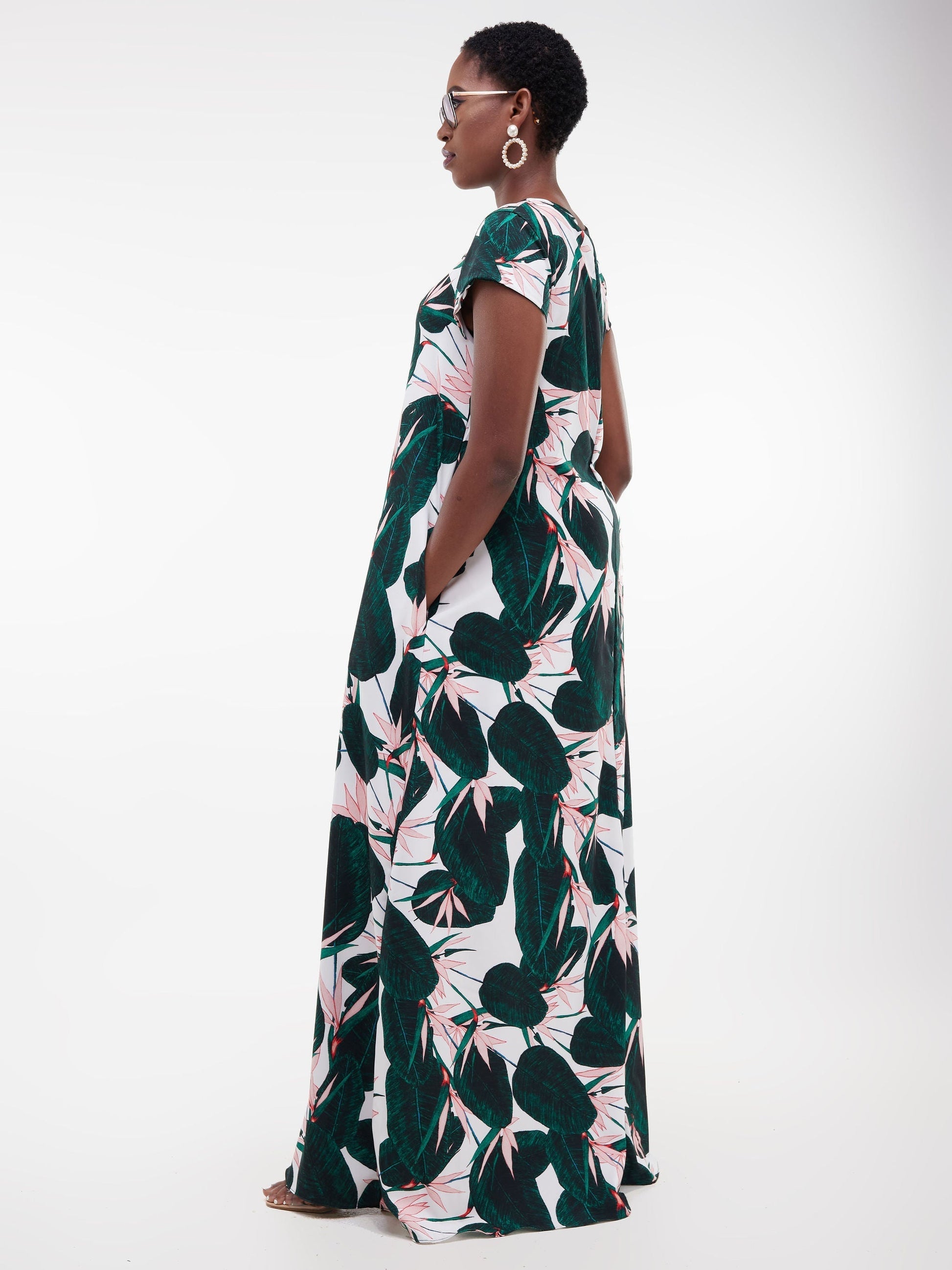 Vivo Basic Cap Sleeved Tent Maxi Dress - Green Print