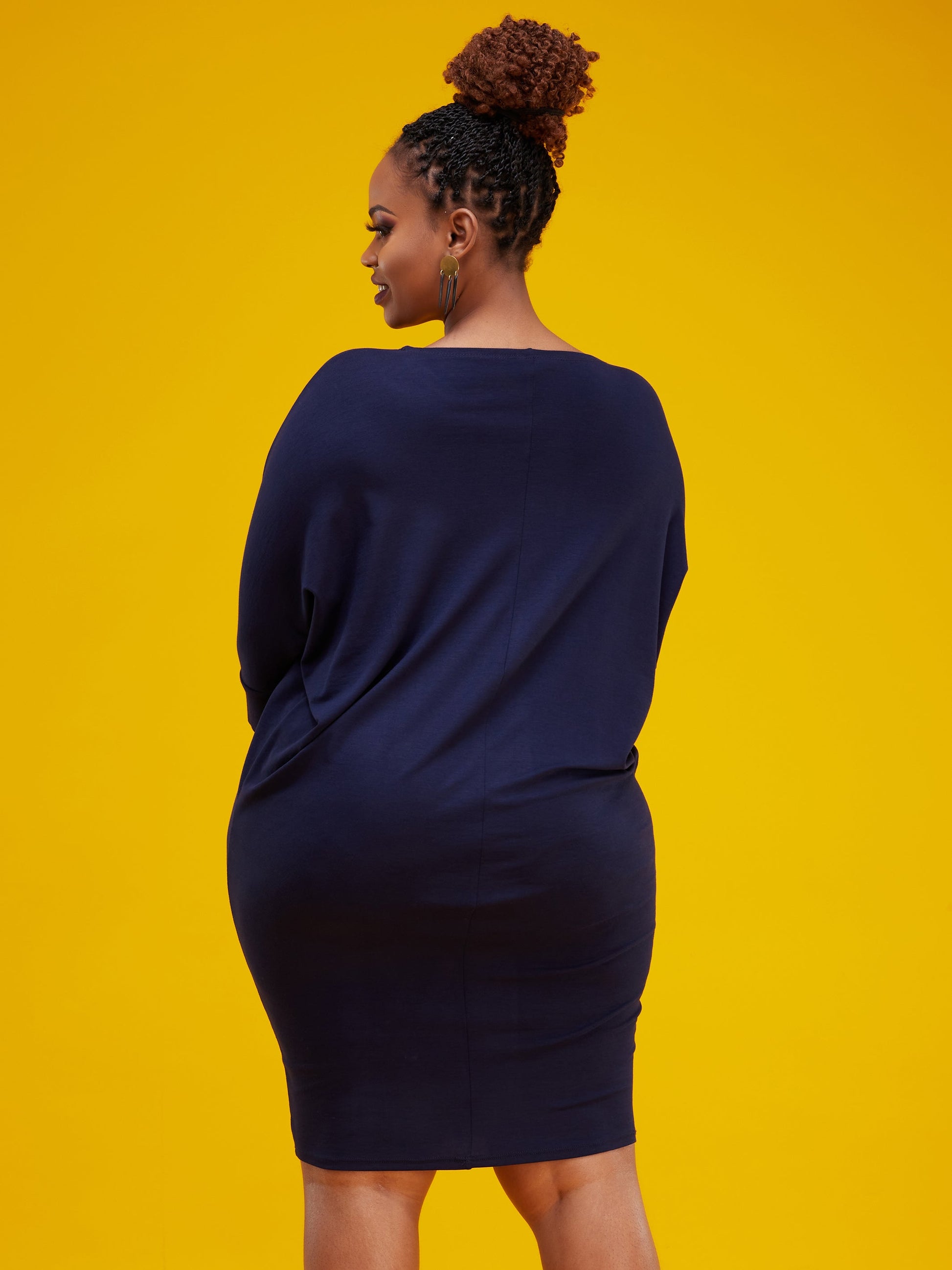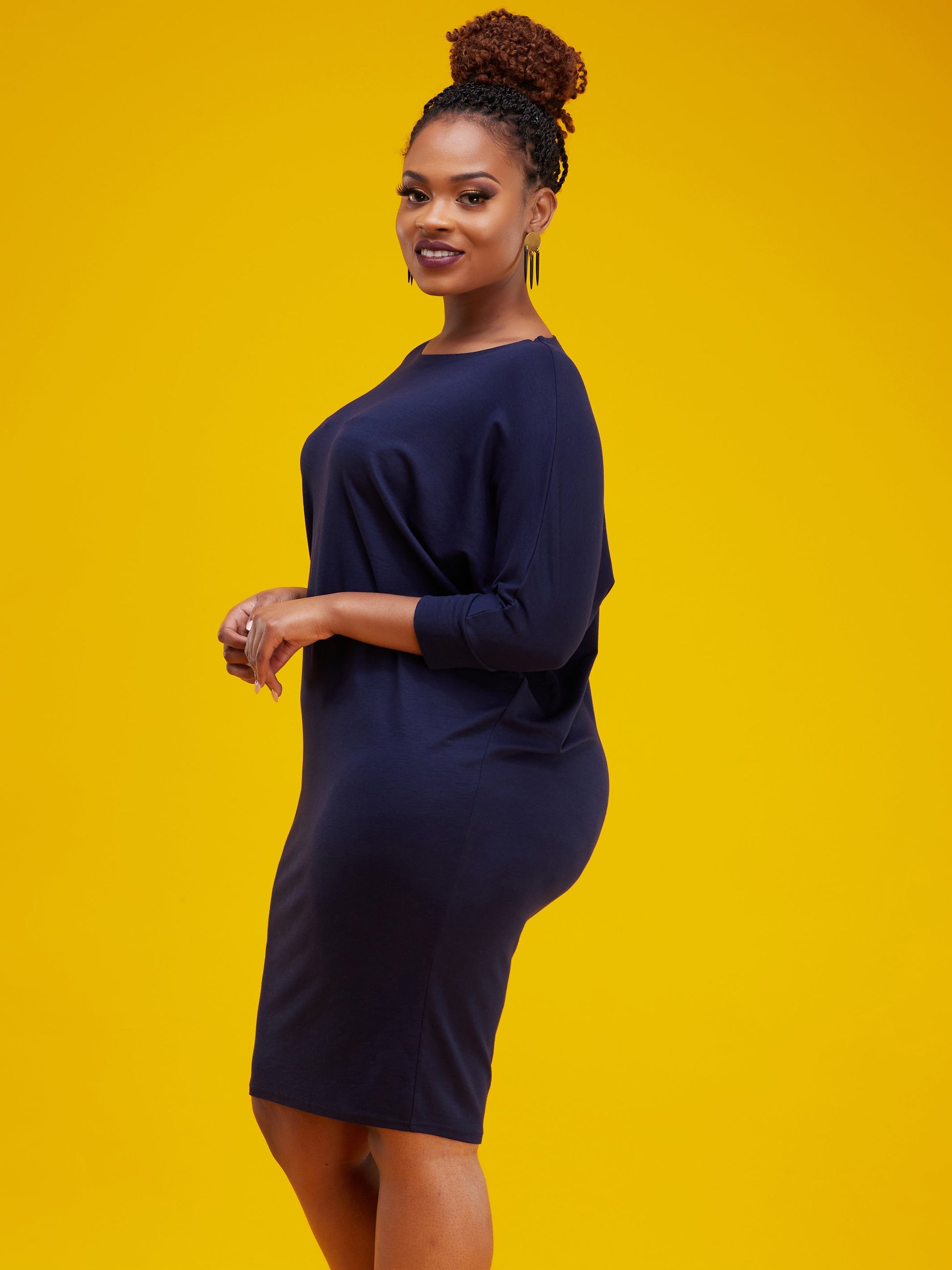 Vivo Basic Cuffed Dolman Jersey Dress - Navy Blue