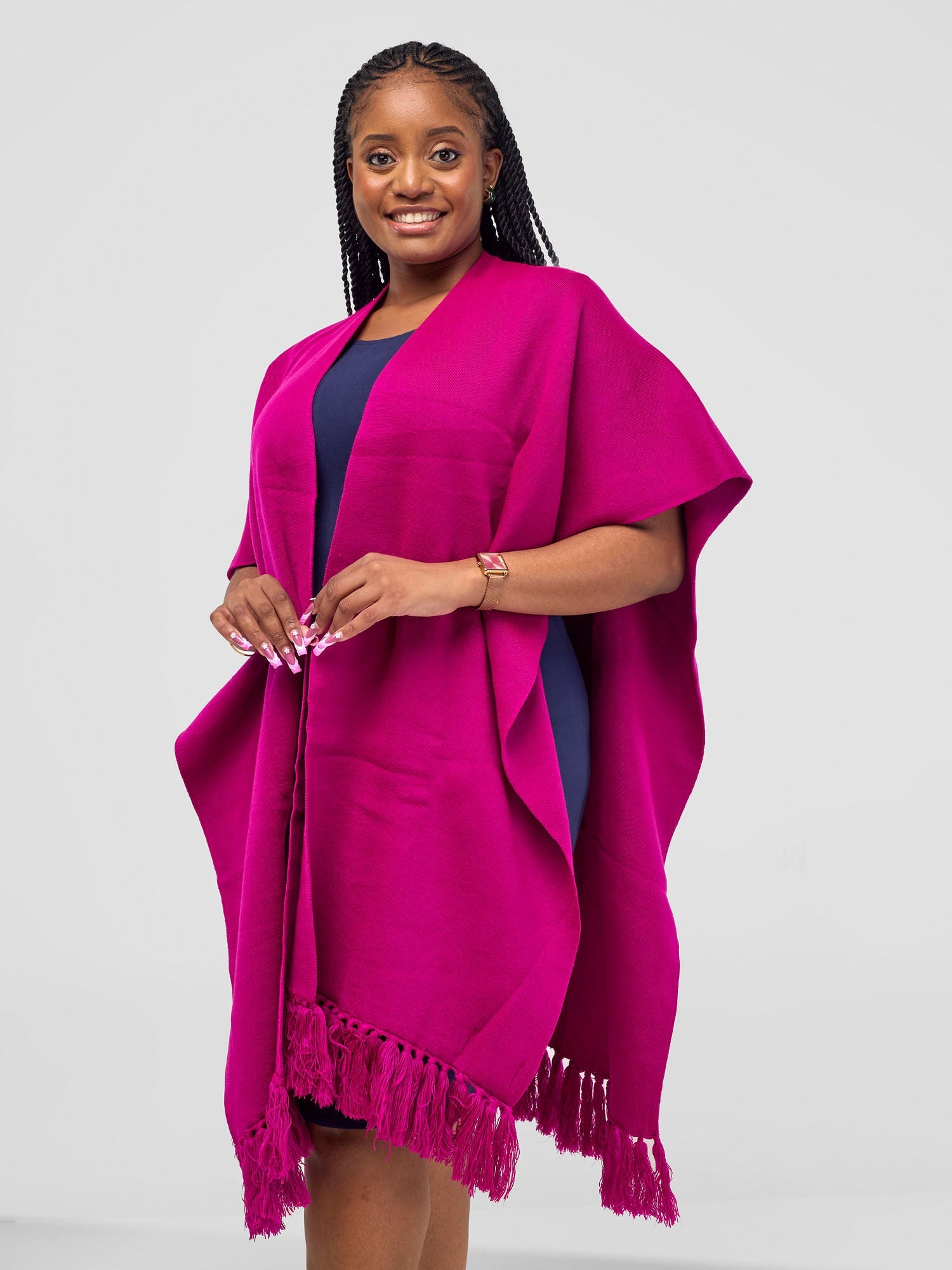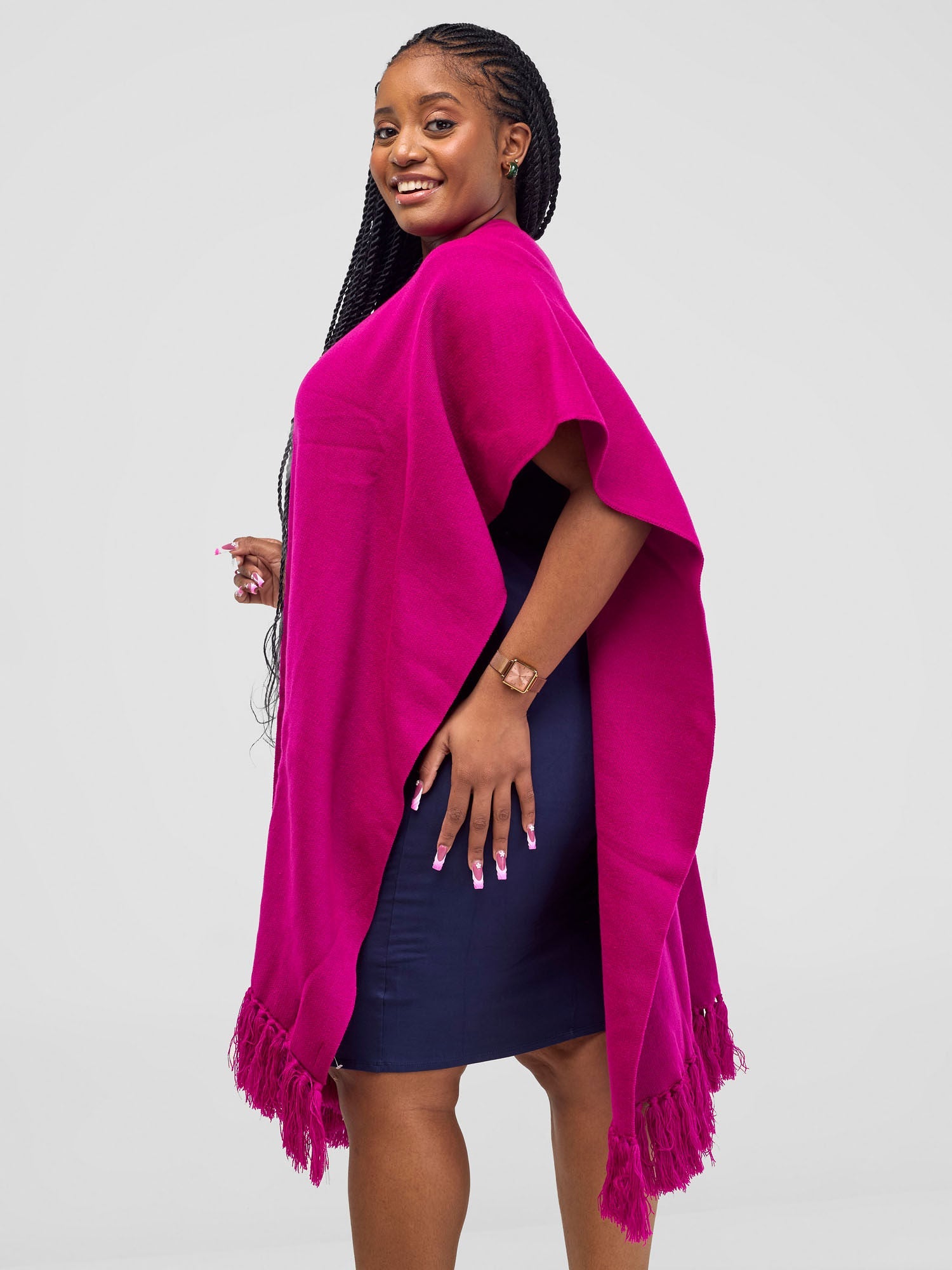 - Item: Fuschia, Double Layered Wrap Poncho
