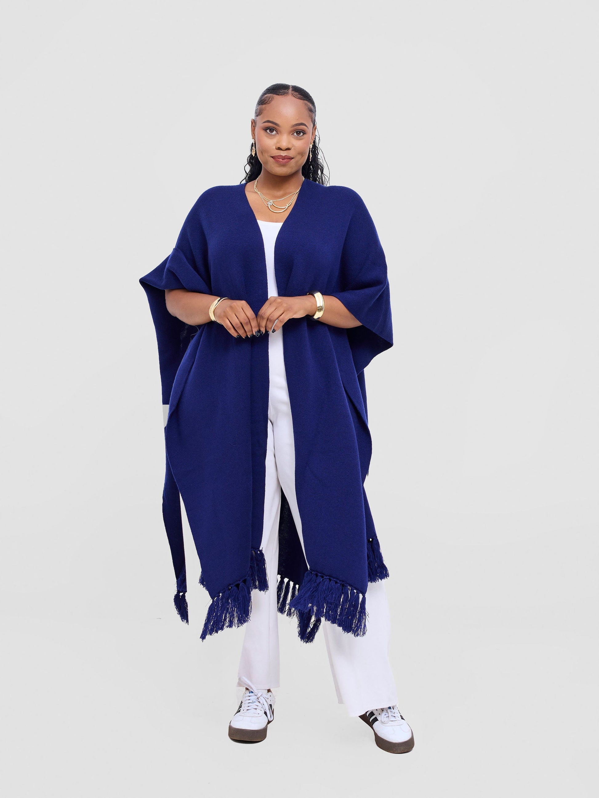 - Item: Light Navy Blue, Double Layered Wrap Poncho