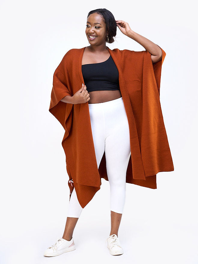 Vivo Basic Double Layered Wrap Poncho (Without Fringe) - Rust