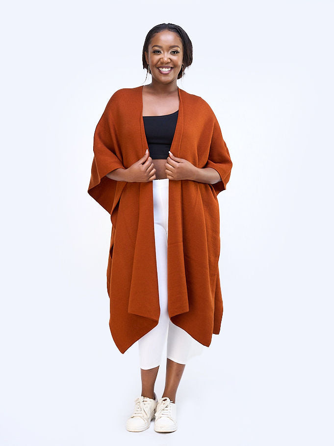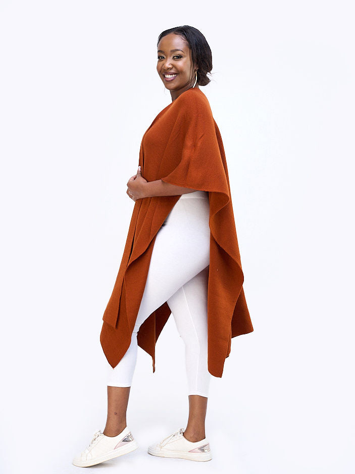 - Item: Rust, Double Layered Wrap Poncho without fringe.