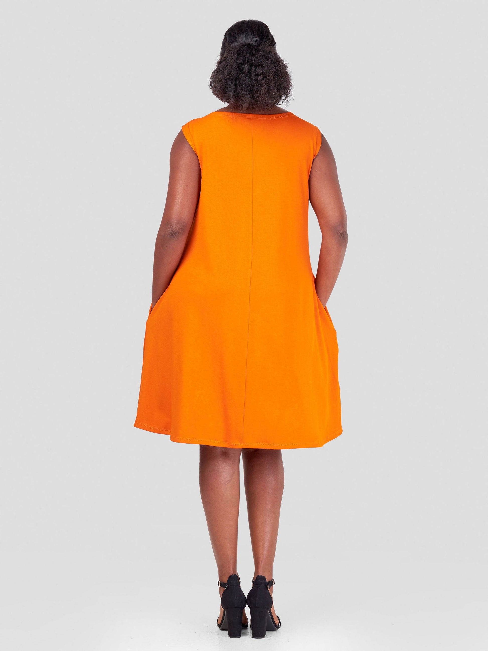 Vivo Basic Julia Back Pleat Knee Length Dress - Burnt Orange