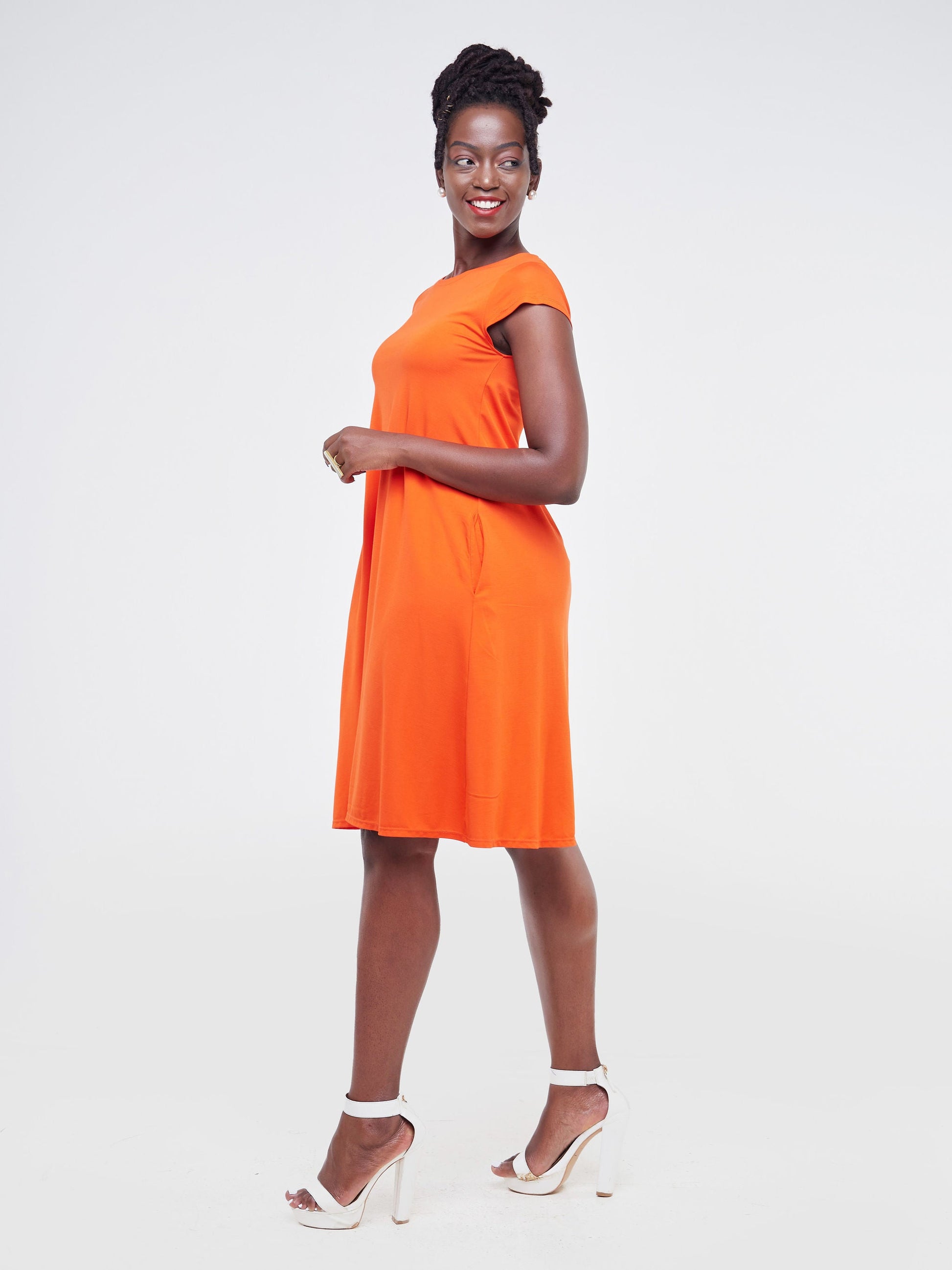 Vivo Basic Kena Tent Knee Length Dress - Orange