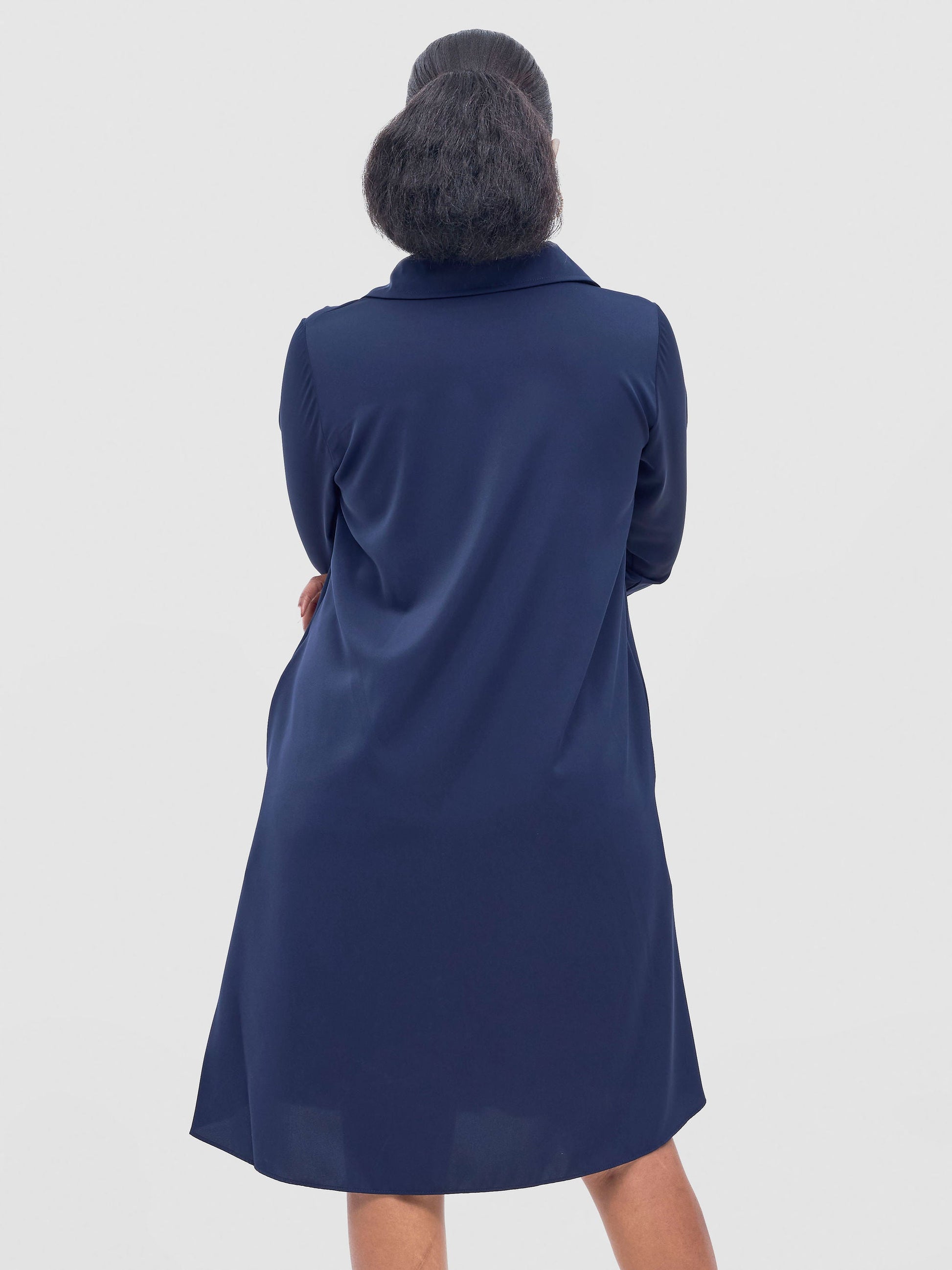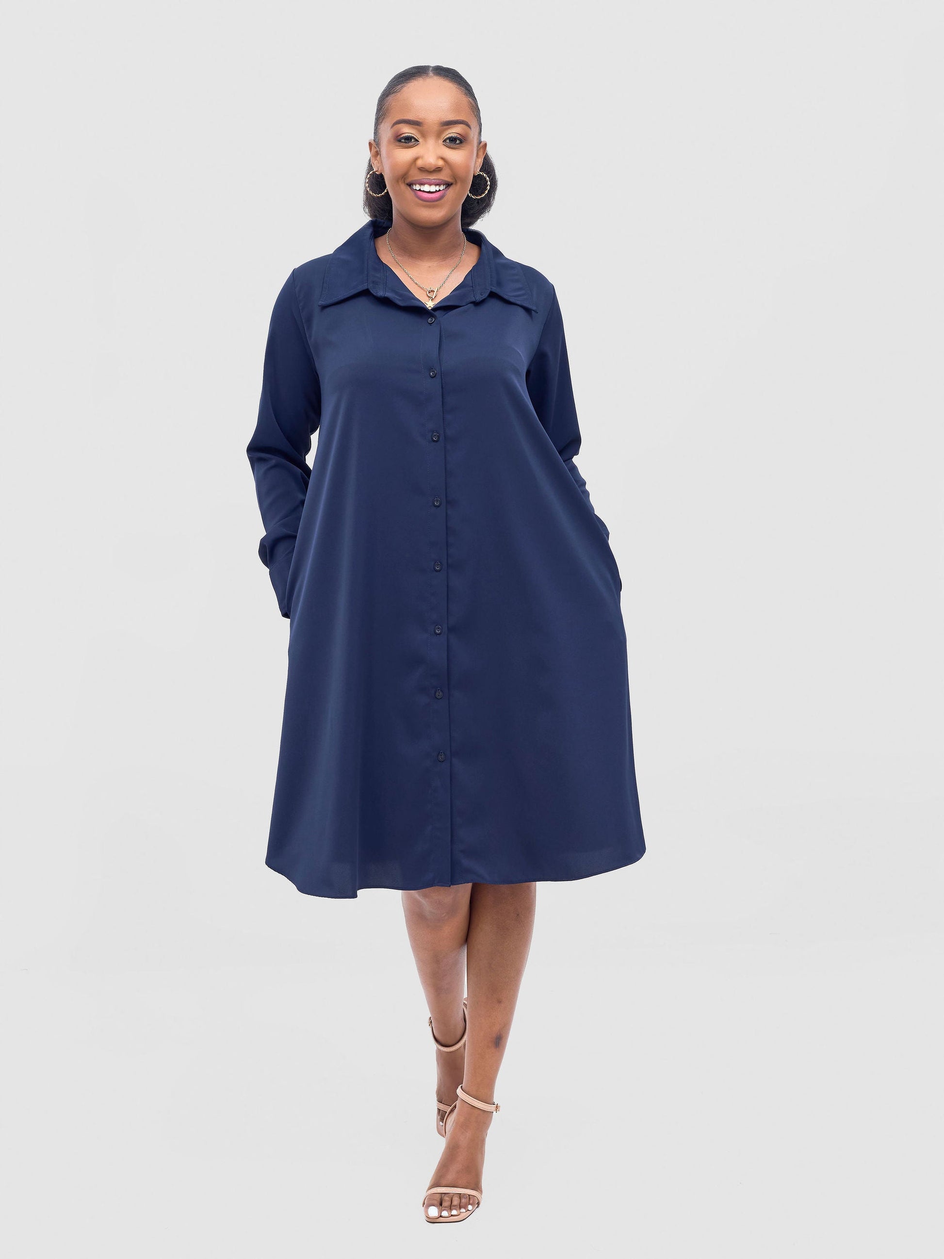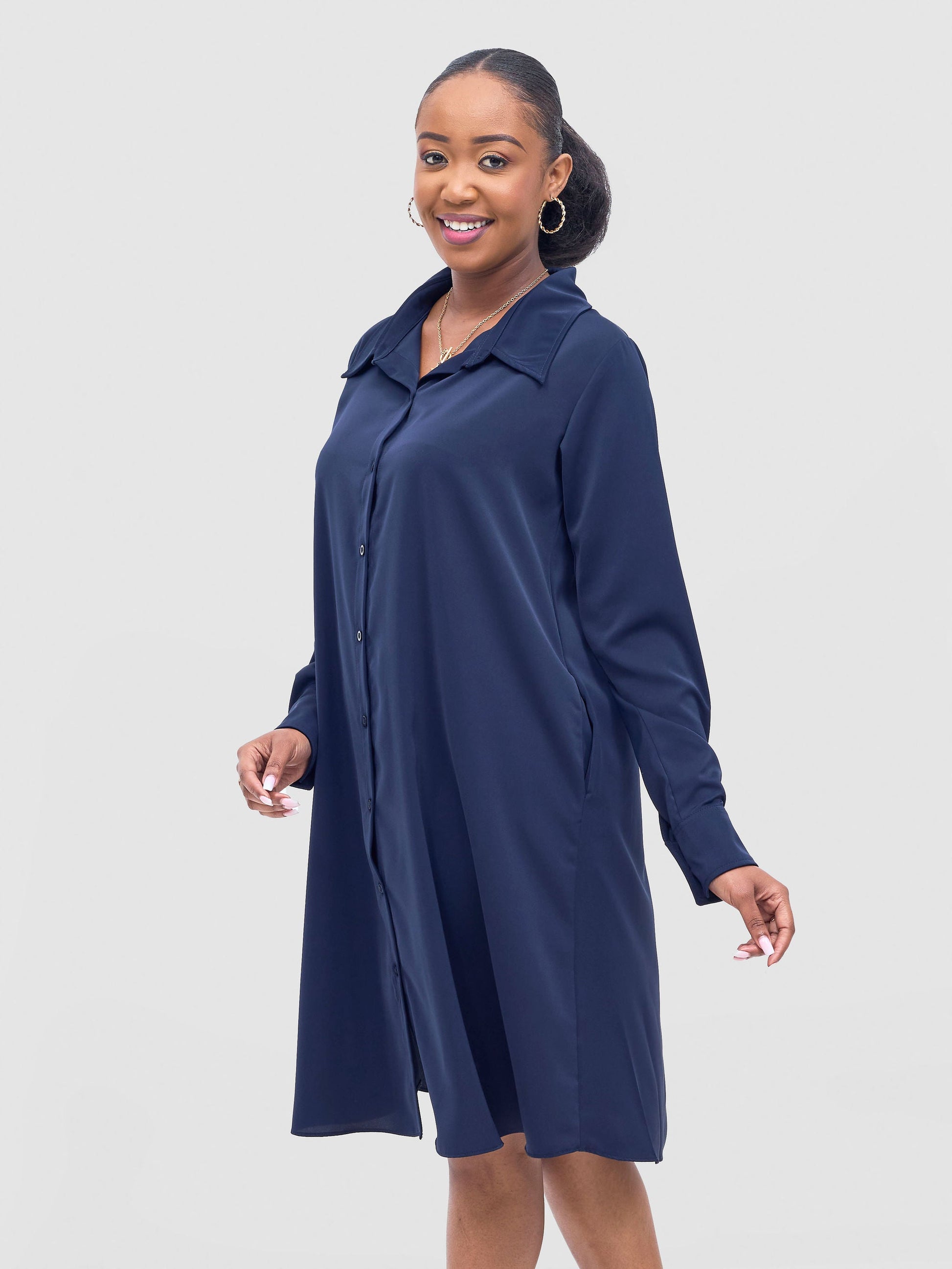 Vivo Basic Long Sleeve Tent Shirt Dress - Navy