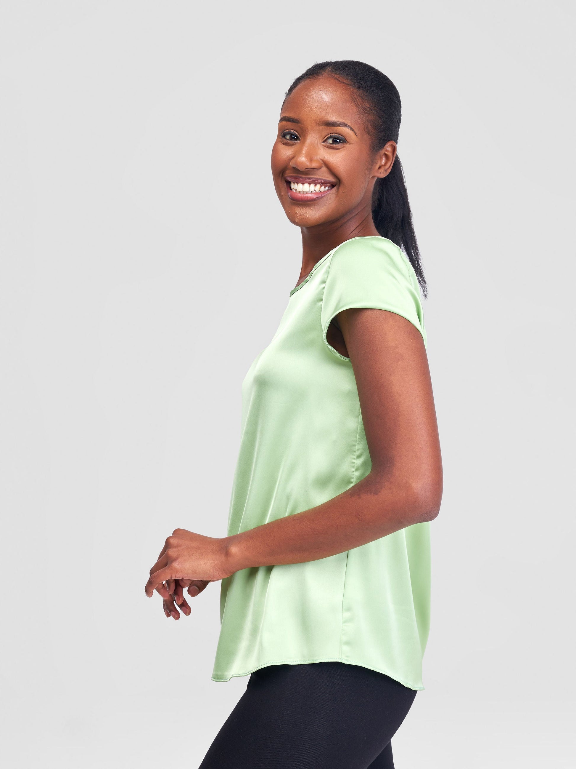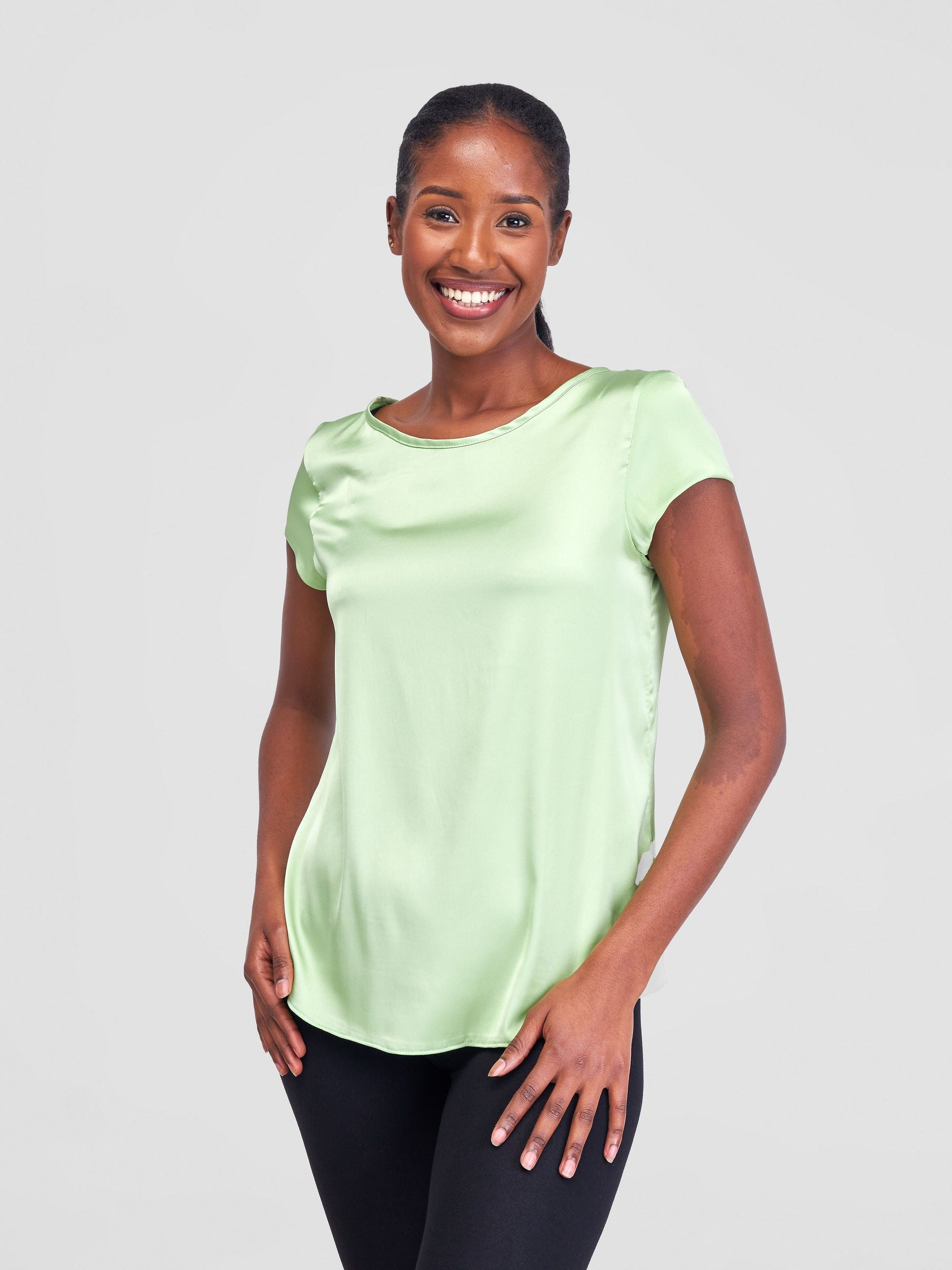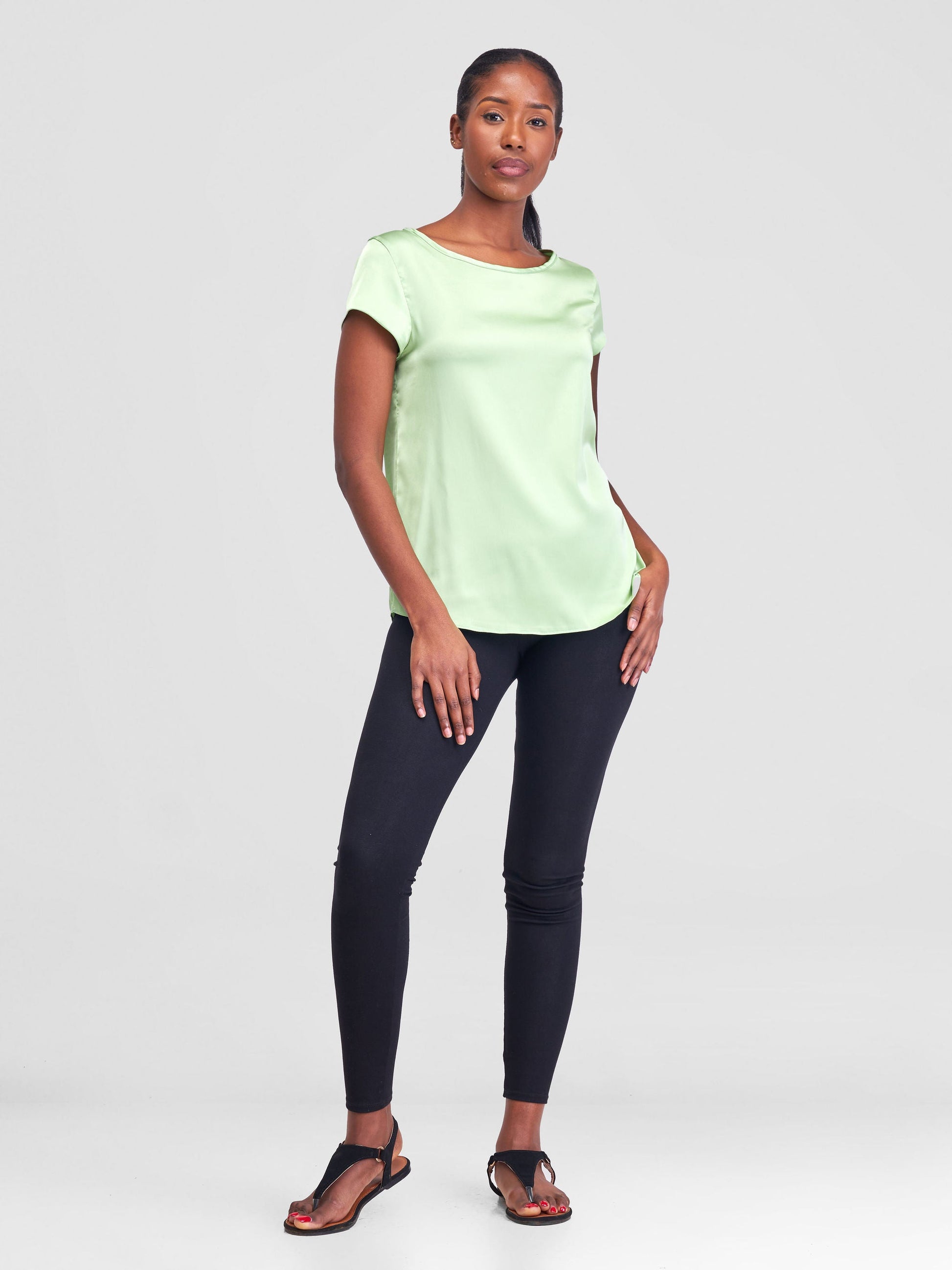 Vivo Basic Satin Cap Sleeve Top -Lime Green