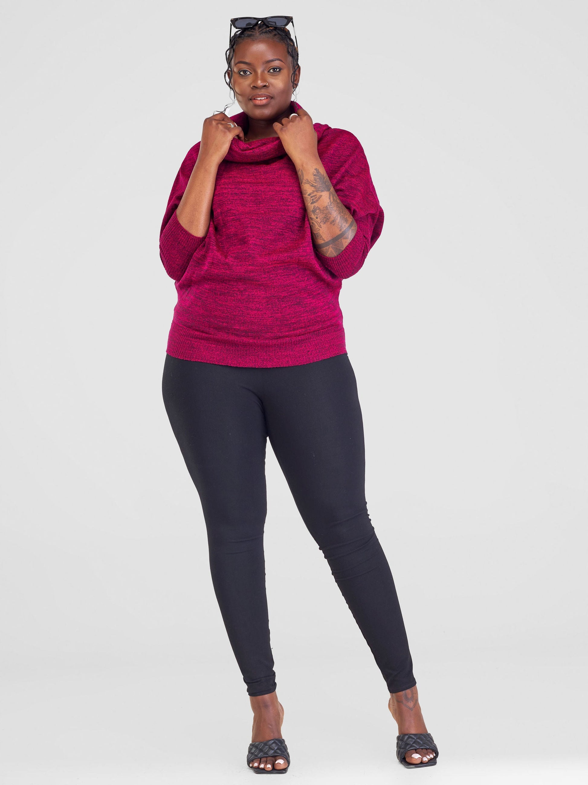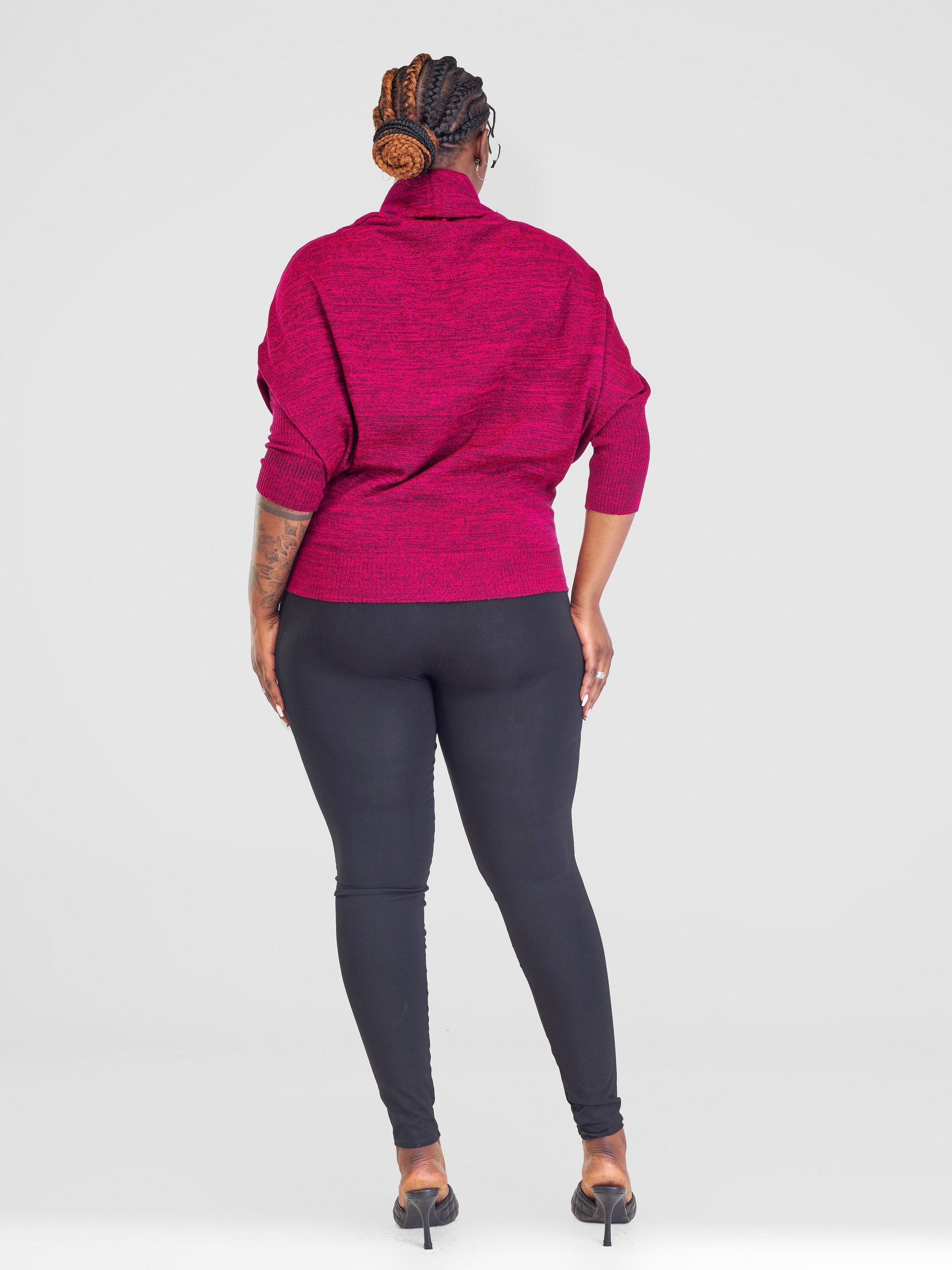 Vivo Basic Short Dolman Sweater - Fuschia / Black