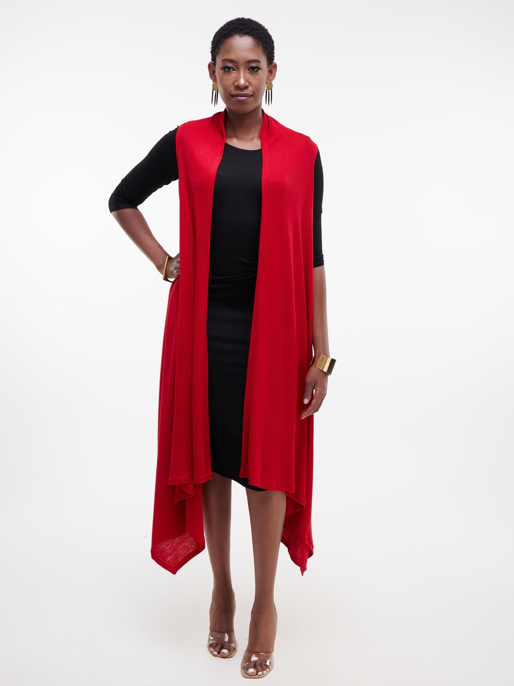 Vivo Basic Sleeveless Cascade Sweater - Red