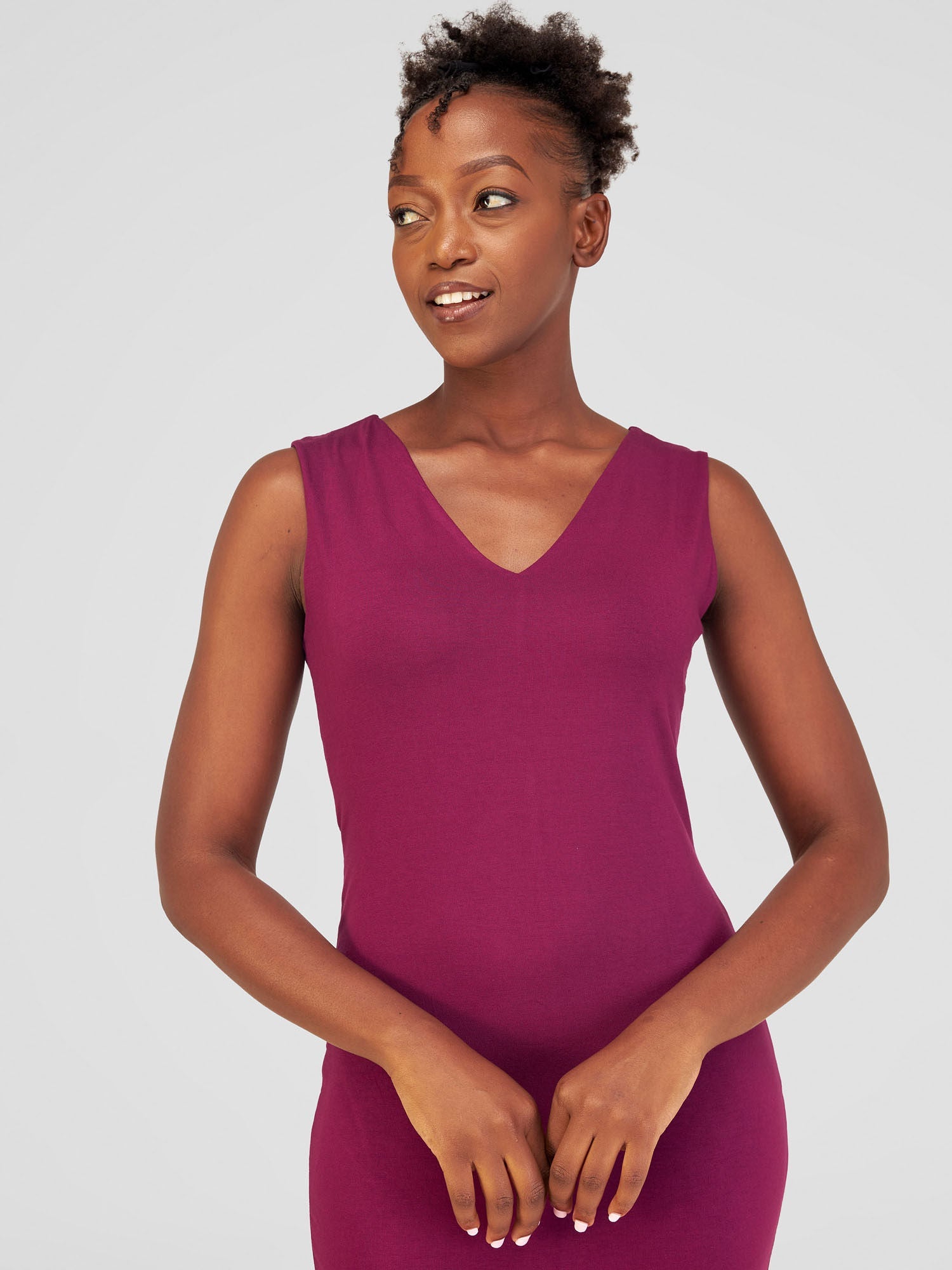 Vivo Basic Sleeveless Double Layered Bodycon - Burgundy