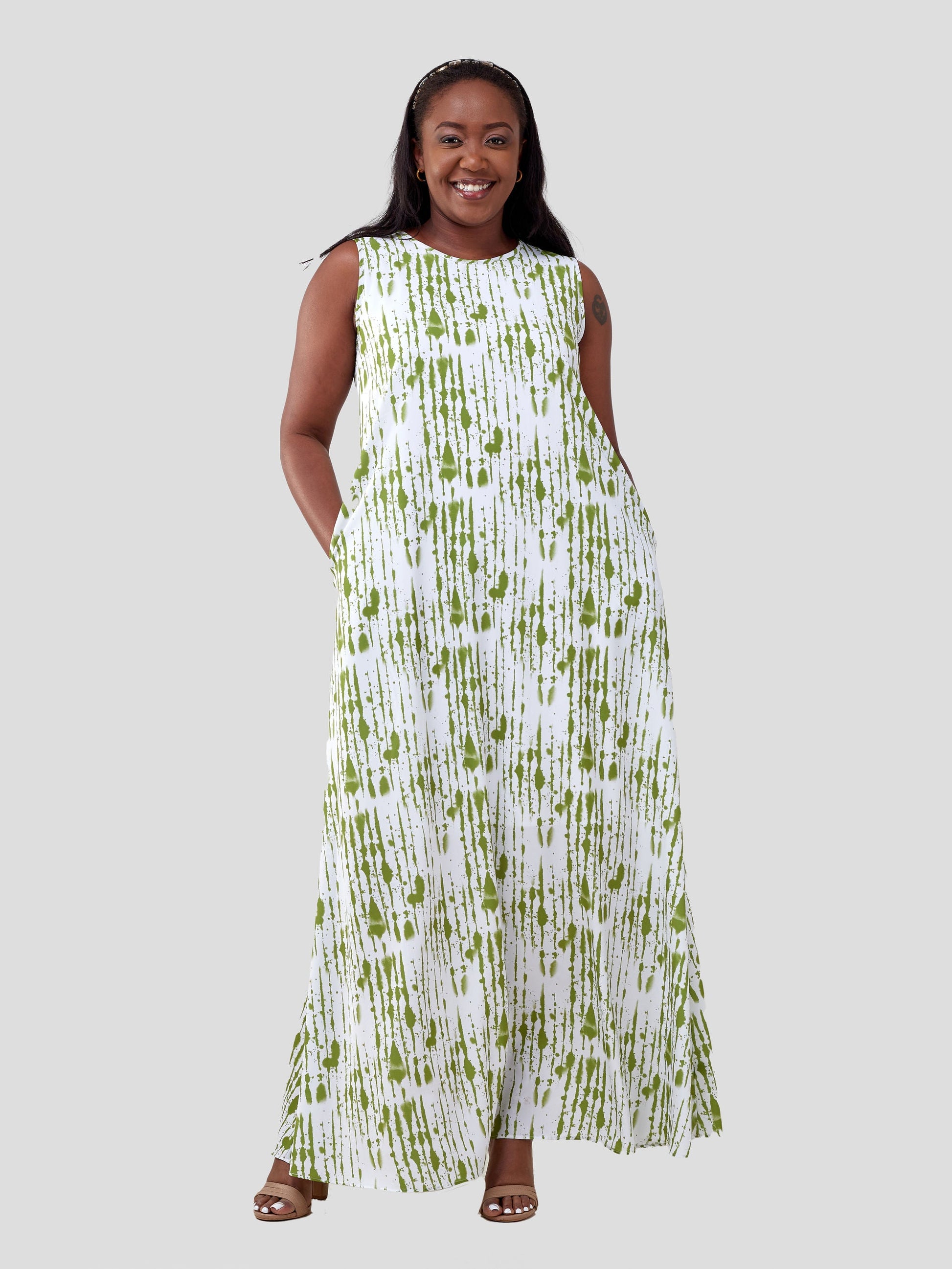 Vivo Basic Sleeveless Tent Maxi Dress - White / Green Print