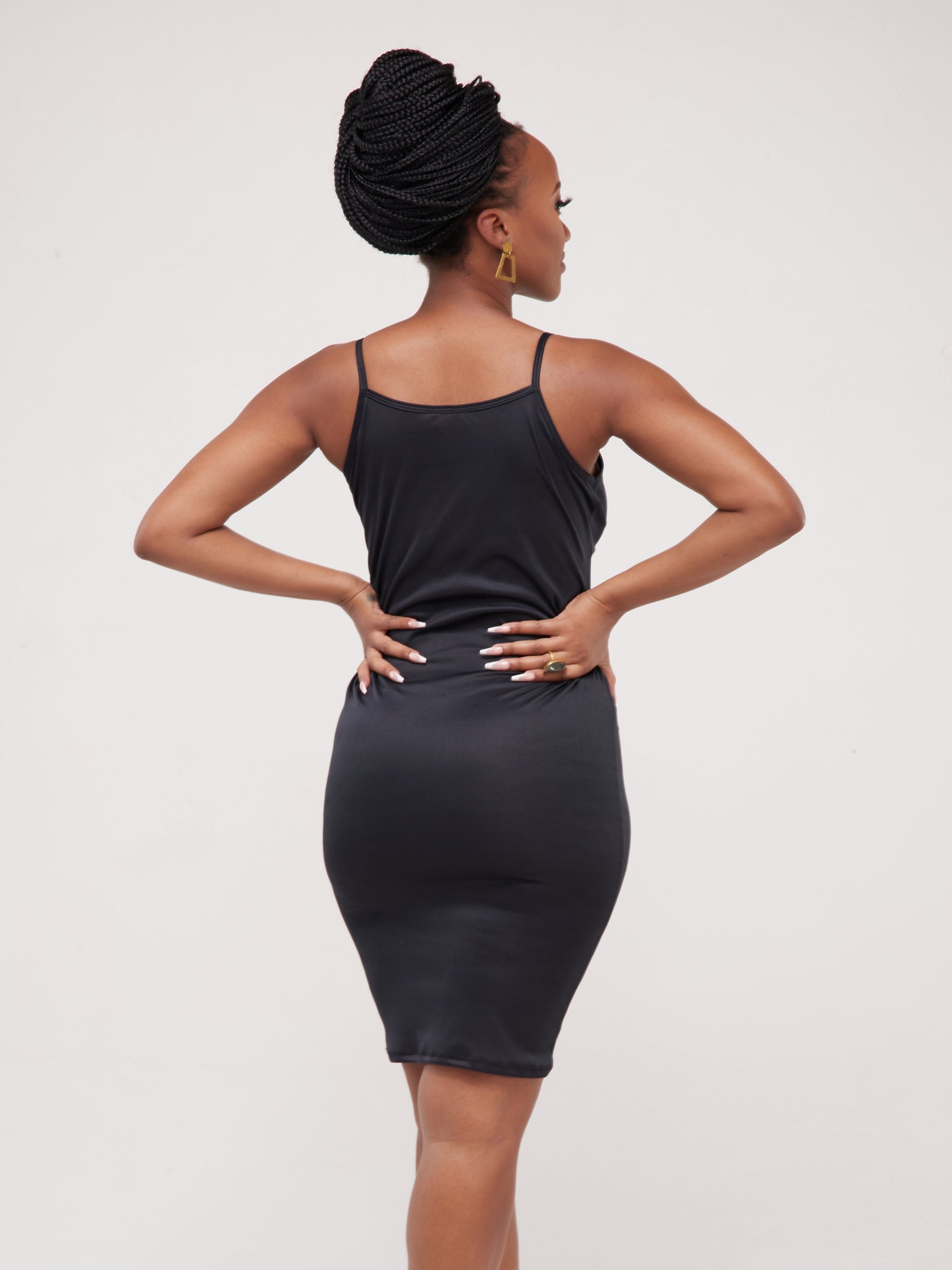 Vivo Basic Spaghetti Strap Slip Dress - Black