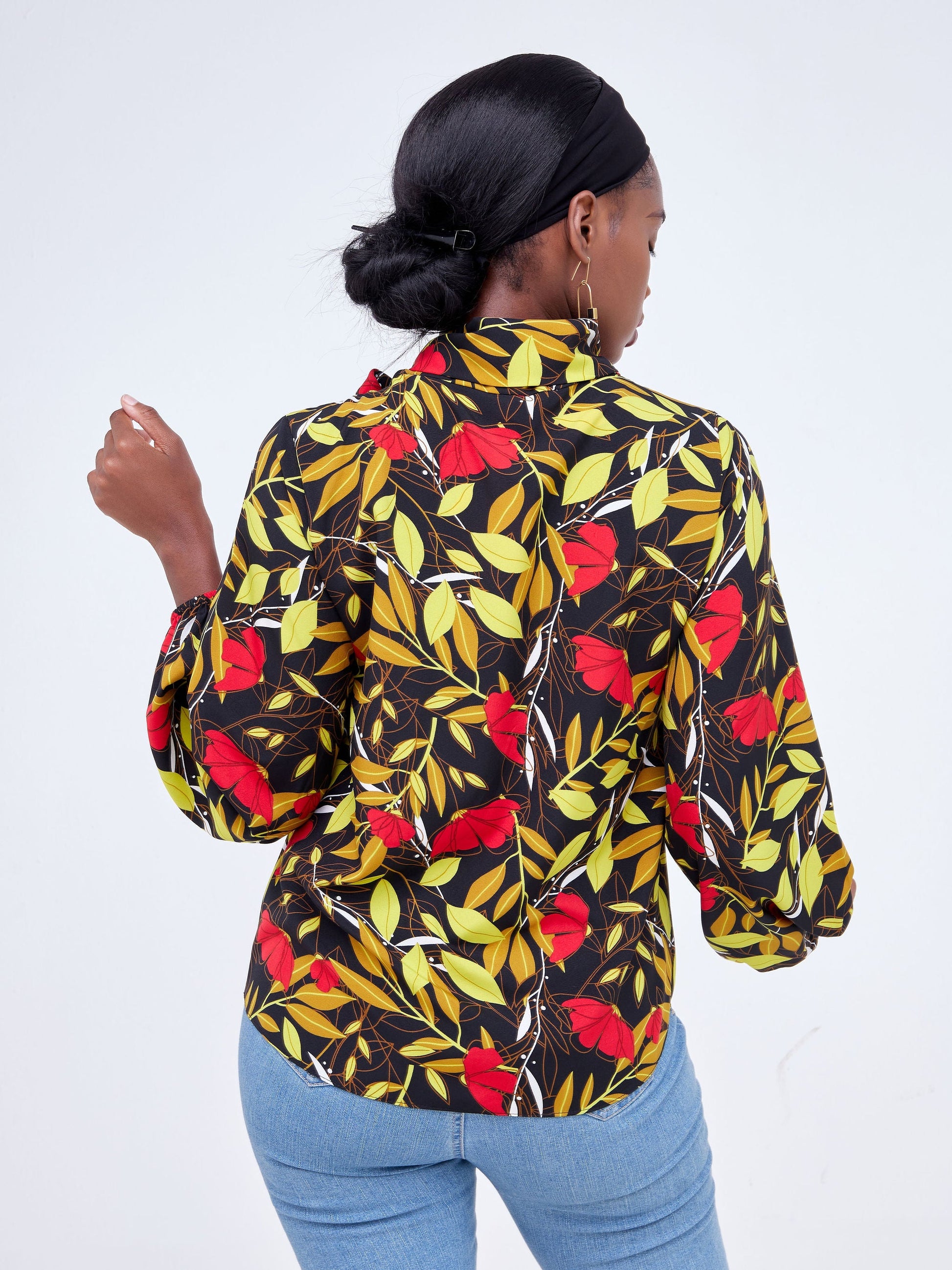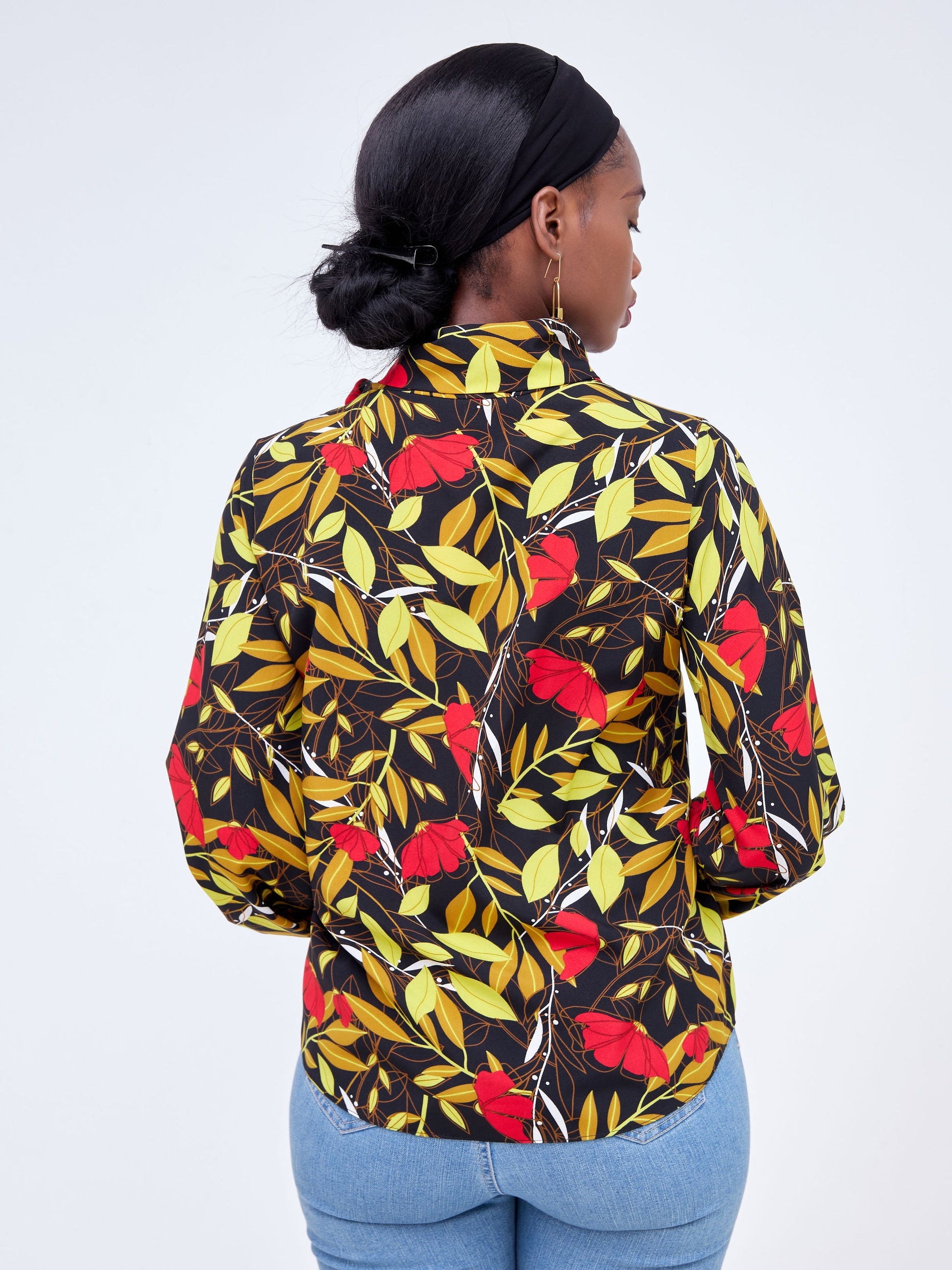 Vivo Bissa Bishop Long Sleeved Top - Black / Yellow Floral Print