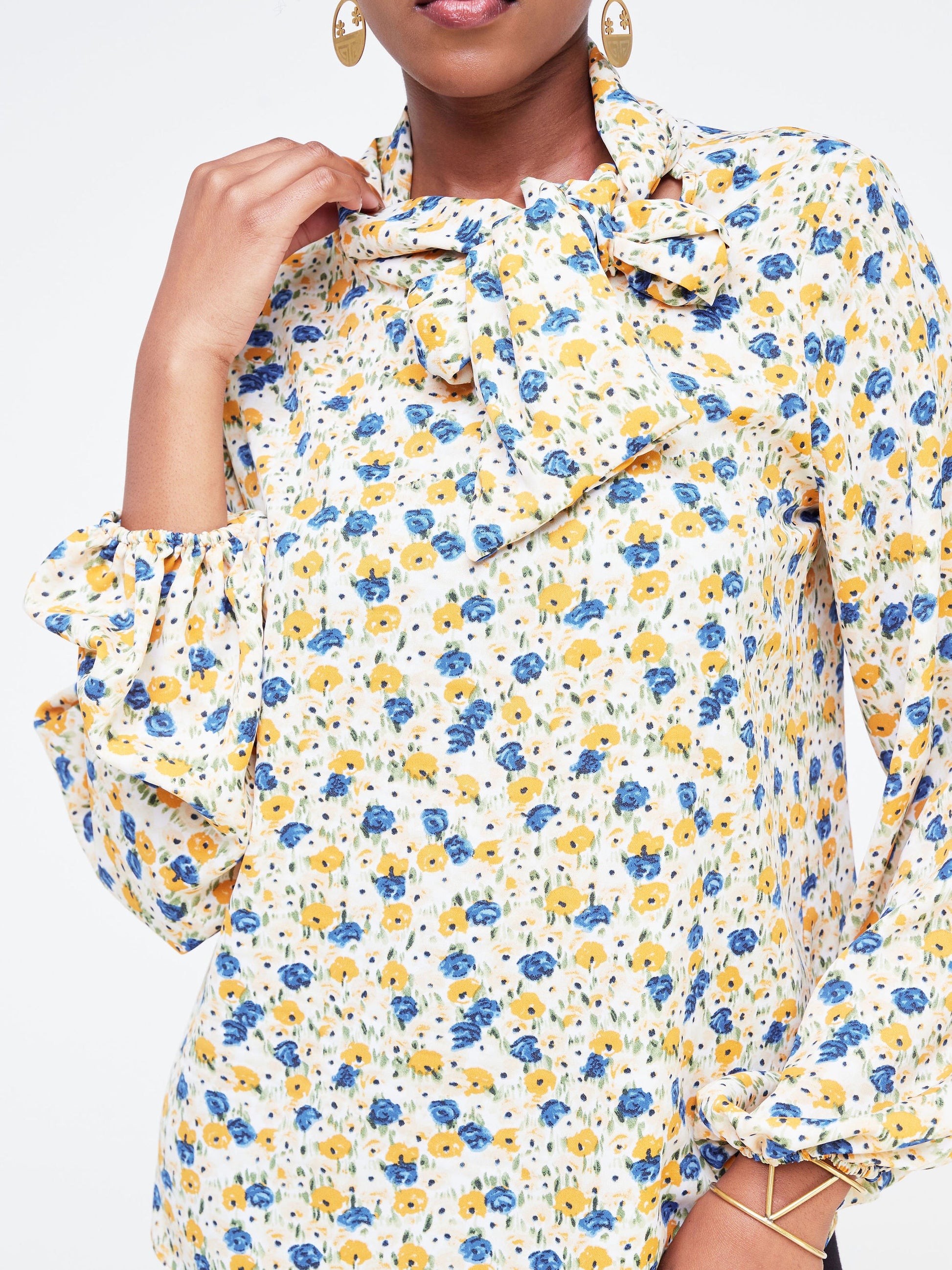 Vivo Bissa Bishop Long Sleeved Top - Royal Blue / Orange Floral Print