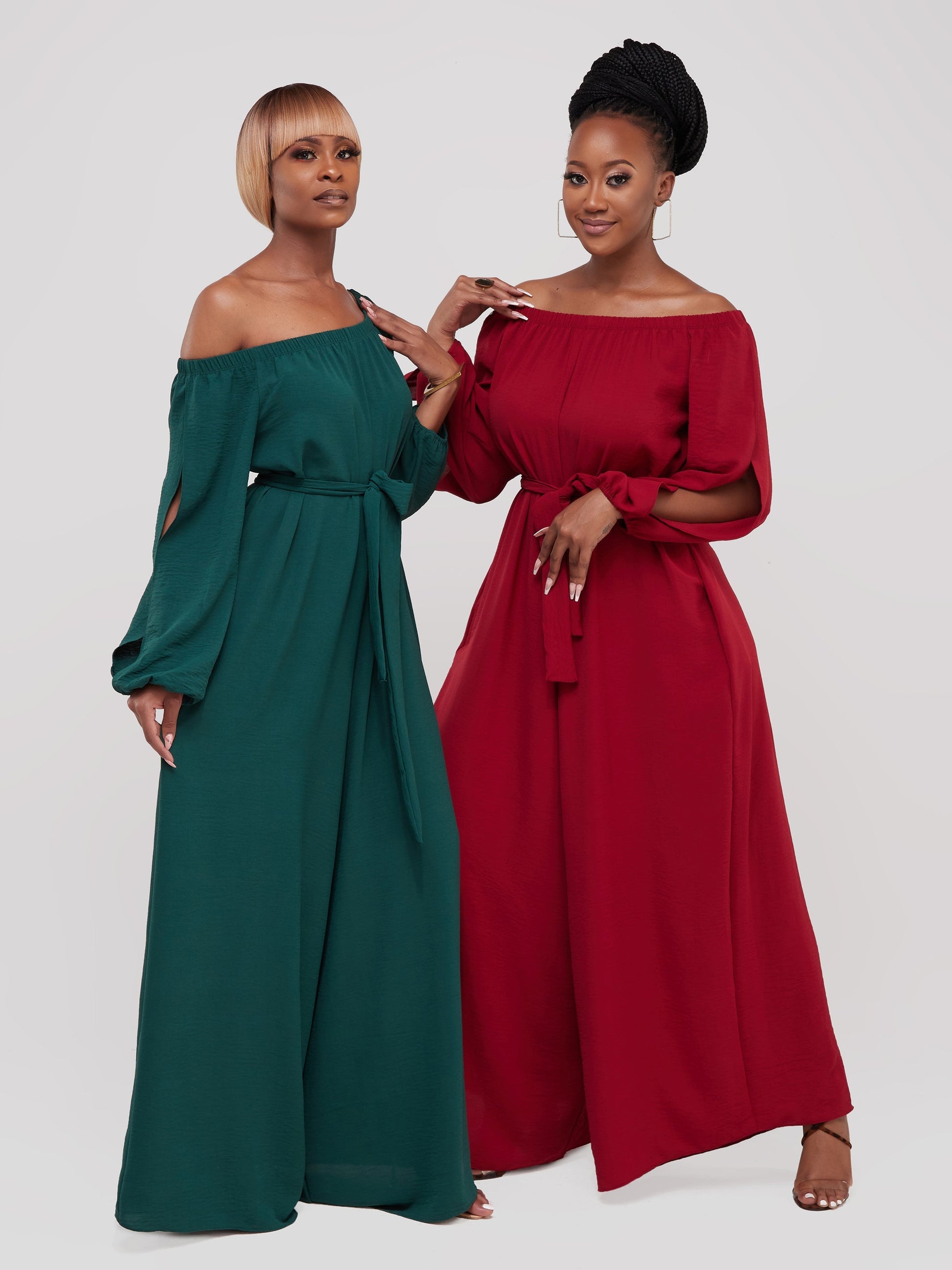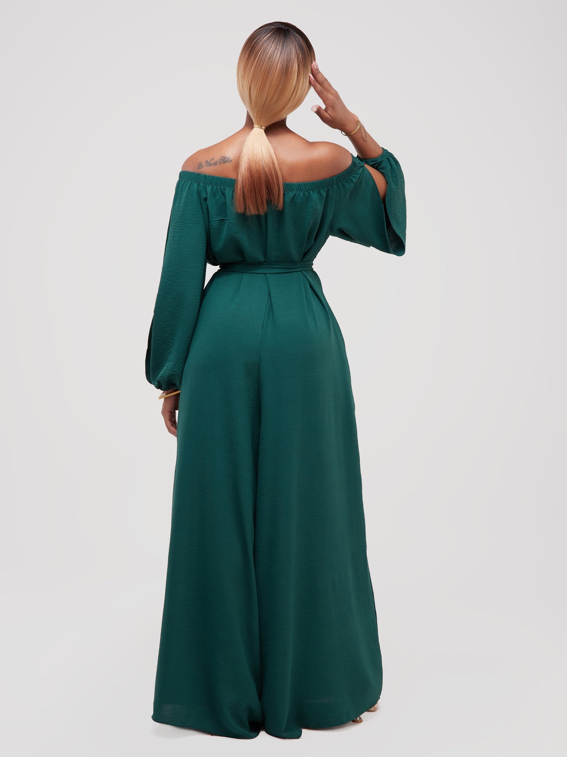 Vivo Dayo Off Shoulder Split Sleeve Jumpsuit - Dark Green