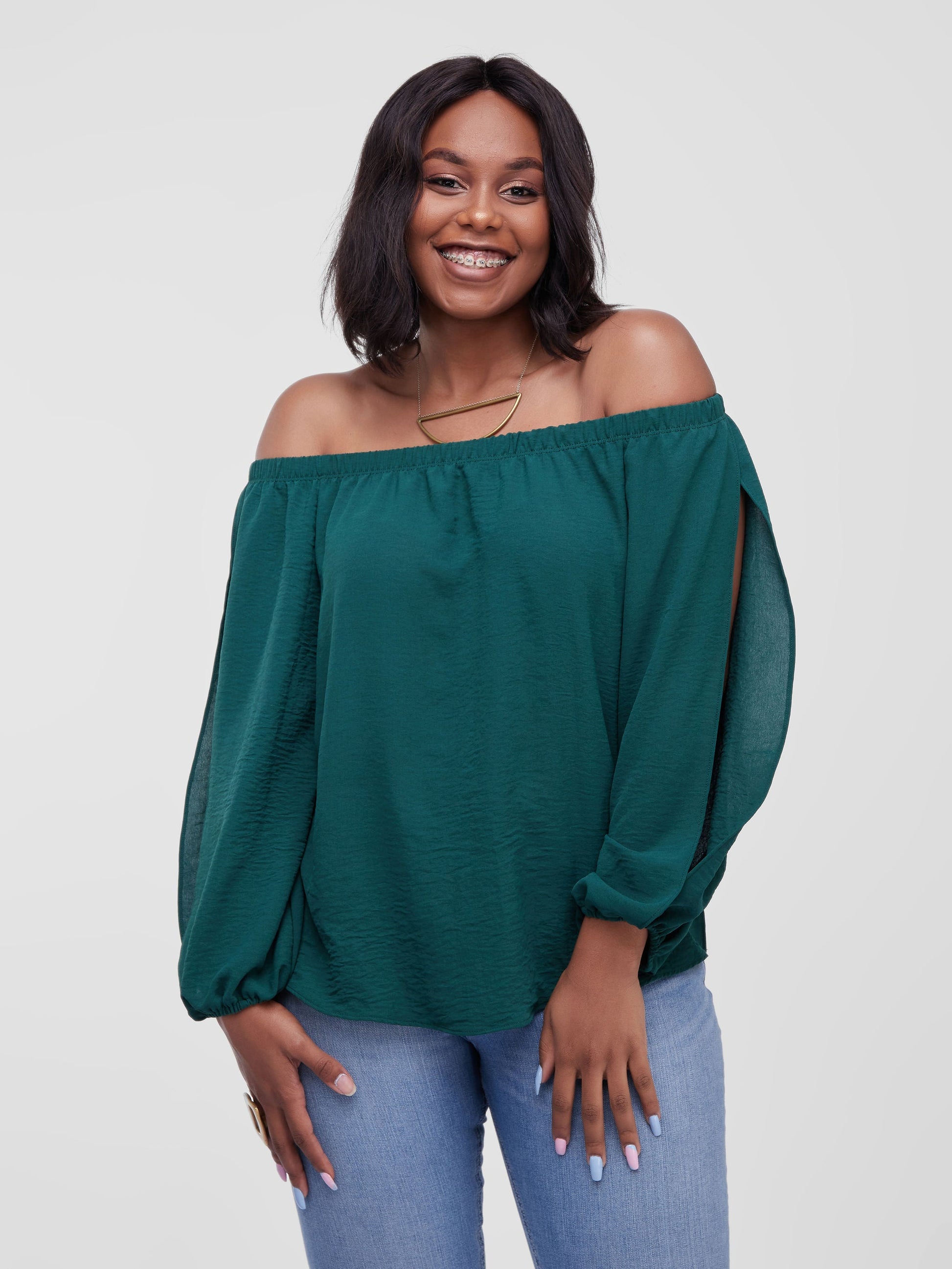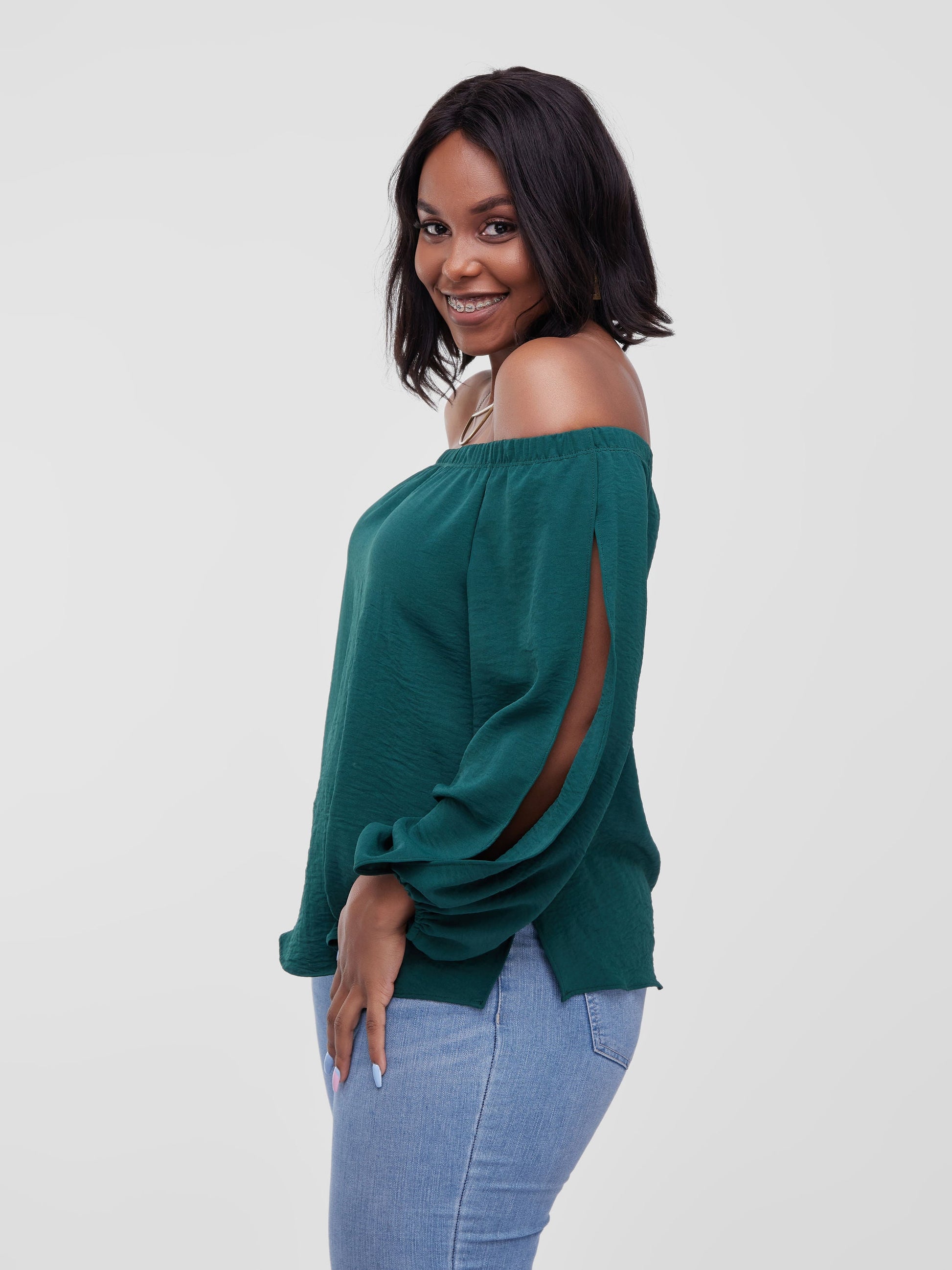 - Style: Off-Shoulder top with slits on the sleeves and side seams feature.