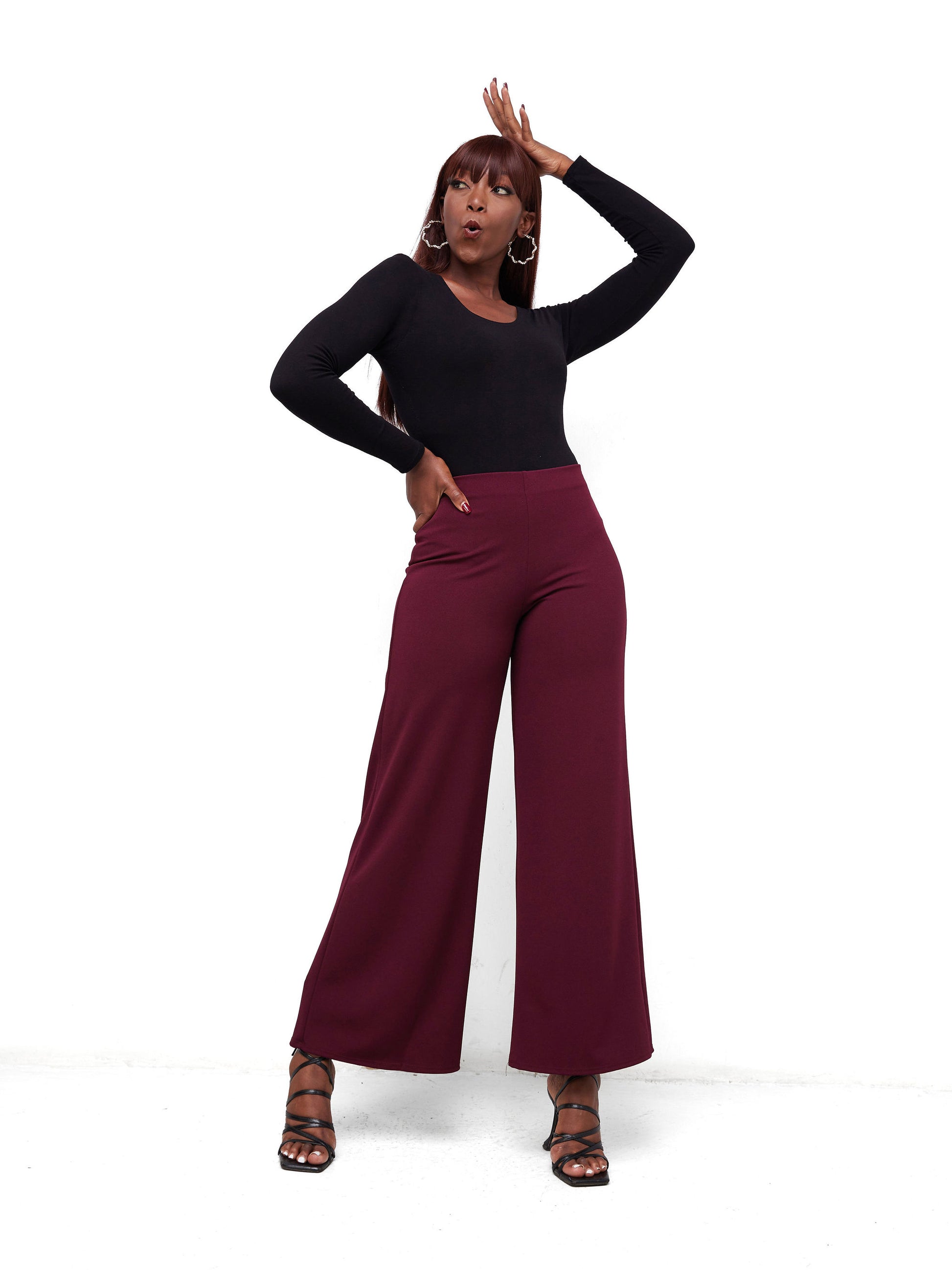 Vivo Dua Wide Leg Pants - Burgundy