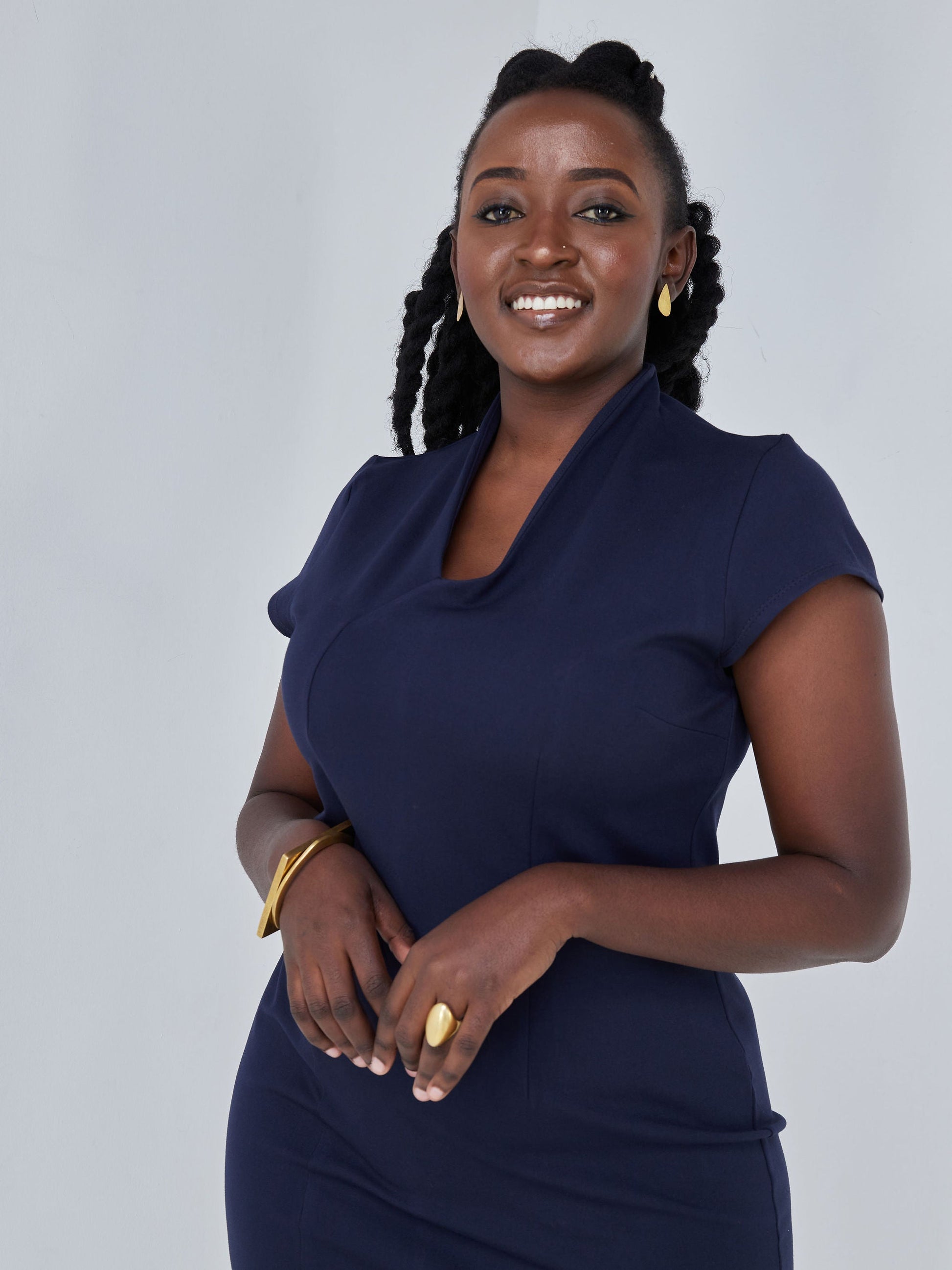 Vivo Zena Cap sleeve Tulip V Neck Sheath Dress - Navy Blue